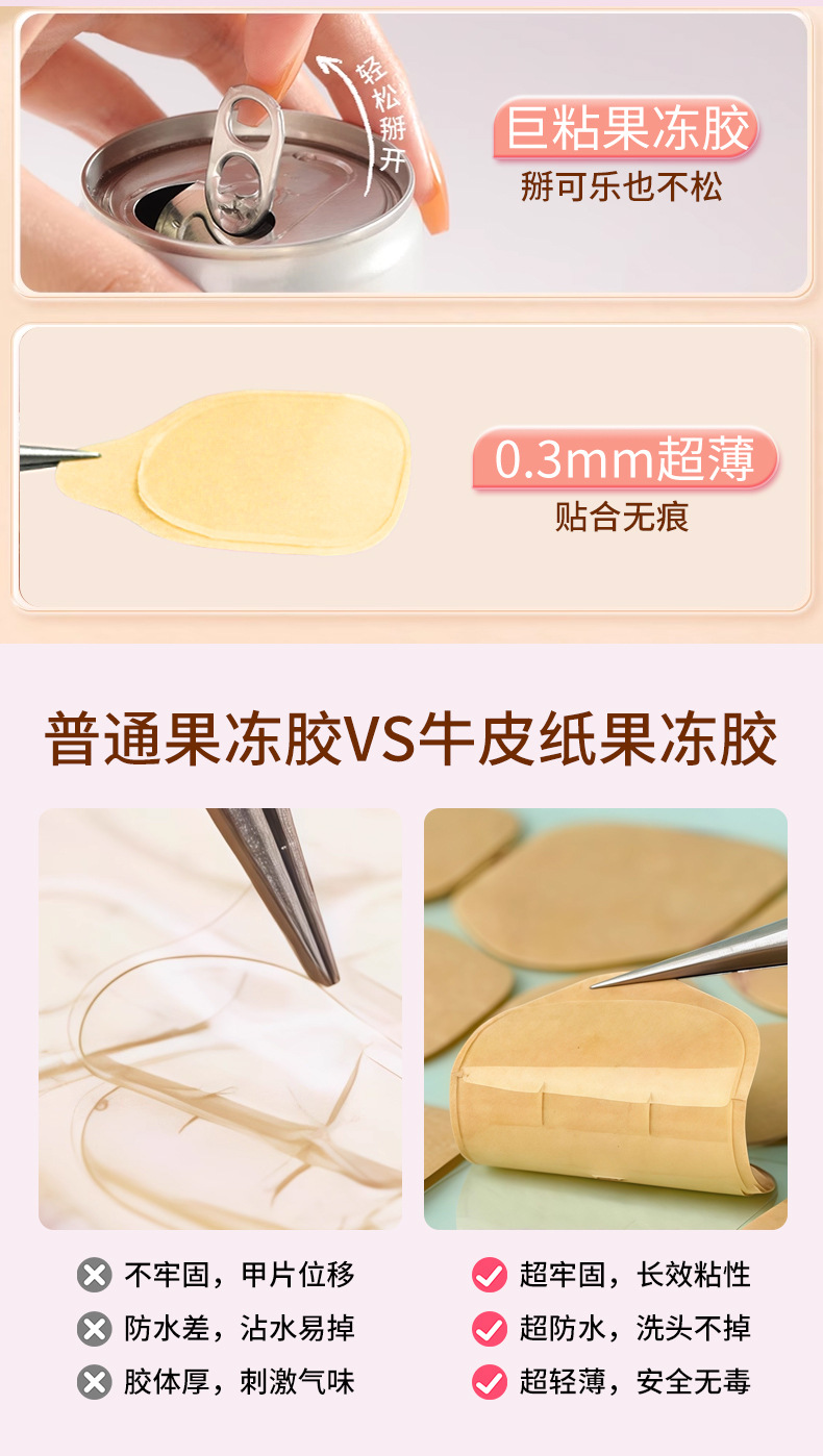Ультратонкие накладные ногти Glue King Glue King, суперсильный двусторонний желейный клей, маникюрная накладка для рук и ног, носимая, водонепроницаемая, увеличенная