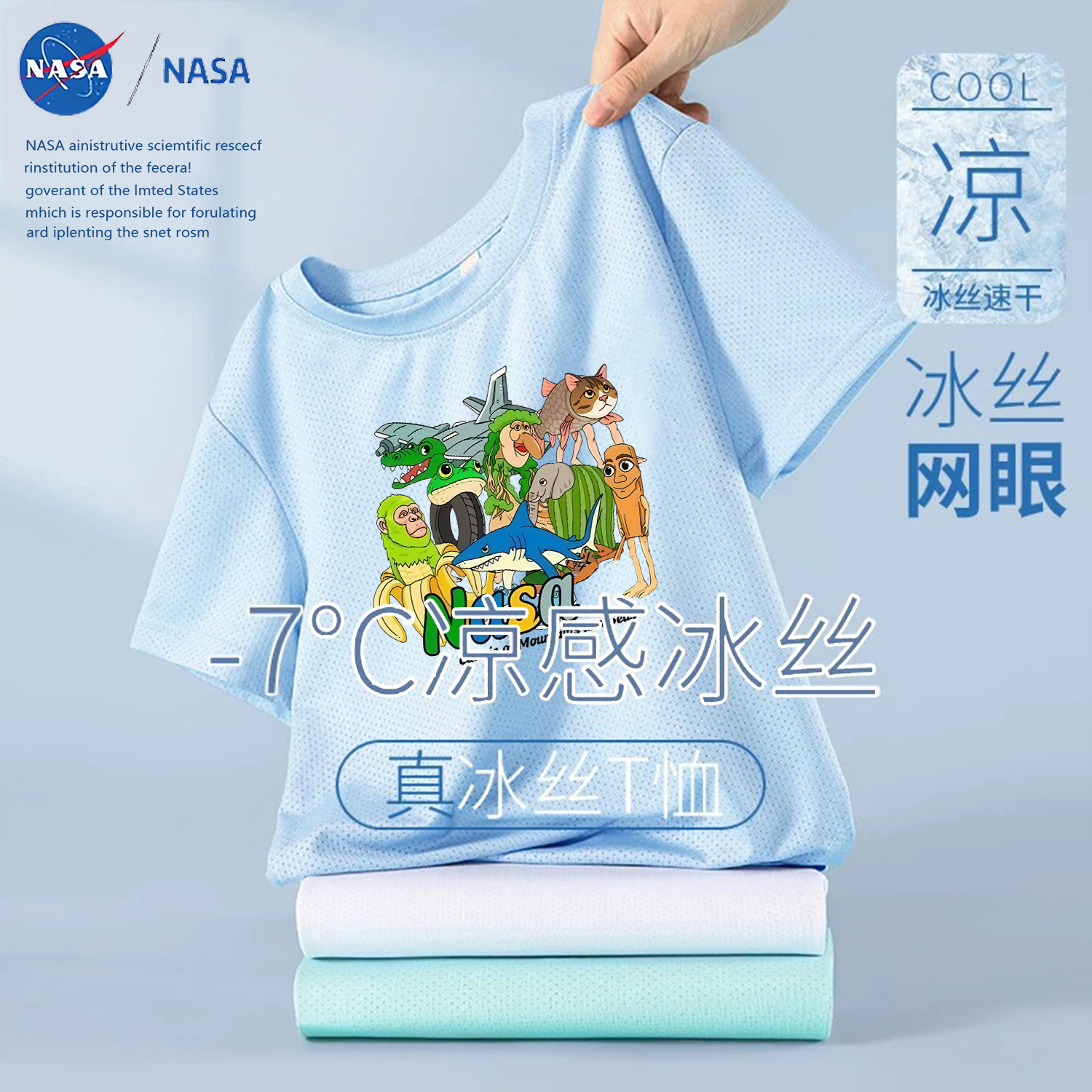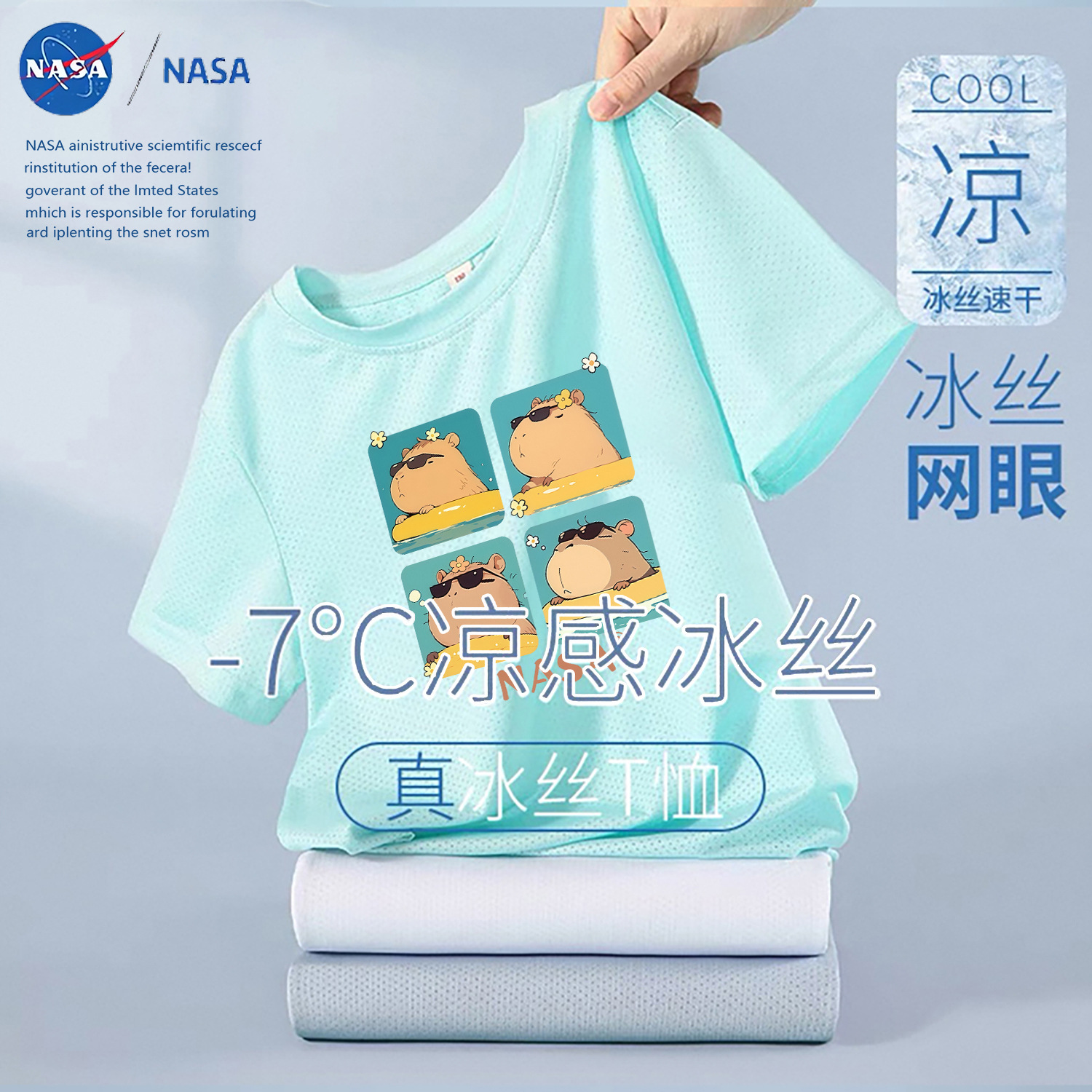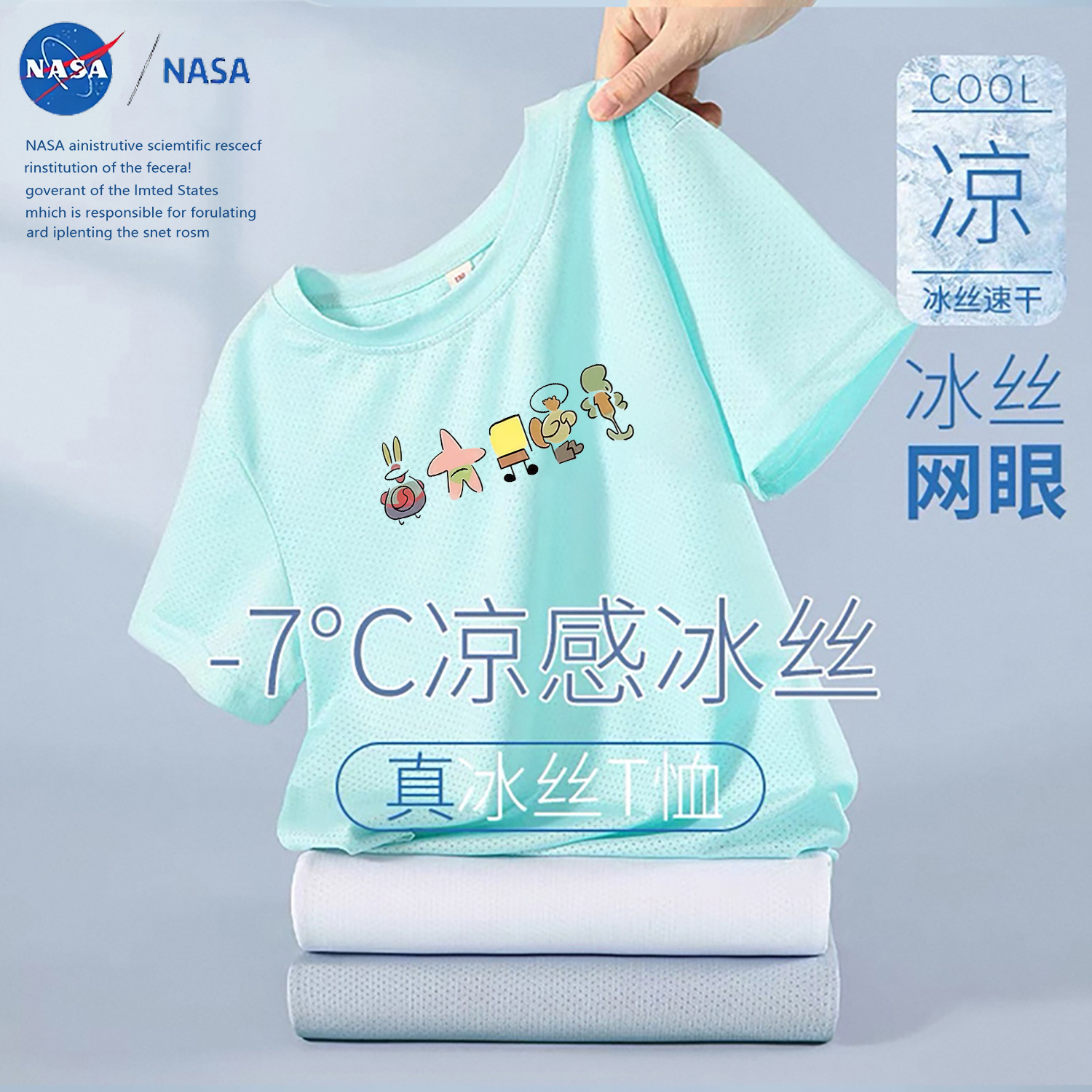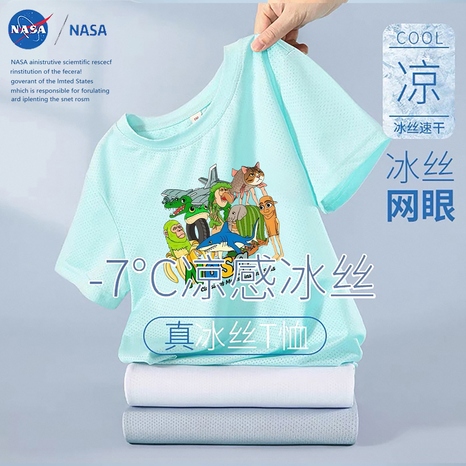 NASA лето 2025, новая детская сетчатая футболка из тонкого ледяного шелка с короткими рукавами, дышащая быстросохнущая футболка
