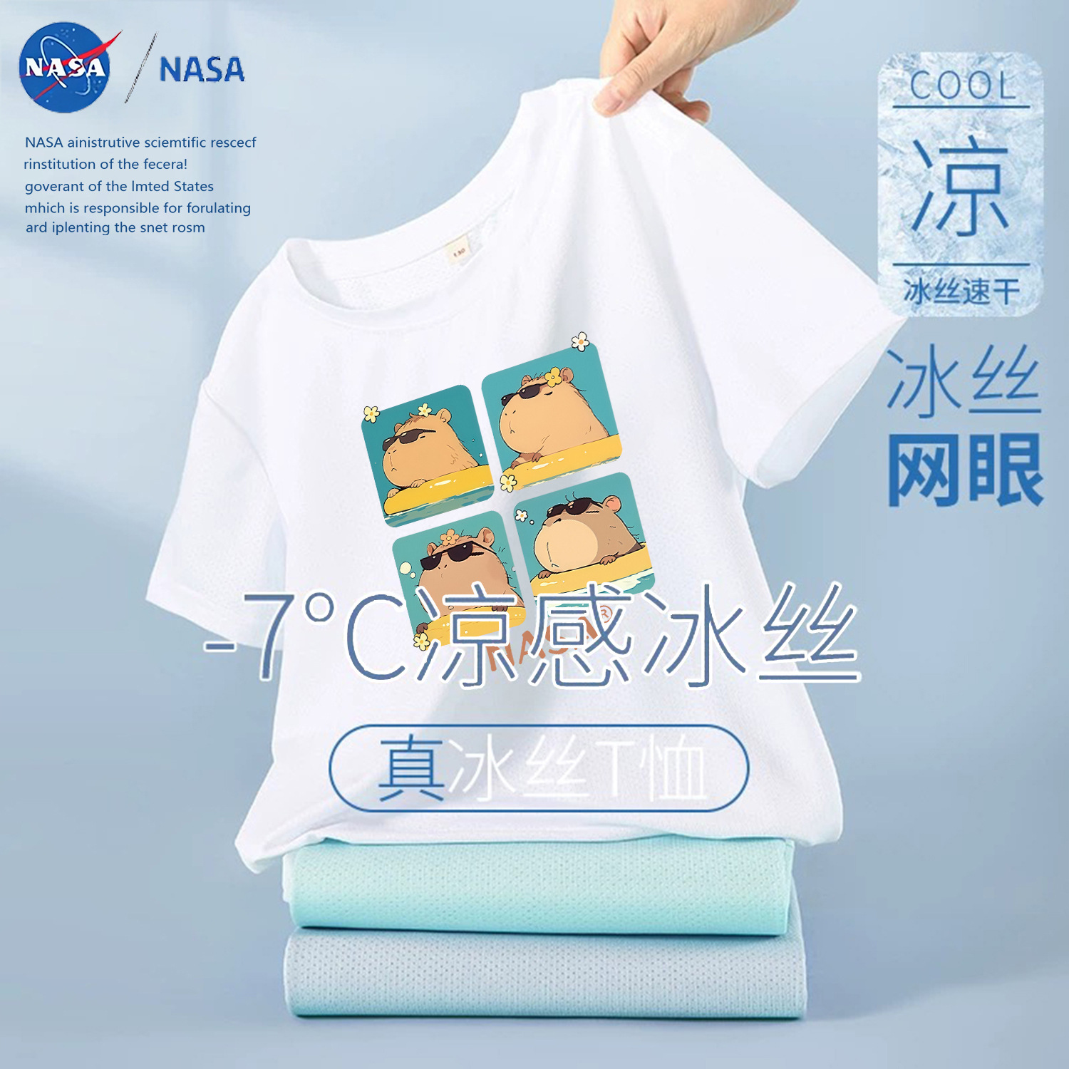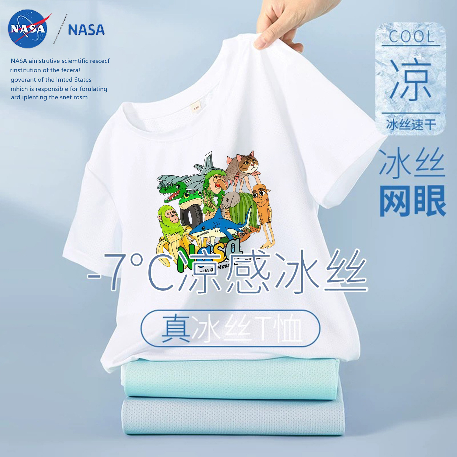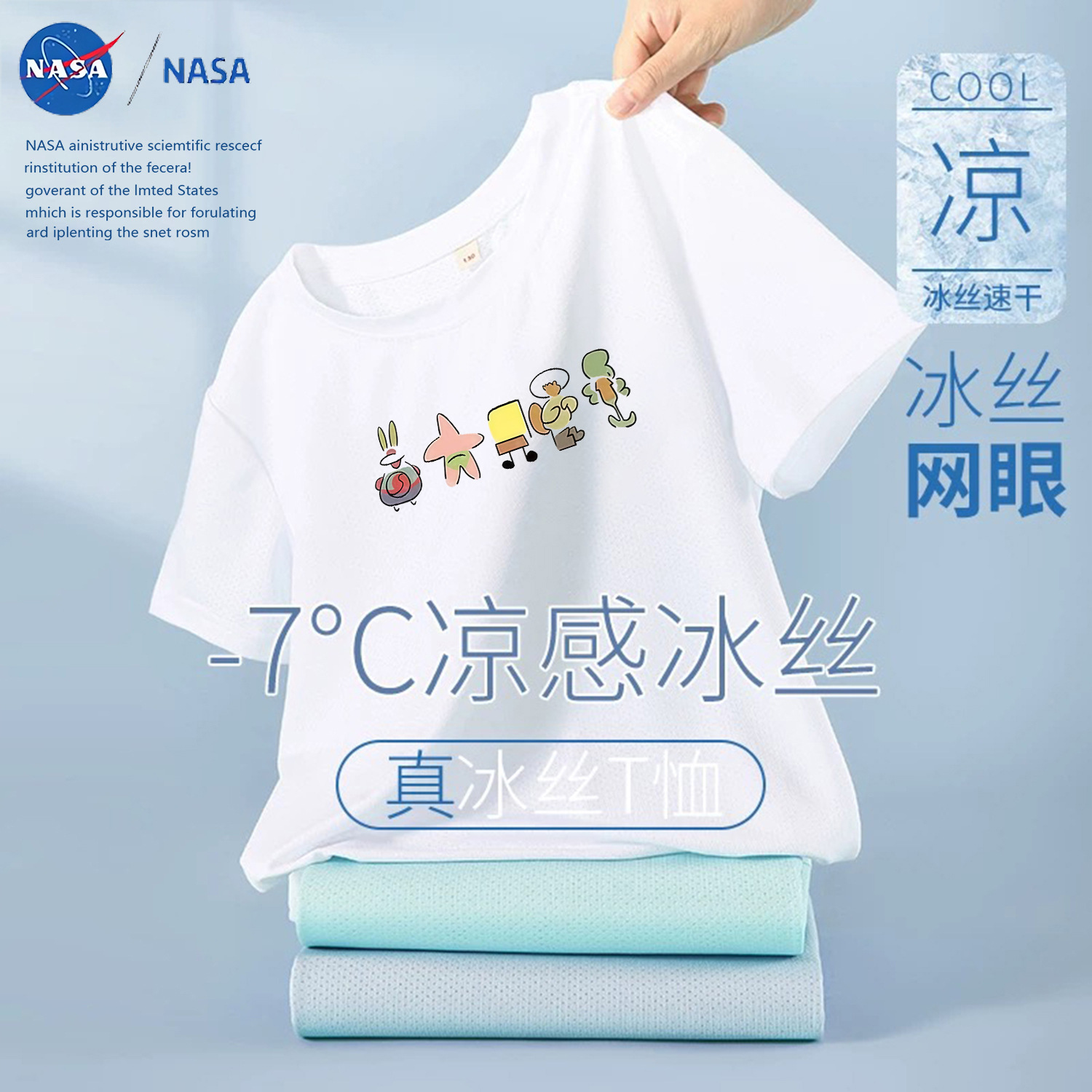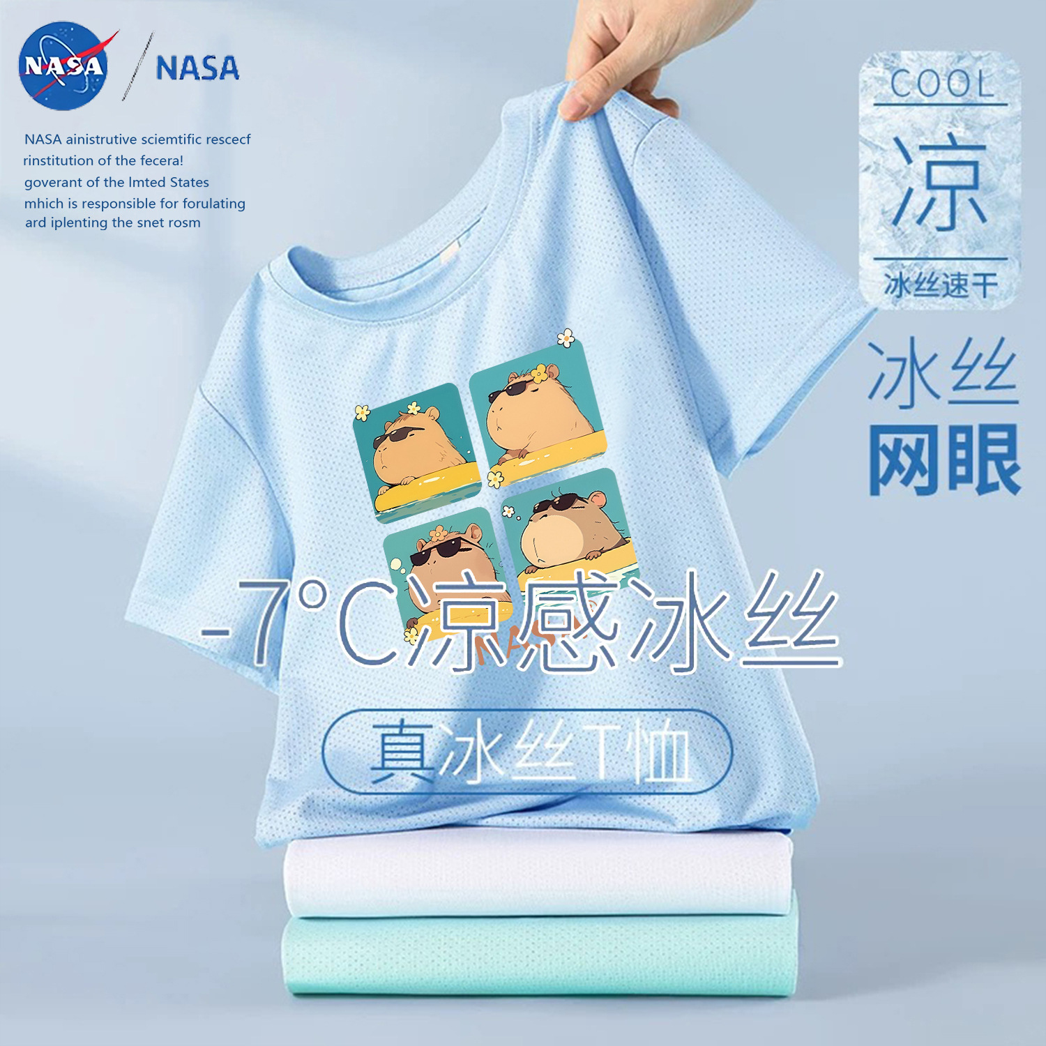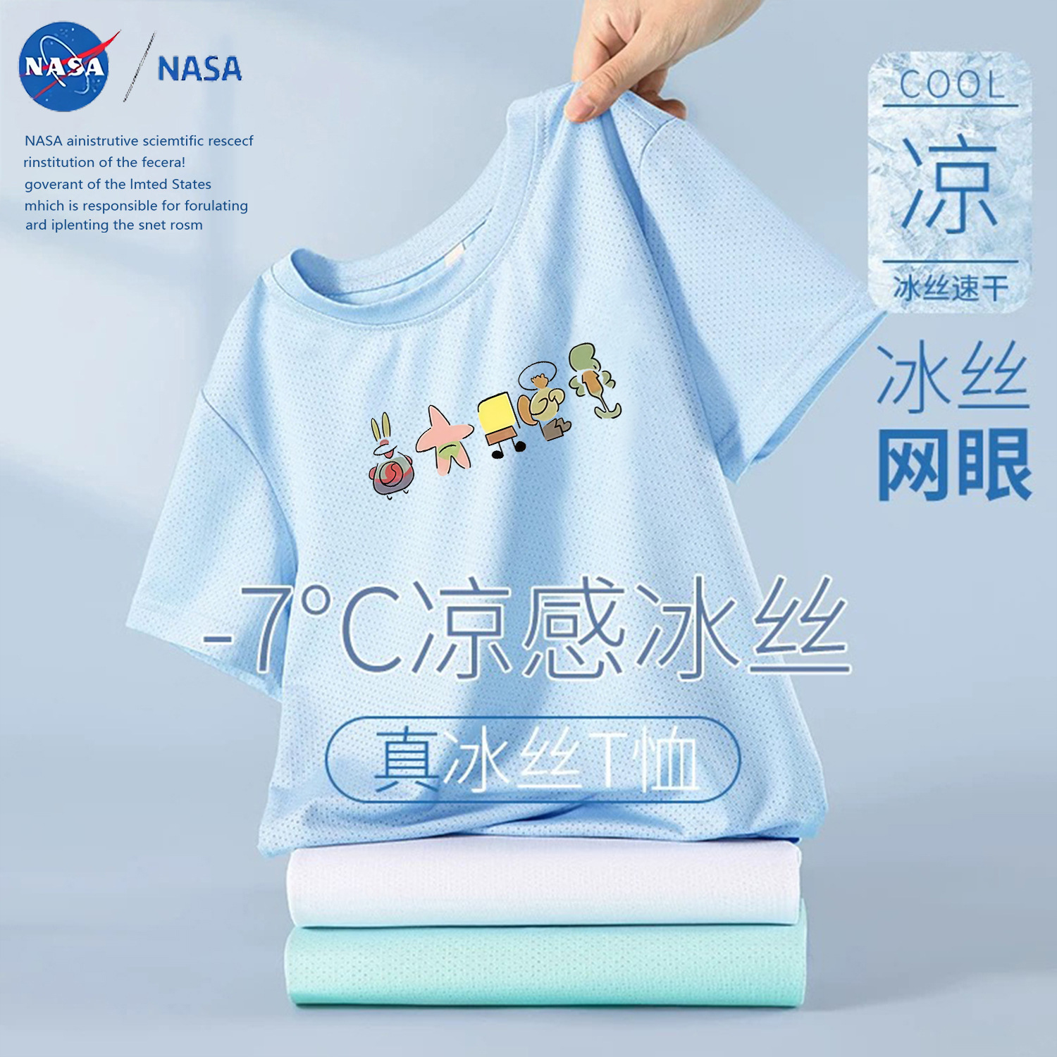 NASA лето 2025, новая детская сетчатая футболка из тонкого ледяного шелка с короткими рукавами, дышащая быстросохнущая футболка