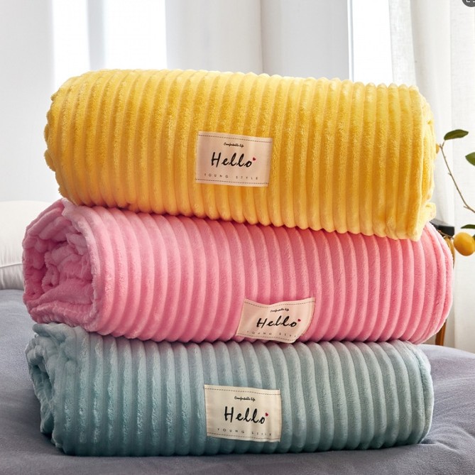 Оптовая продажа от производителя: однотонное утолщенное полосатое фланелевое одеяло из молочного велюра, офисное одеяло для сна, одеяло для кондиционирования воздуха.