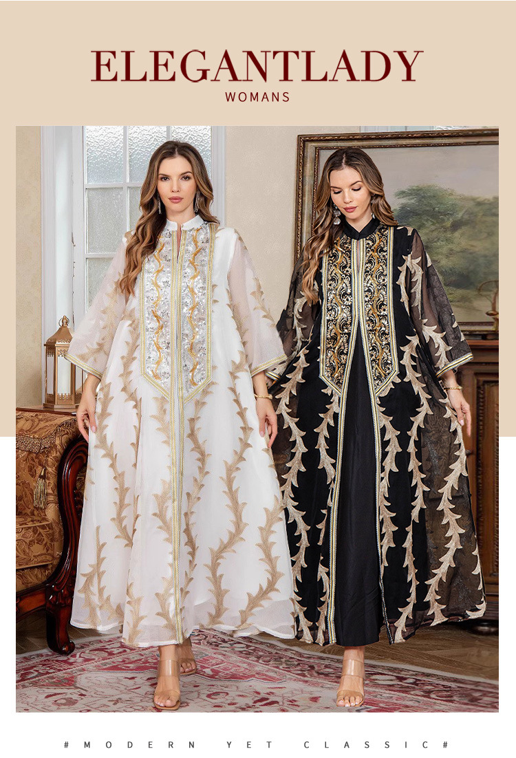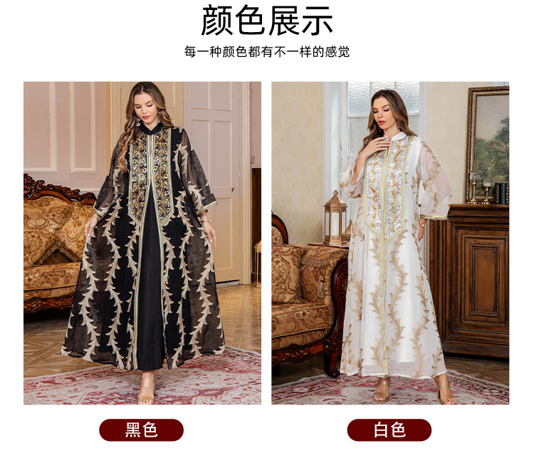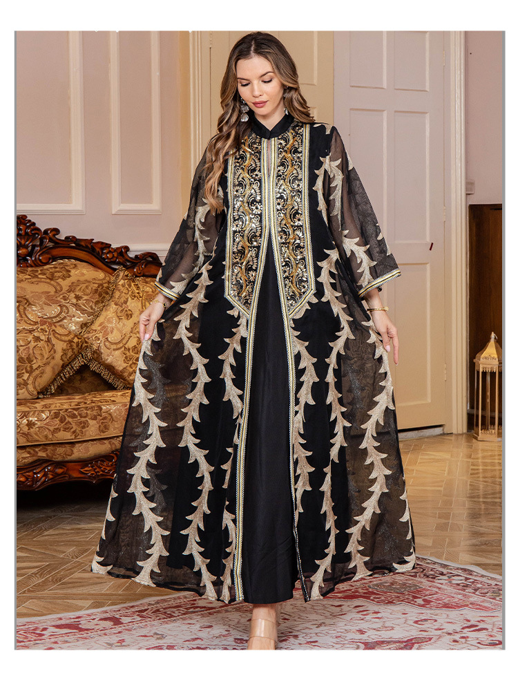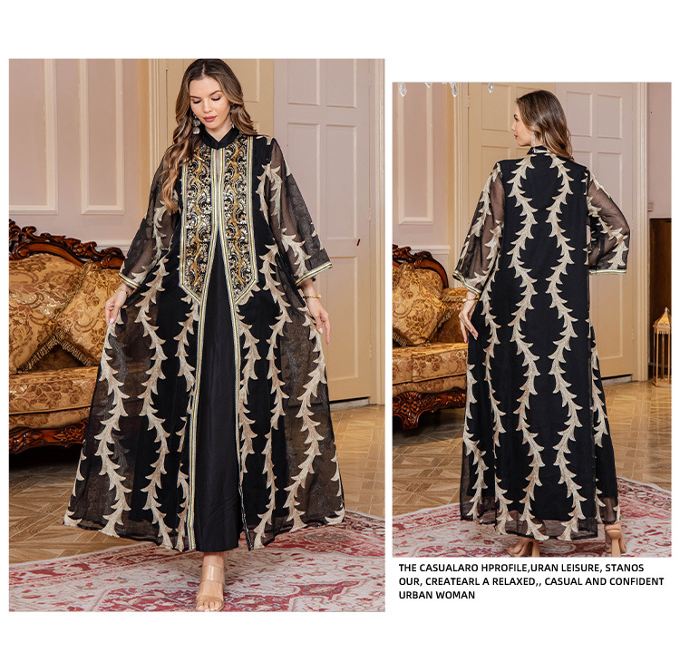 Летнее новое платье-халат из плотной сетки с вышивкой, Дубайское вечернее платье, длинная юбка в восточном стиле, мусульманское женское платье