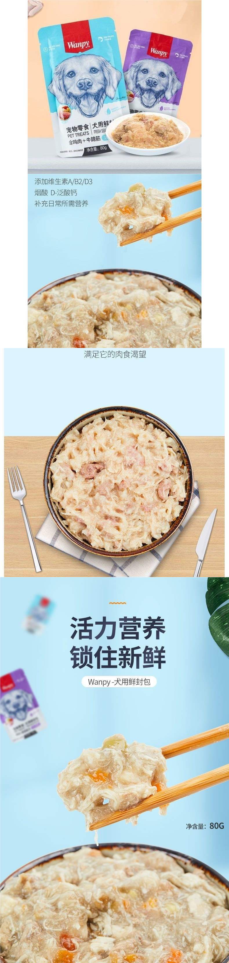 Влажный корм для собак Wanpy Naughty Fresh Pack, консервированный, свежее мясо, говядина, курица, Тедди, 80г