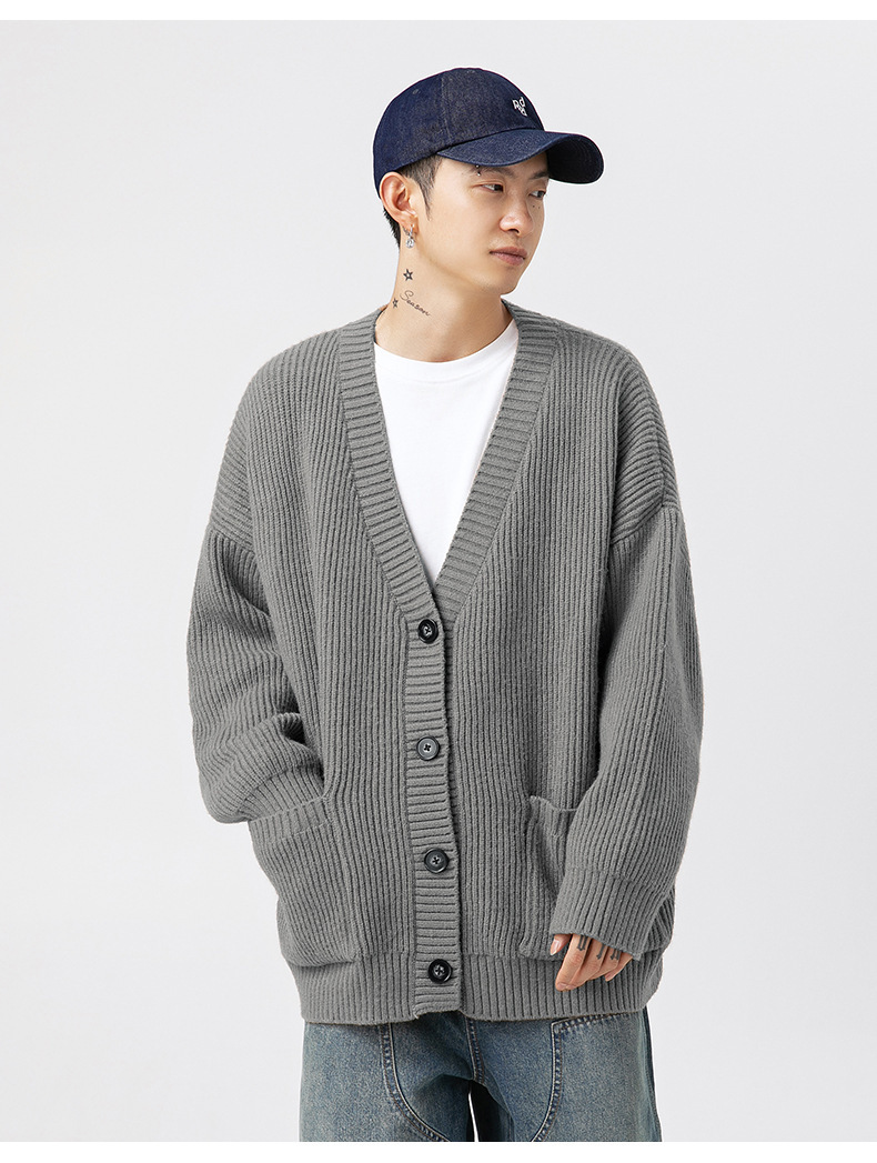 Мужской свитер-кардиган из плотной вязки с тяжелой текстурой, осенне-зимняя новая универсальная простая однотонная вязаная куртка для пар в японском стиле.