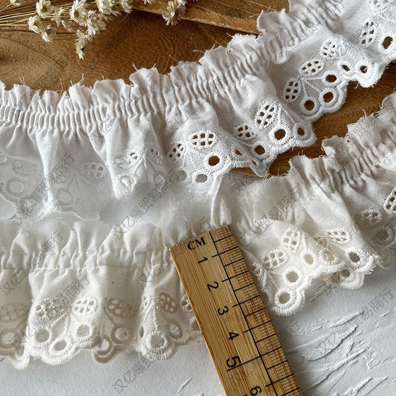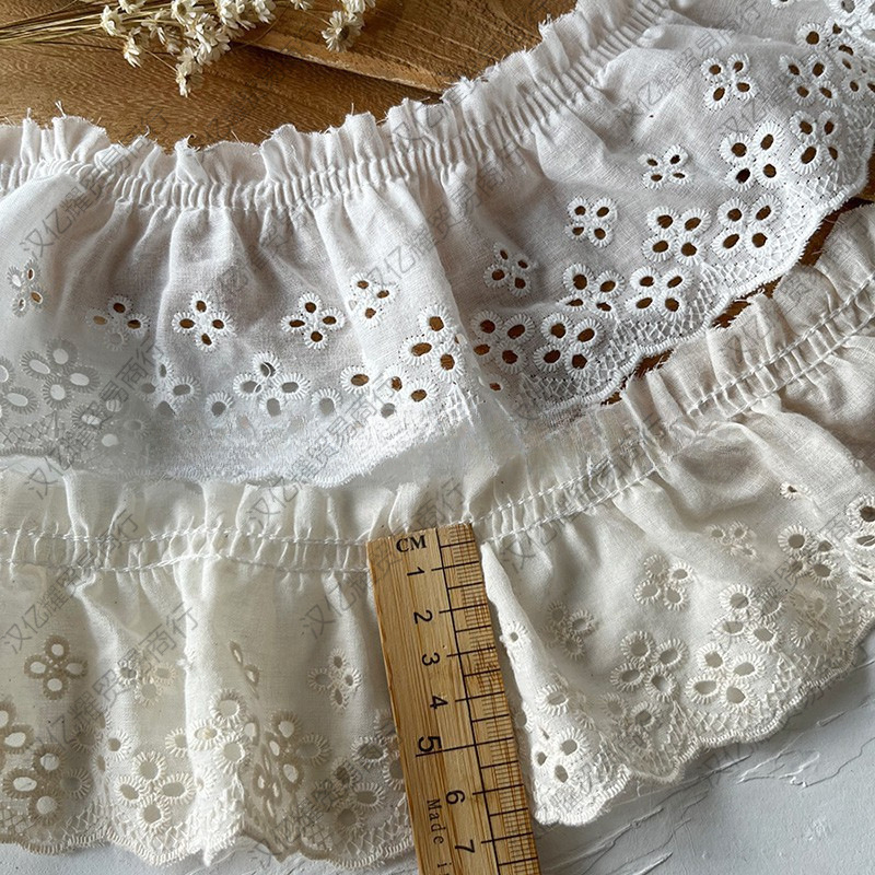 Юбка из чистого хлопка с вышивкой и белой кружевной отделкой, подол, вырез, манжеты, хлопок, кружевная отделка ручной работы в стиле Лолиты.