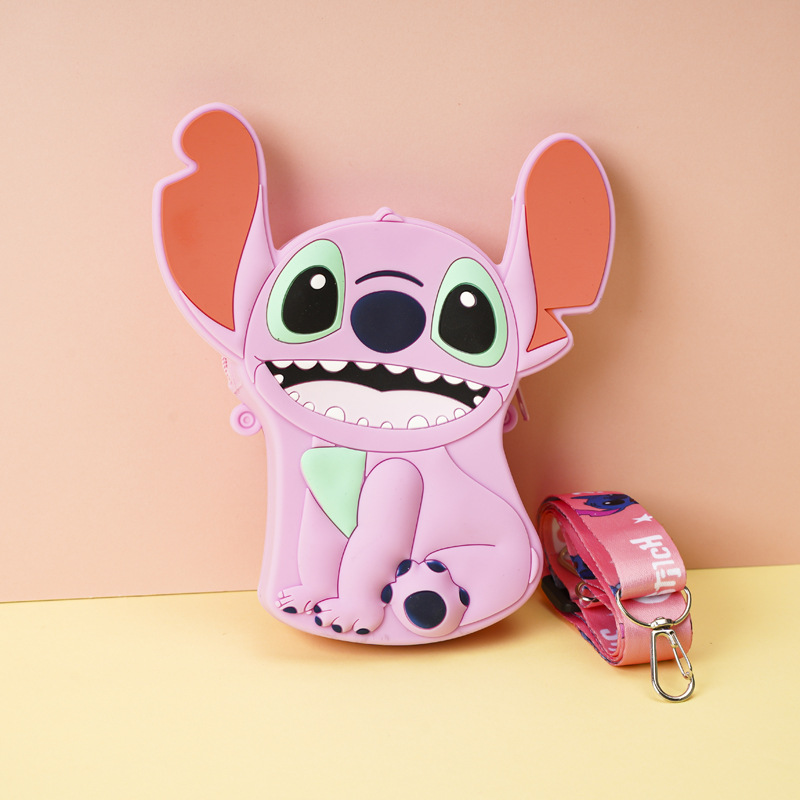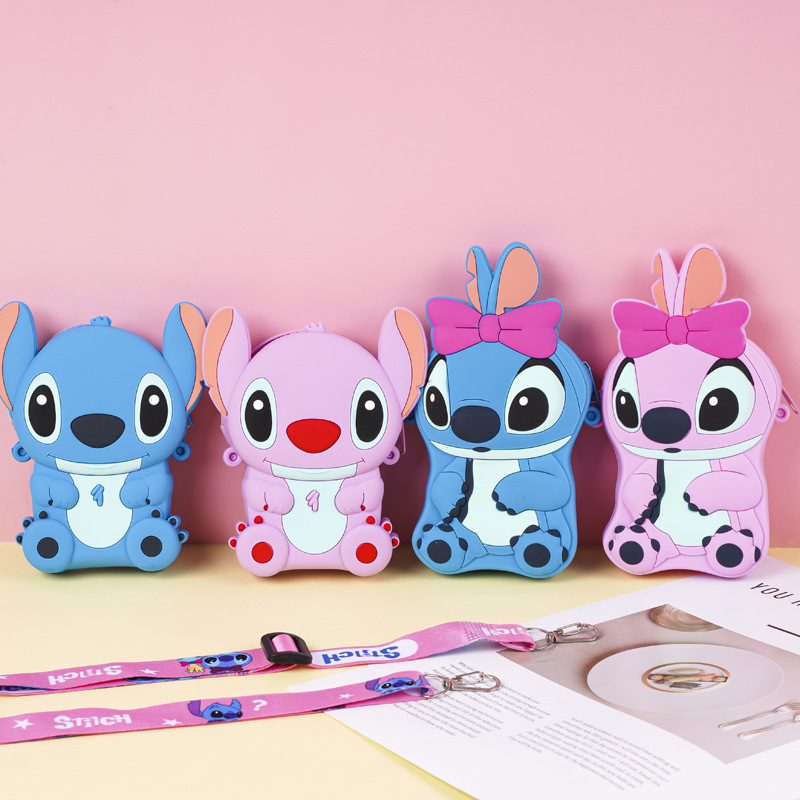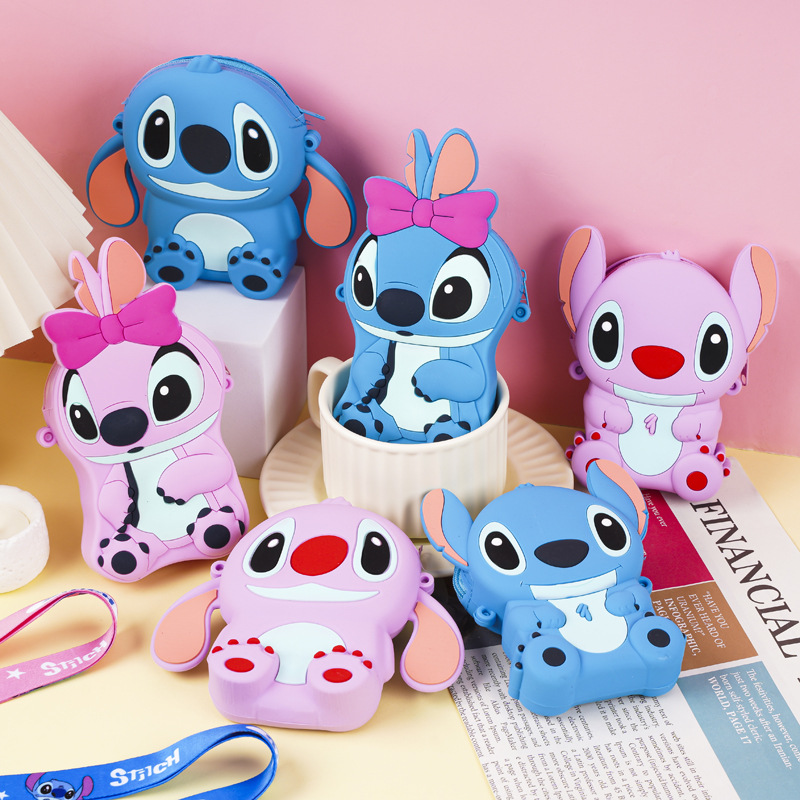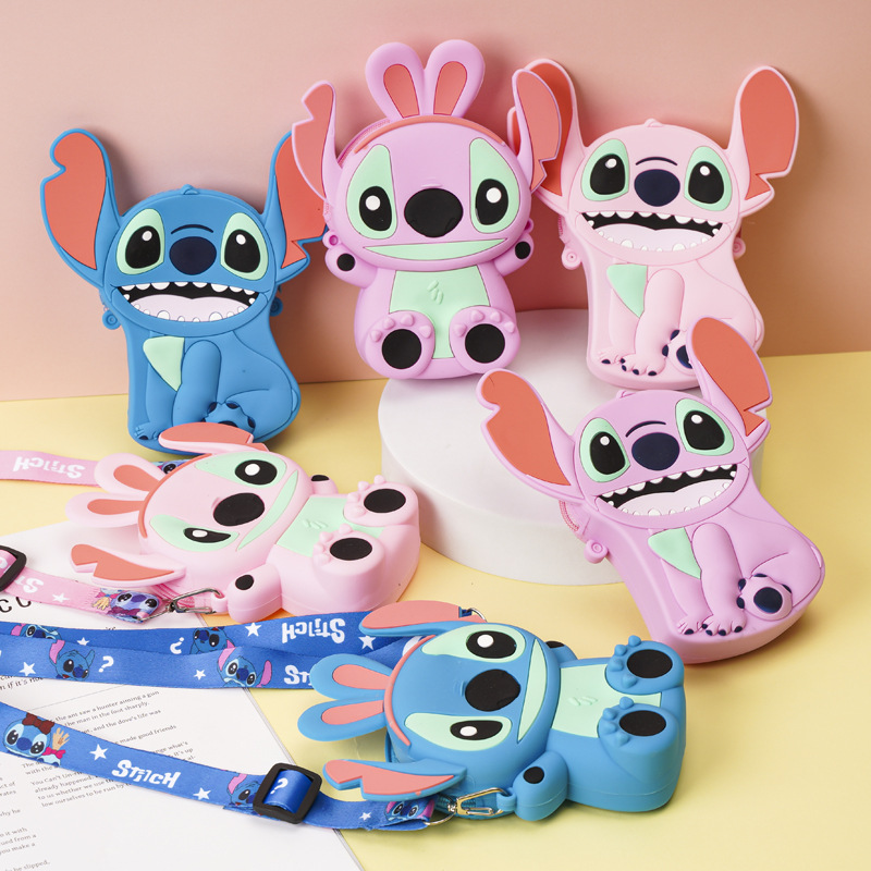 Детская сумочка-кроссбоди для девочек, силиконовый кошелек для монет, милый мультяшный Стич, комплект одежды для малышей, маленький рюкзак
