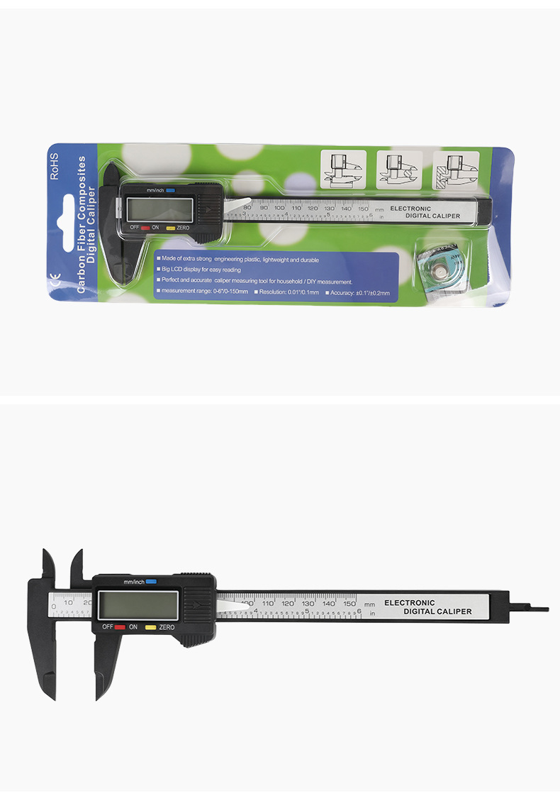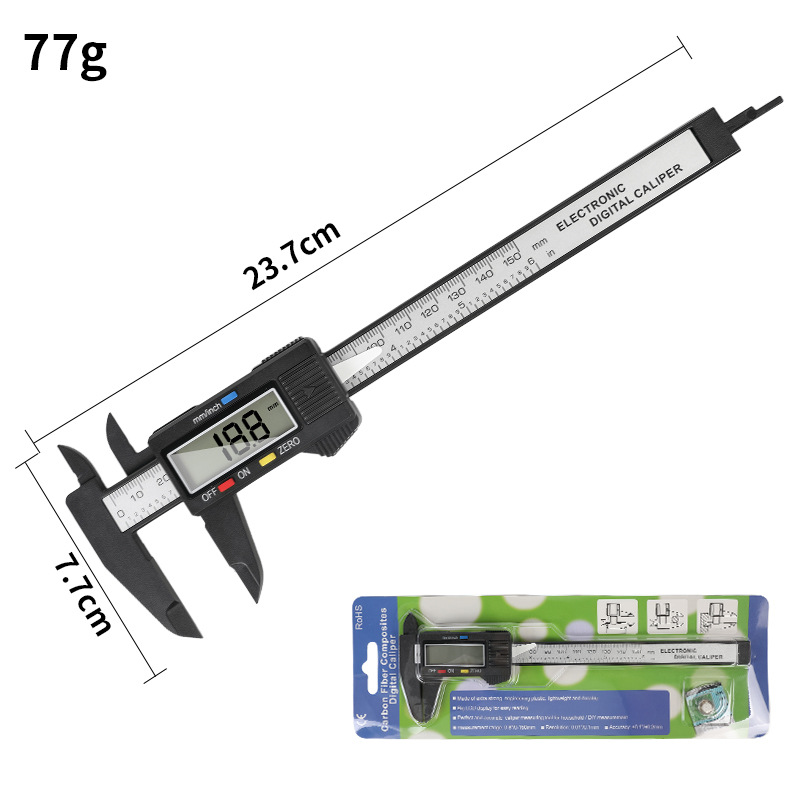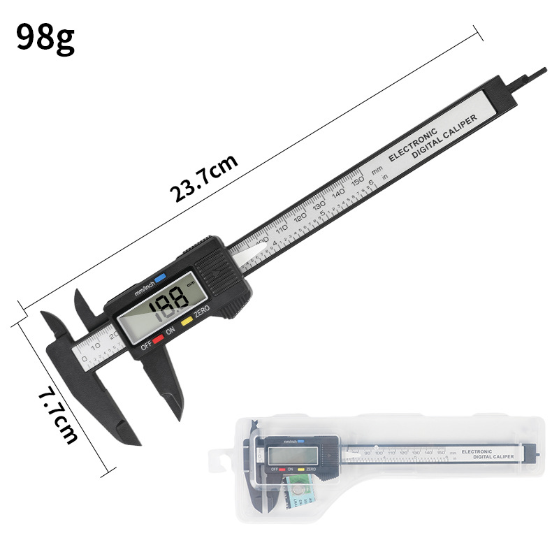 Пластиковый цифровой штангенциркуль с цифровым дисплеем 0-150 мм, ювелирные изделия и игрушки, штангенциркуль внутреннего и внешнего диаметра, цифровой большой экран из углеродного волокна