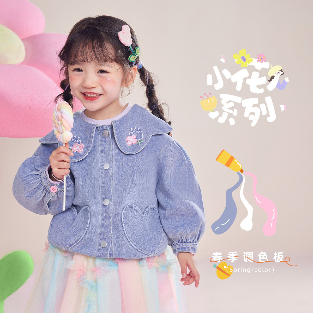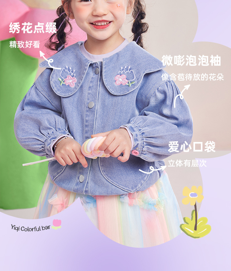 [Yiqi Baby] Куртки для девочек, весенняя детская новая джинсовая одежда, детские кардиганы, весенняя детская одежда