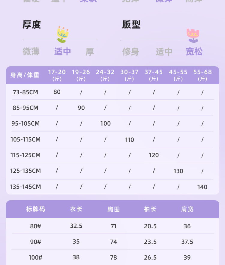 120 рекомендуемый рост 115-125см; 130 Рекомендуемый рост 125-135 см; 140 рекомендуемый рост 135-145см