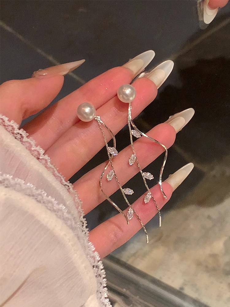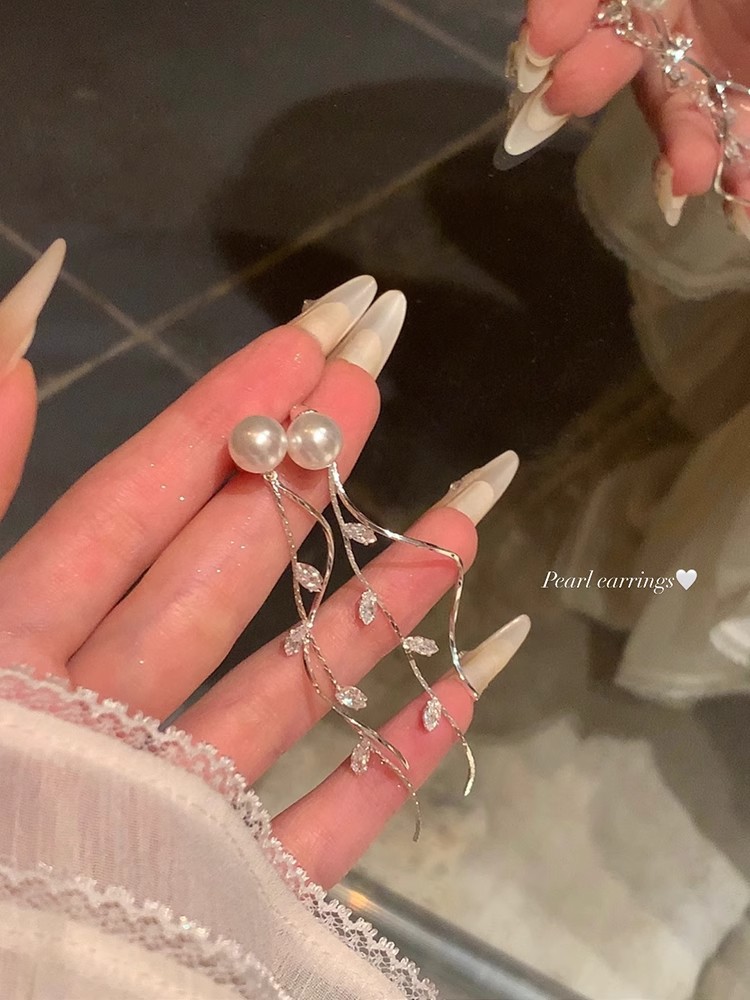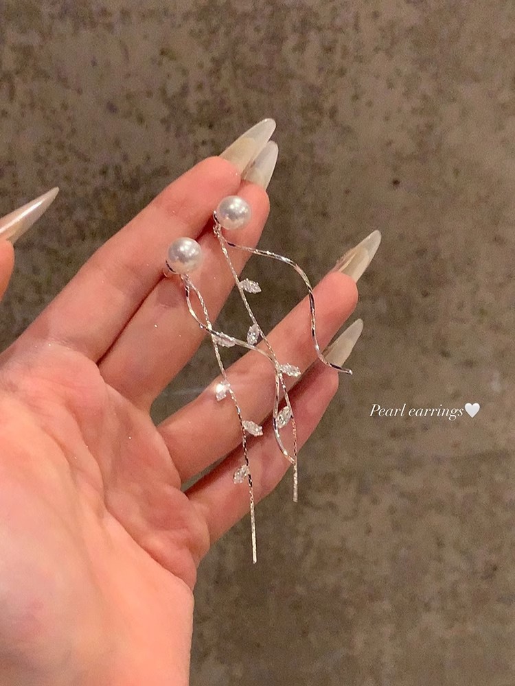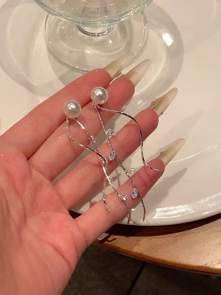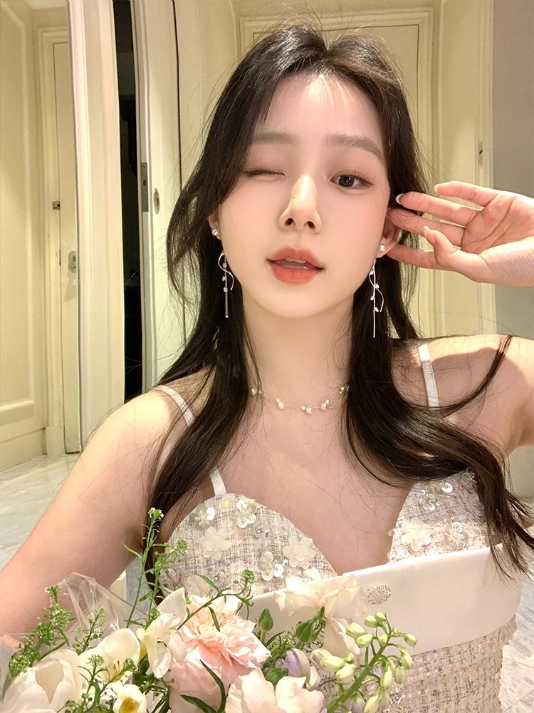 Корейский стиль, слегка сладкая девушка, блестящие жемчужные серьги с длинными кисточками, легкие роскошные серьги, дизайнерские серьги, элегантный стиль