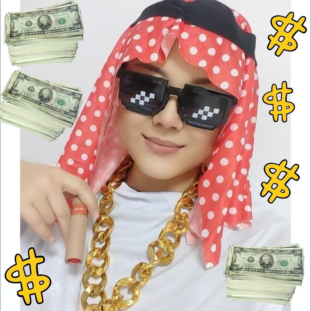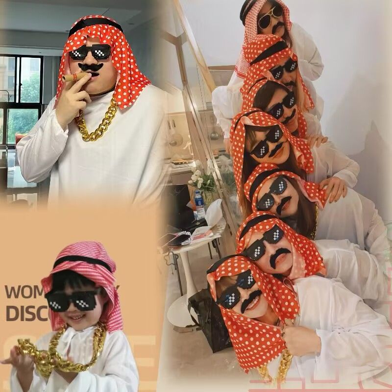 [Полный комплект] Богатый халат + платок + борода + очки + ожерелье; [Набор из трех предметов] Богатый халат + платок + борода; Богатый платок в Дубае (только платок)