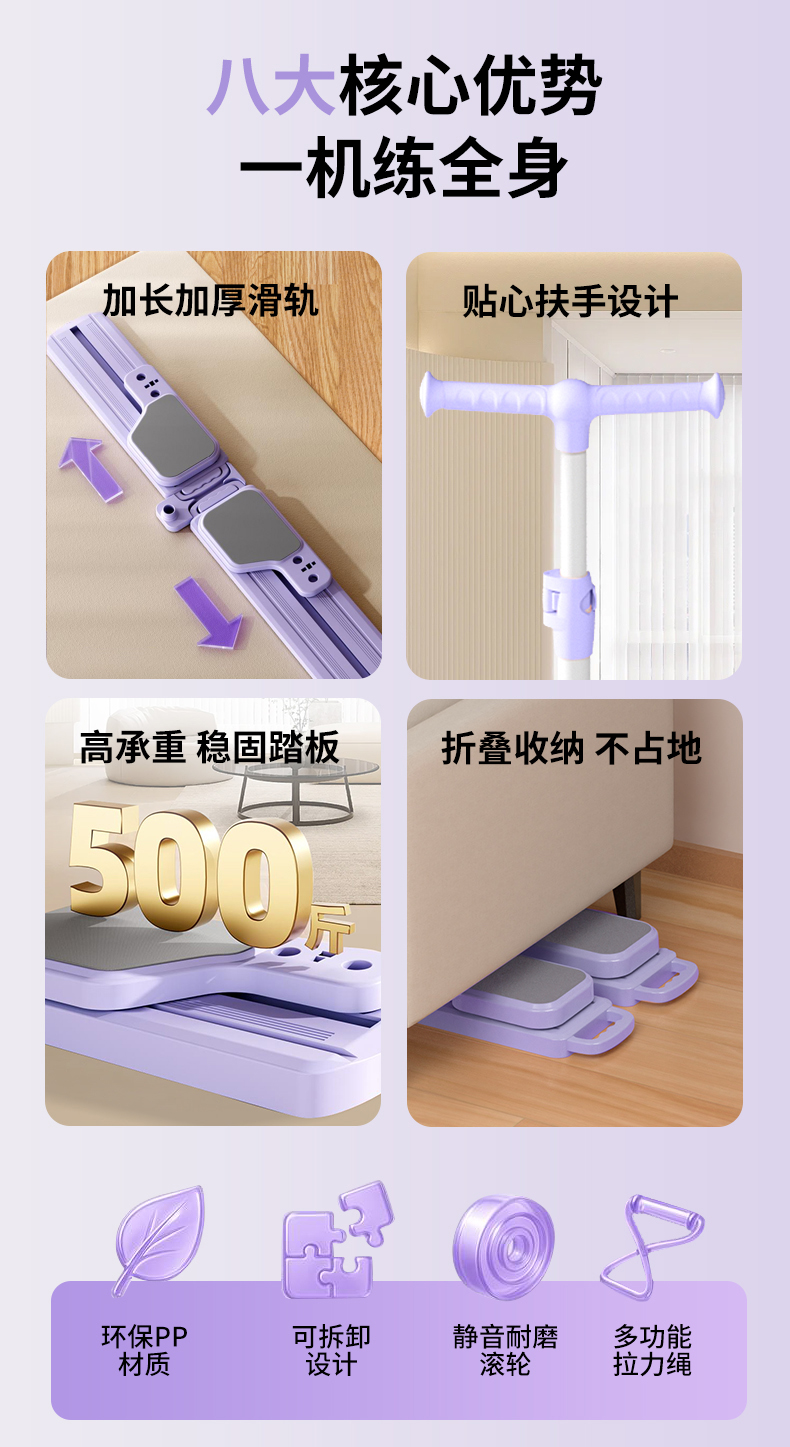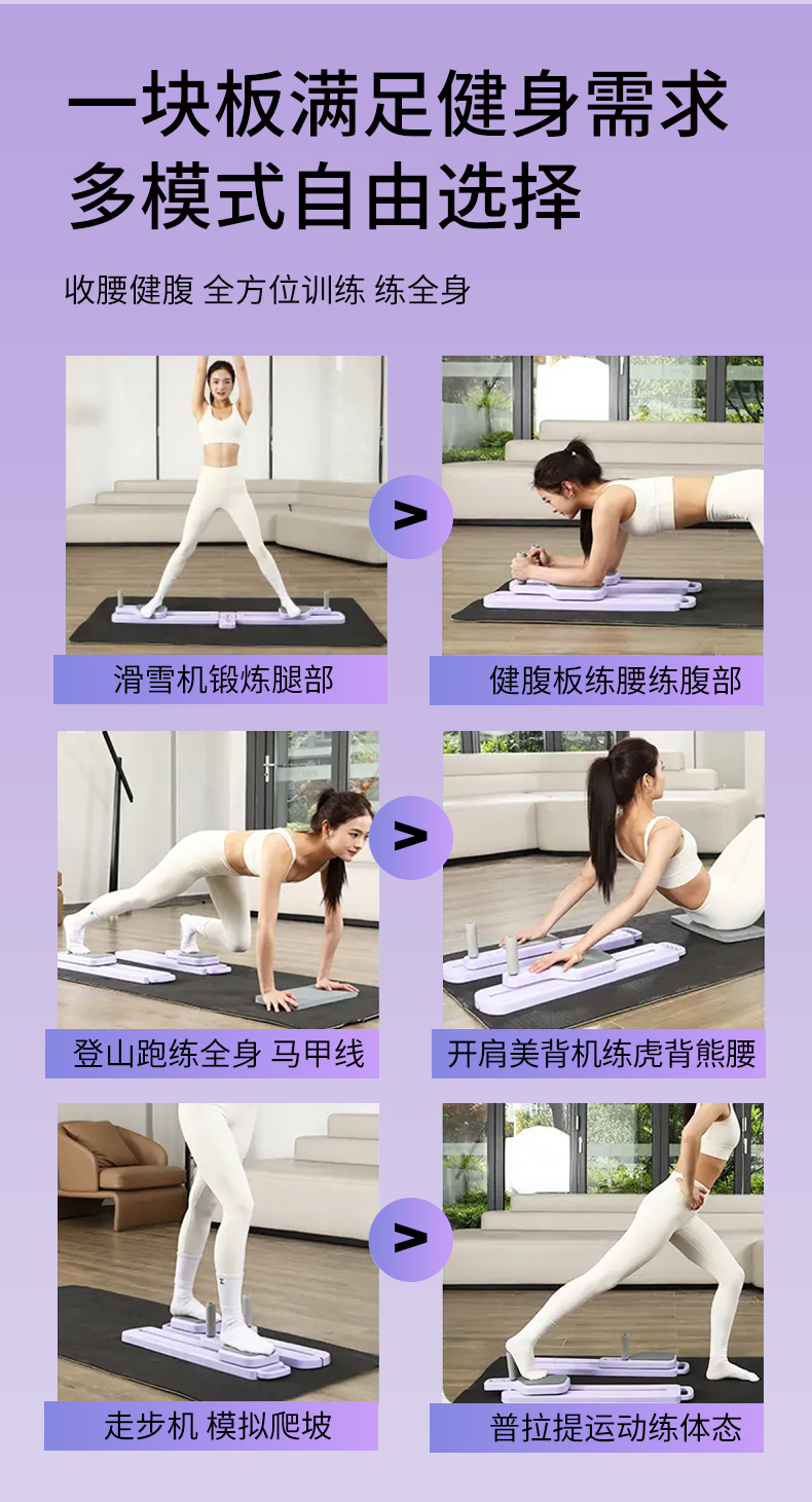 Split Type 1-го поколения — фиолетовая базовая модель (скейтборд + разъем + наколенники); Сплит-тип 1-го поколения — фиолетовая модернизированная модель (подлокотник + натяжной трос + скейтборд + соединитель + наколенники); Разъемный тип 1-го поколения — фиолетовая счетная модель (подлокотник + шнурок + пластина + разъем + подушечка + счетчик); Розовая базовая модель первого поколения (скейтборд + коннектор + наколенники); Сплит-тип 1-го поколения — розовая модернизированная модель (подлокотник + натяжной трос + скейтборд + соединитель + наколенники); Разделенная розовая счетная модель 1-го поколения (подлокотник + шнурок + доска + разъем + подушечка + счетчик); Сплит-тип 2-го поколения — улучшенная фиолетовая модель (скейтборд + наколенники + натяжной трос + ручка для отжиманий) с регулируемым сопротивлением.; Сплит-тип 2-го поколения — фиолетовая базовая модель (скейтборд + наколенники) с регулируемым сопротивлением.; Сплит-тип 2-го поколения — белая модернизированная модель (скейтборд + наколенники + натяжной трос + ручка для отжиманий) с регулируемым сопротивлением.; Сплит-тип 2-го поколения — белая базовая модель (скейтборд + наколенники) с регулируемым сопротивлением.; Сплит-тип 2-го поколения — модернизированная черная модель (скейтборд + наколенники + натяжной трос + ручка для отжиманий) с регулируемым сопротивлением.; Сплит-тип 2-го поколения — черная базовая модель (скейтборд + наколенники) с регулируемым сопротивлением.; Сплит-тип 2-го поколения — модель с фиолетовым подлокотником (скейтборд + наколенники) с регулируемым сопротивлением.; Сплит-тип 2-го поколения — модель с белым подлокотником (скейтборд + наколенники + натяжная веревка + ручка для отжиманий) с регулируемым сопротивлением.; 2-го поколения, раздельный тип — модель с черным подлокотником (скейтборд + наколенники) с регулируемым сопротивлением