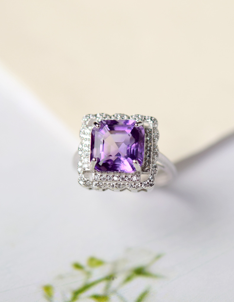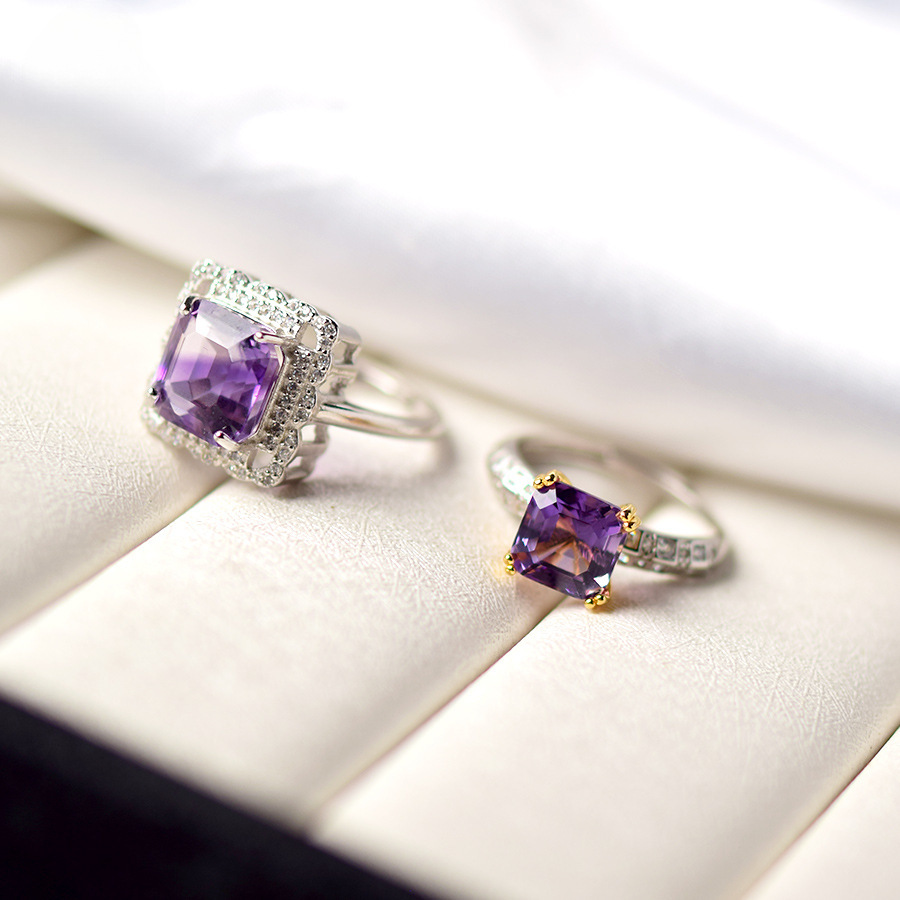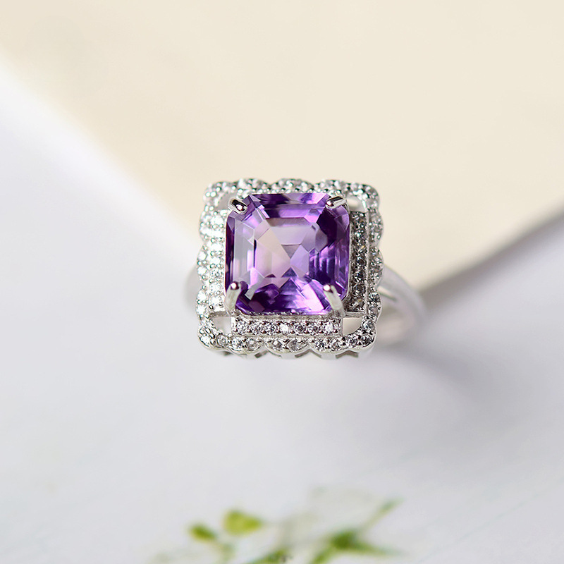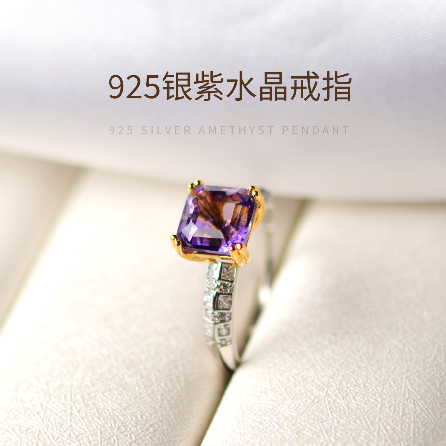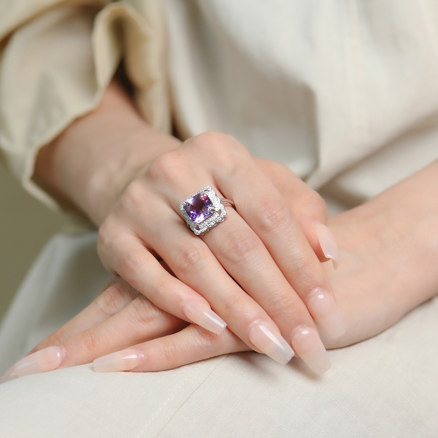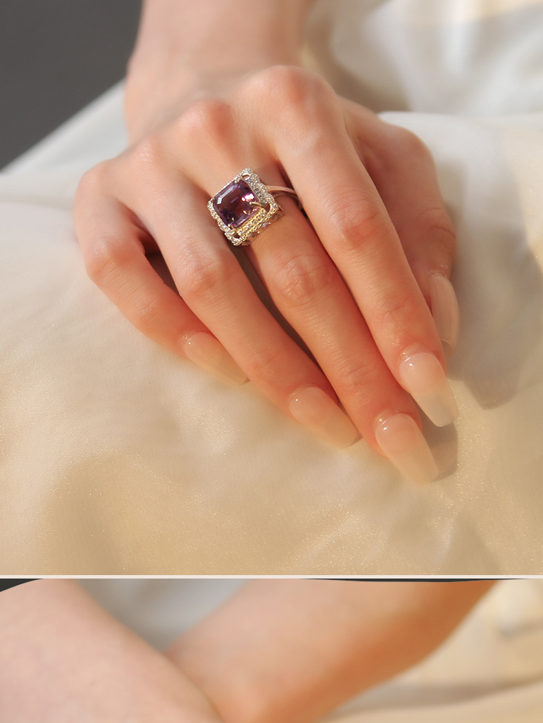 Кольцо с аметистом, женское доступное роскошное нишевое кольцо из серебра s925, кольцо с аметистом, инкрустированное необработанным аметистом, кольцо на указательный палец для пары