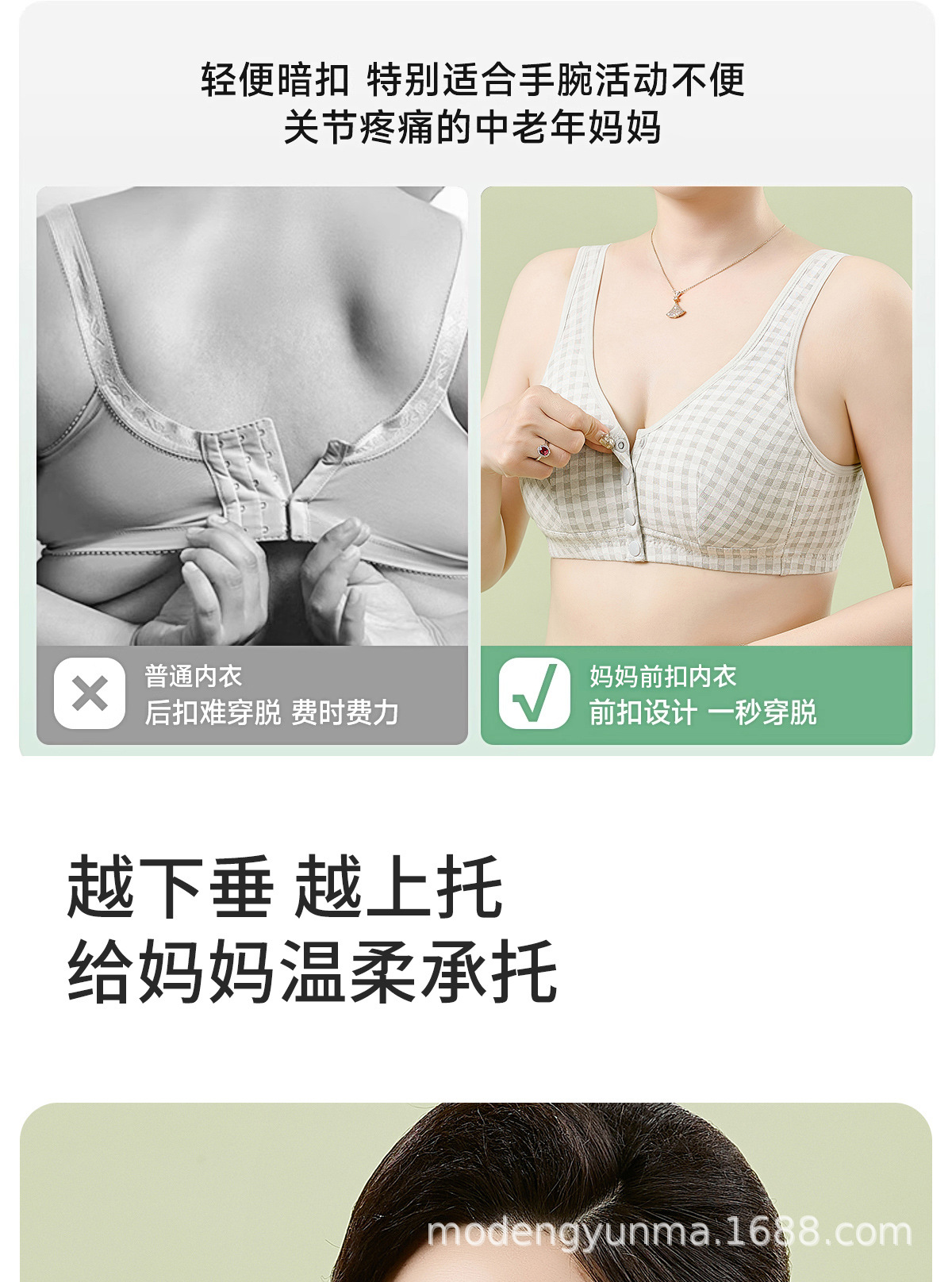 Нижнее белье из чистого хлопка для пожилых людей на пуговицах спереди, жилет большого размера, бюстгальтер для мам среднего и пожилого возраста, спортивный бюстгальтер без ободков и губки
