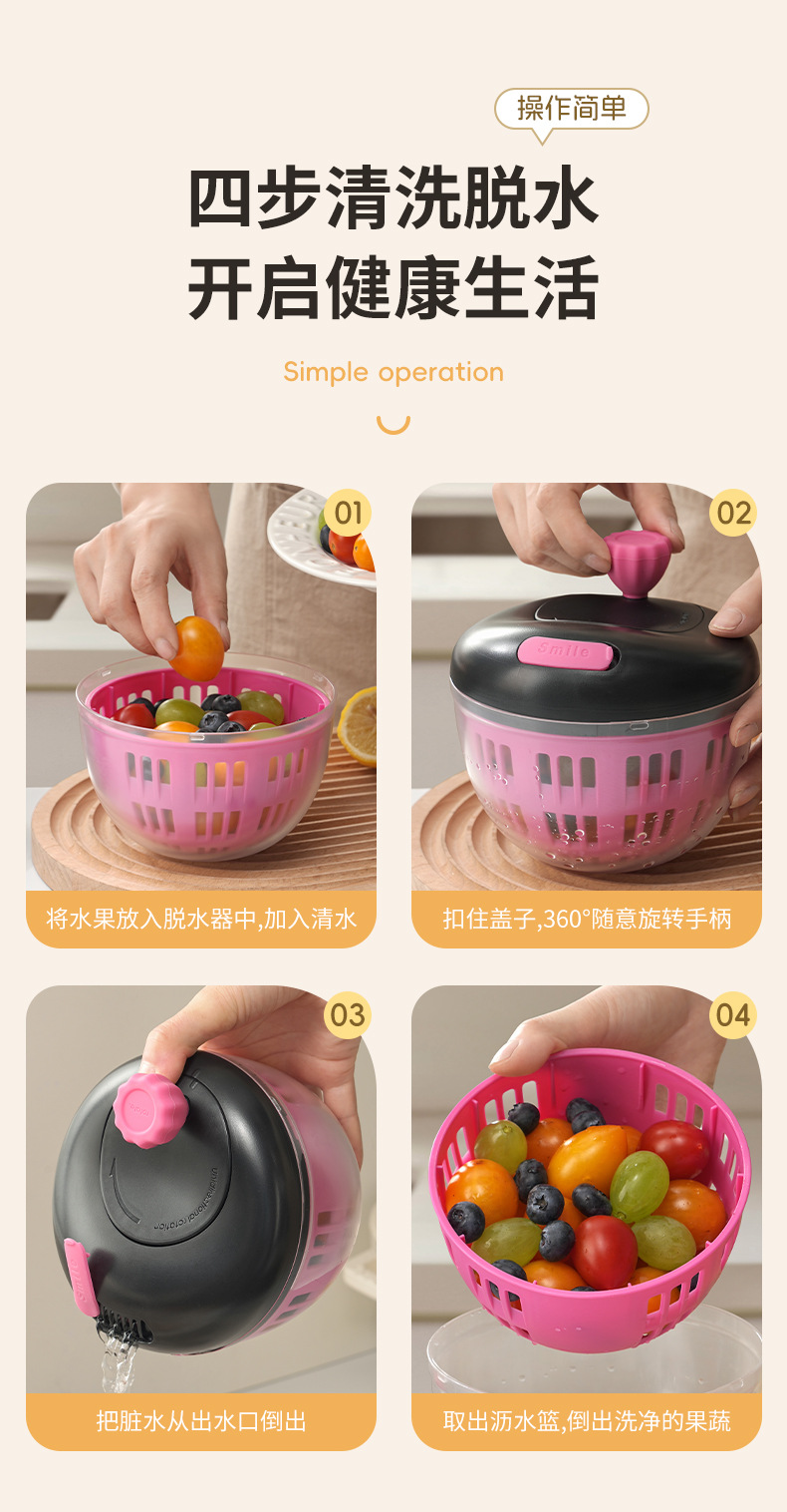 Самостоятельно разработанный ручной отжим для фруктового салата, овощей и сушки воды.