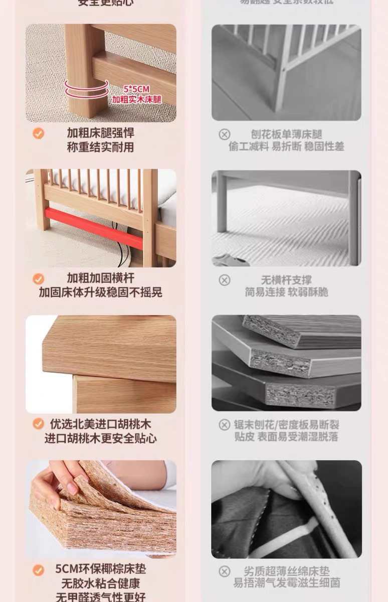 Детская кроватка из орехового дерева, кроватка из чистого массива дерева, кровать для мальчиков и девочек, кровать из бука, односпальная кровать, детская кровать из сращенного дерева
