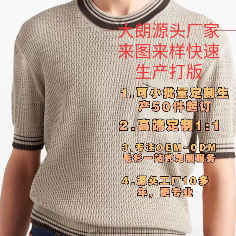 Европейские и американские вязаные свитера с короткими рукавами обрабатываются и изготавливаются по индивидуальному заказу. Летние свитера со стерео волновым узором изготавливаются по чертежам и образцам.