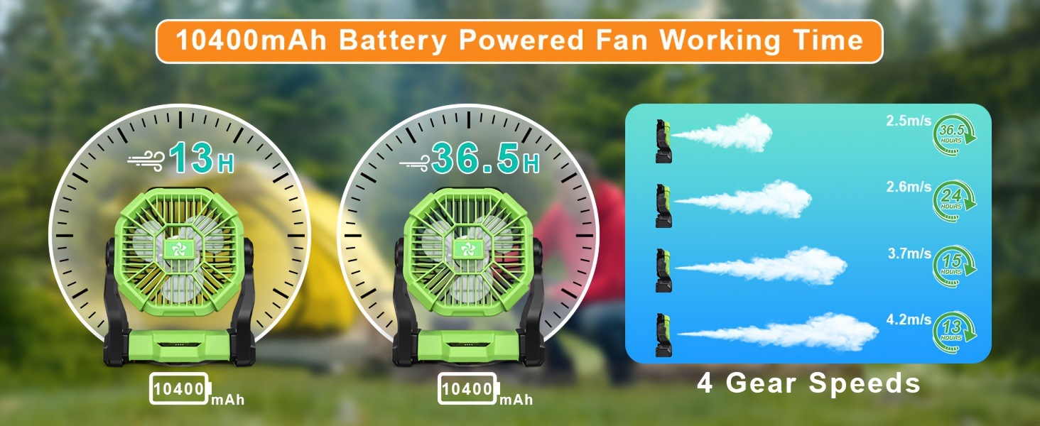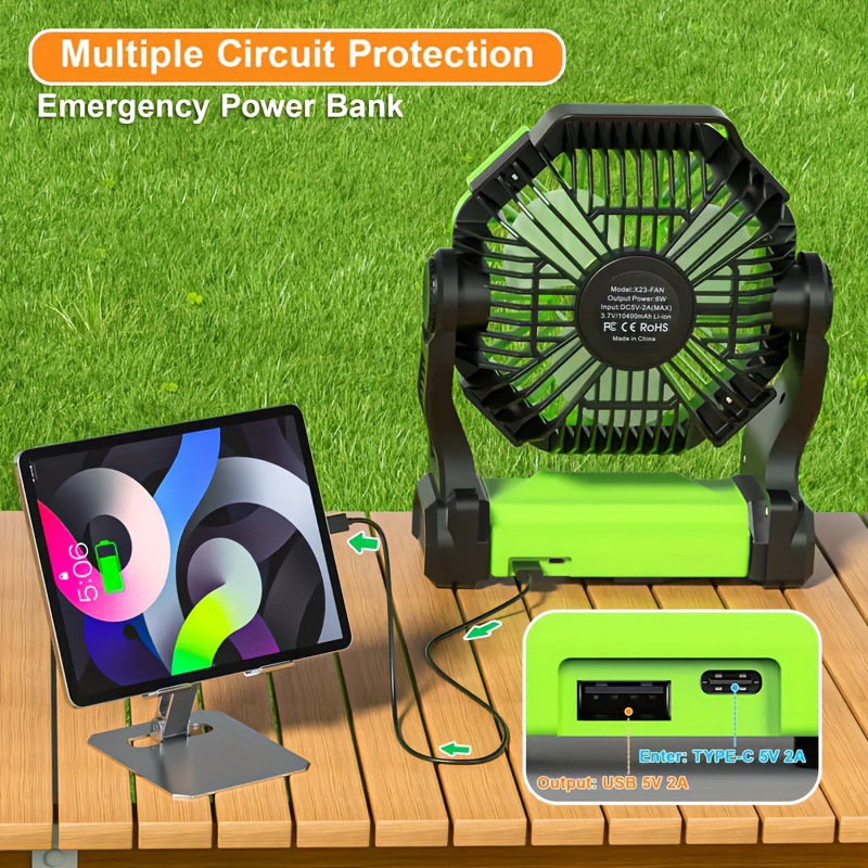 2025 Новый портативный кемпинговый вентилятор с LED-подсветкой для зарядки, 10400 мАч, для трансграничной доставки