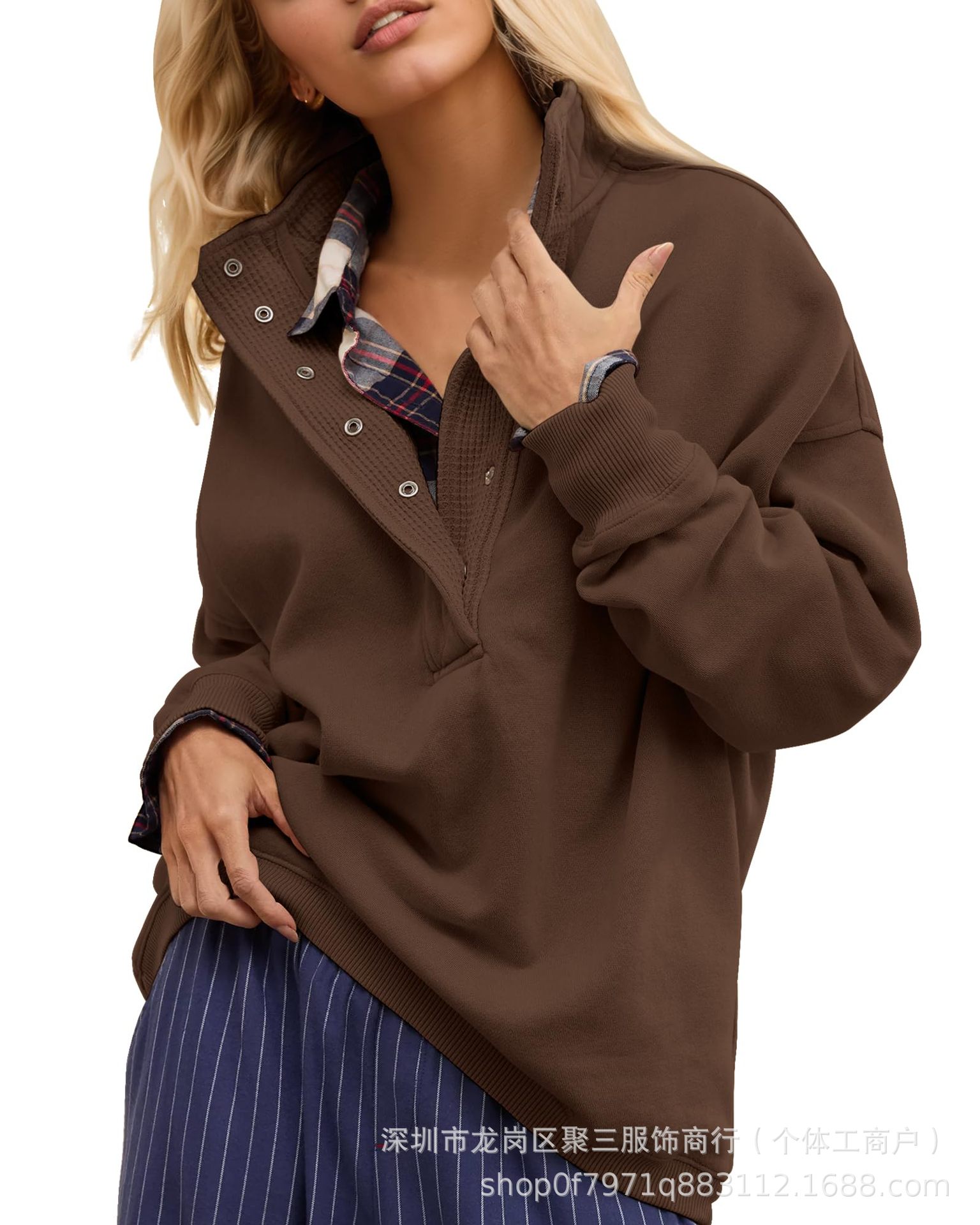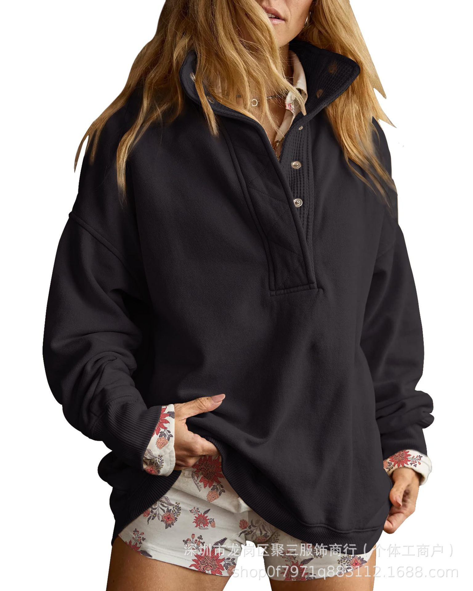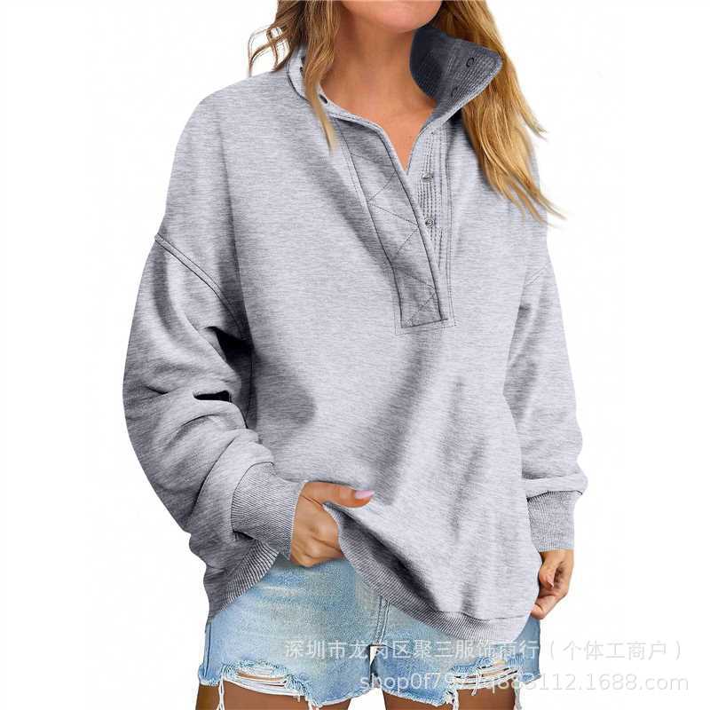 2025速卖通秋冬新款女士圆领纯色纽扣宽松卫衣长袖上衣女