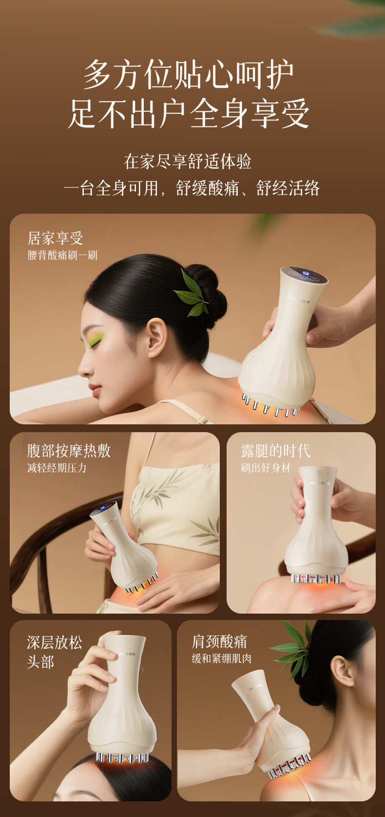 Электрическая меридианная щетка Oaks для похудения, инструмент для соскабливания живота, щетка для очистки живота, инструмент для соскабливания живота, массажное устройство для сжигания жира с эфирным маслом