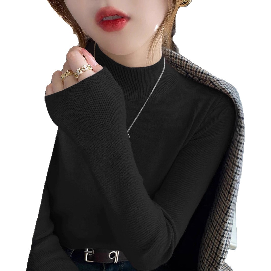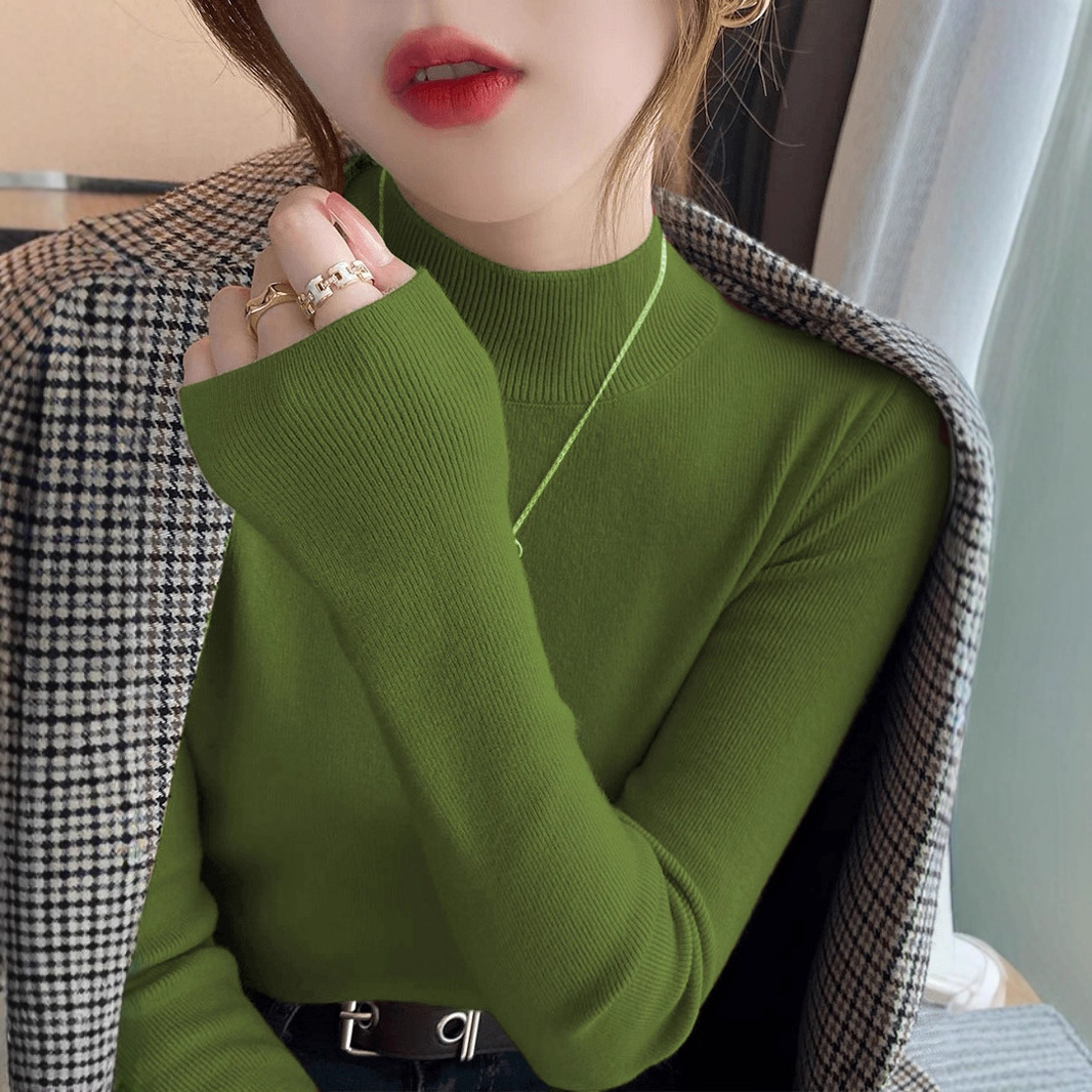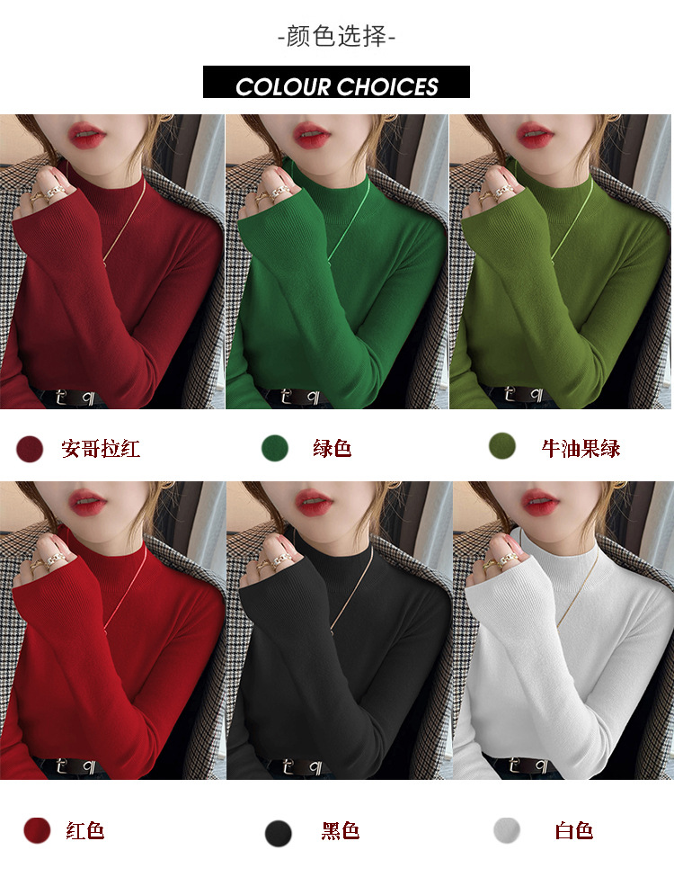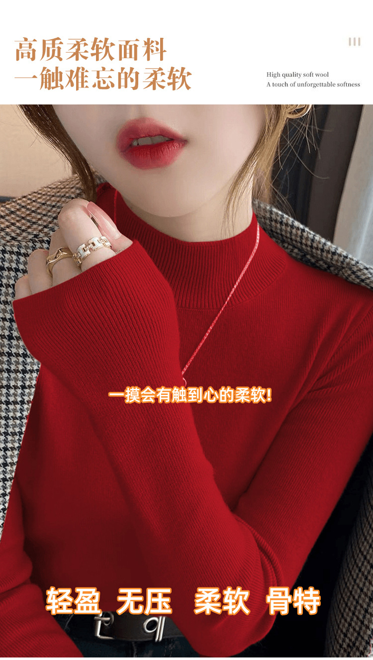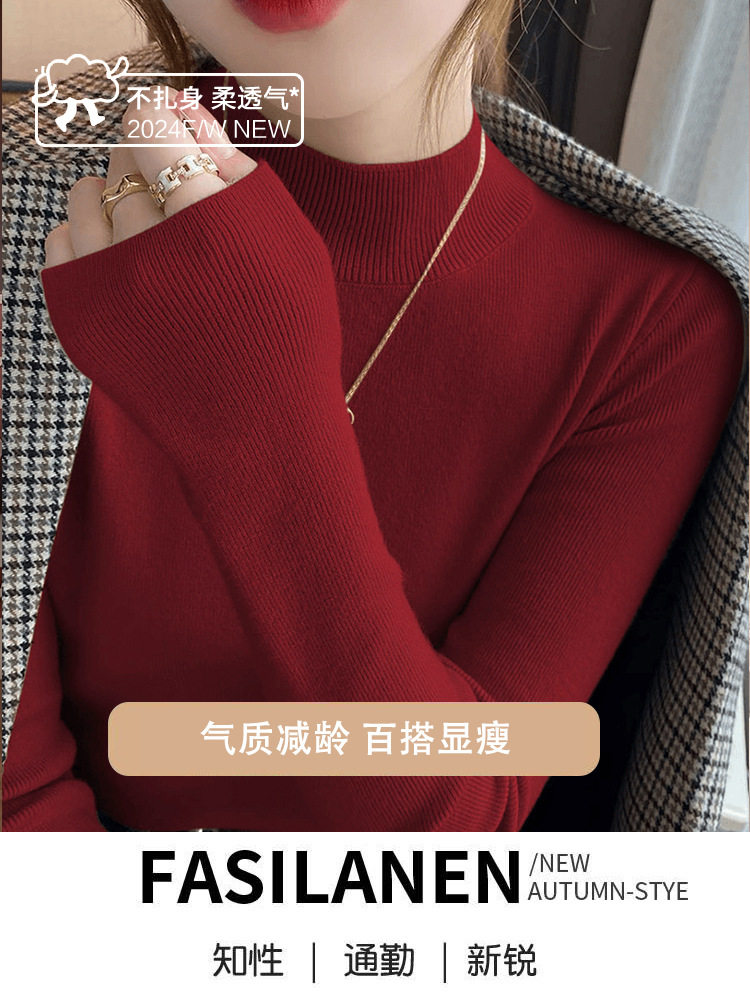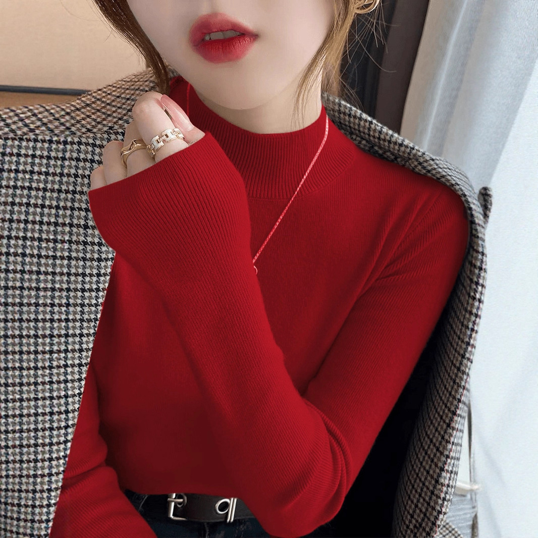 Женская рубашка из красной шерсти ангоры, внутренний слой осеннего и зимнего пальто, облегающий свитер с полувысоким воротником, стильный и стройнящий трикотаж.