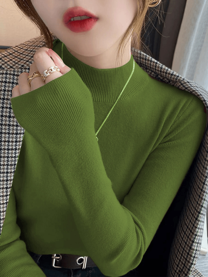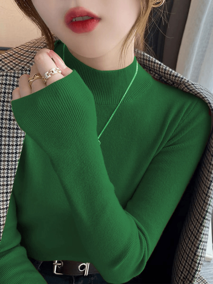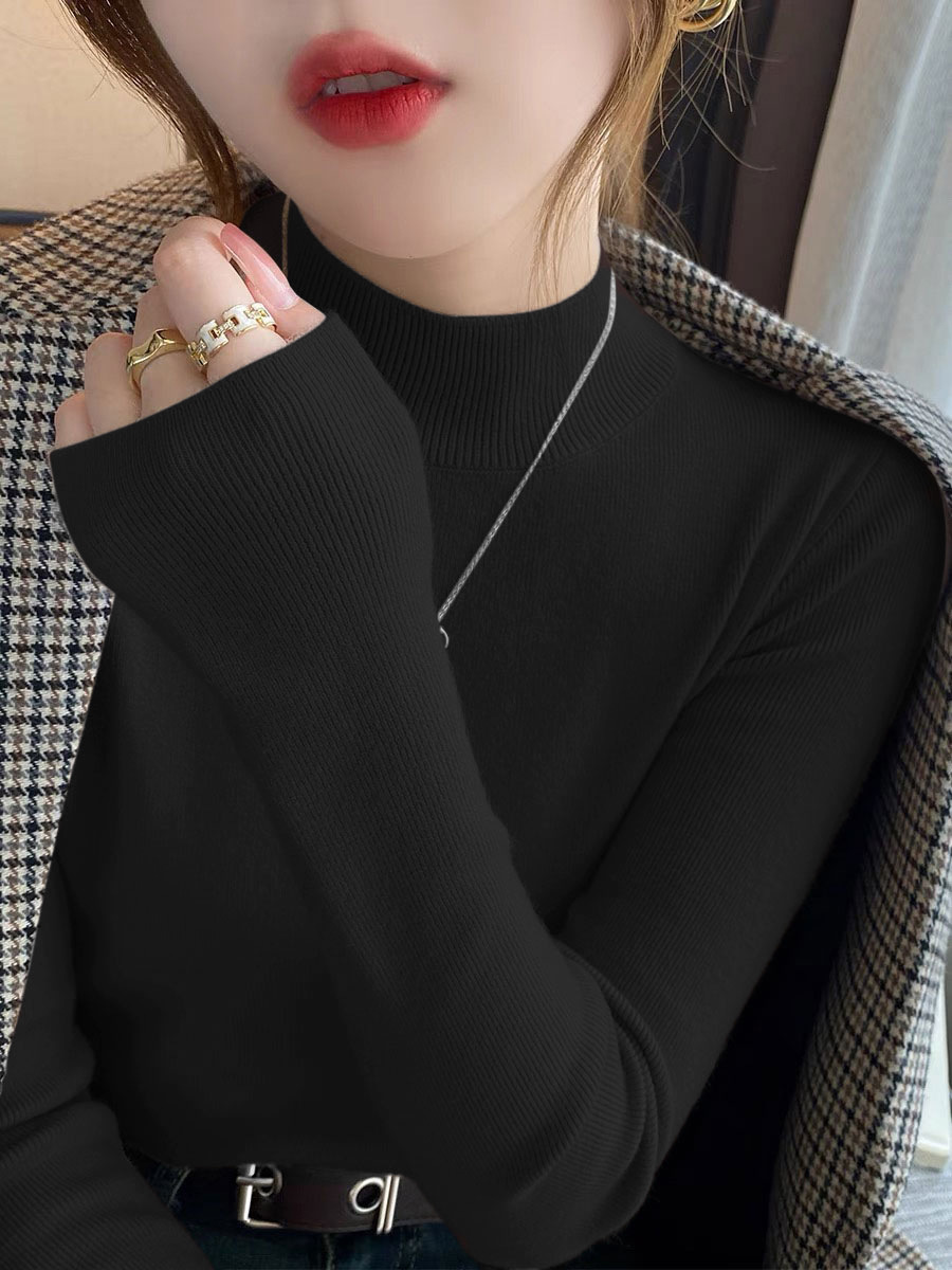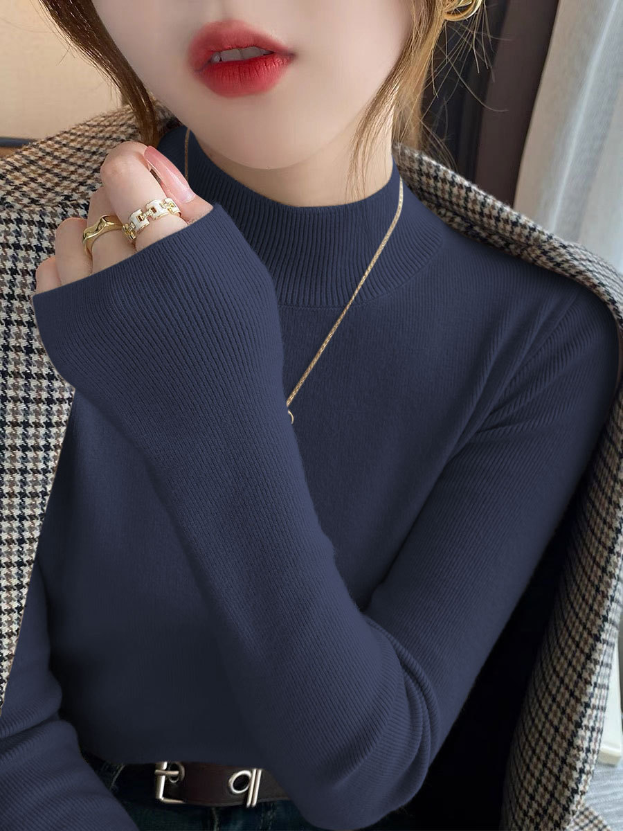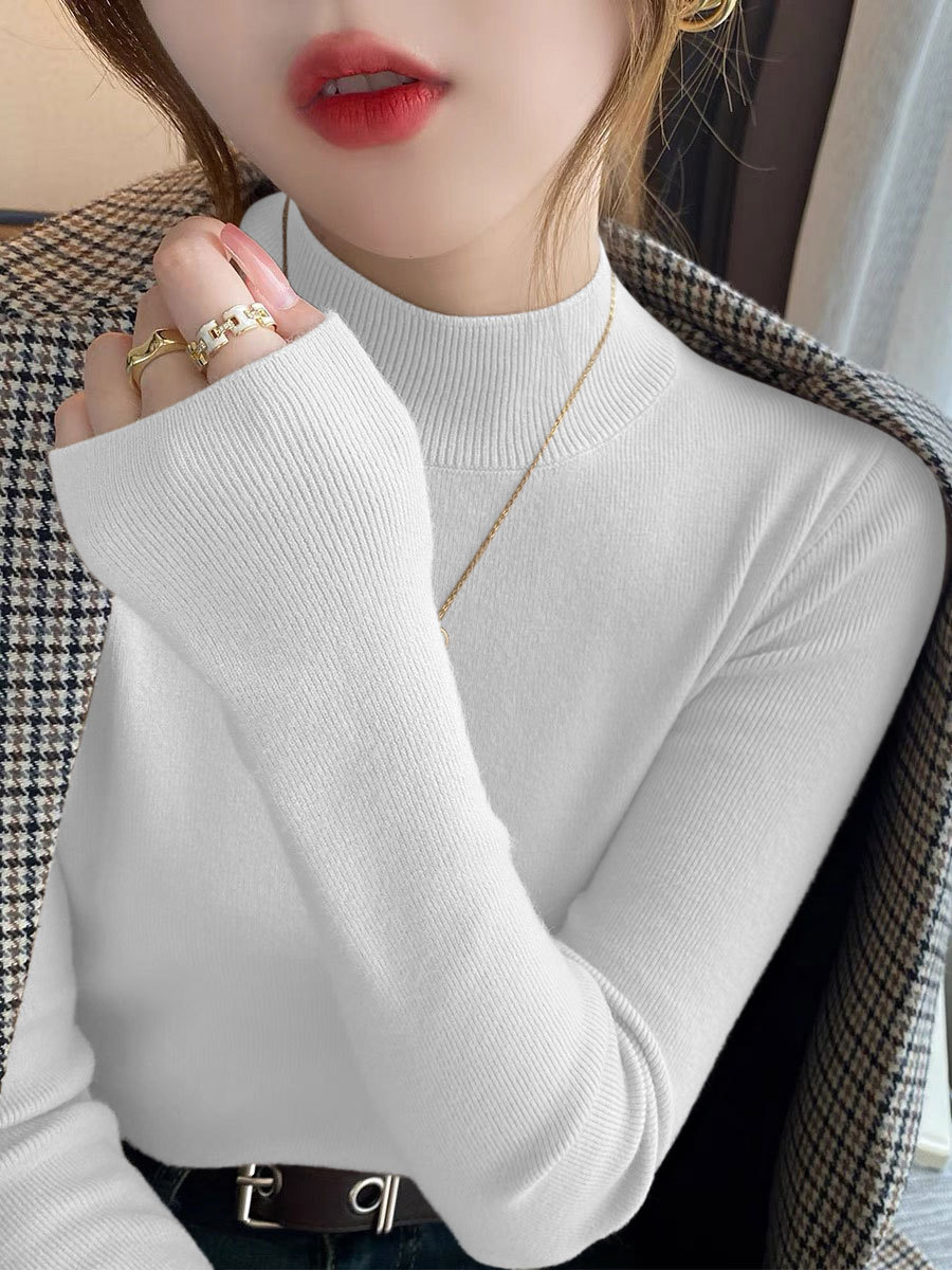 Женская рубашка из красной шерсти ангоры, внутренний слой осеннего и зимнего пальто, облегающий свитер с полувысоким воротником, стильный и стройнящий трикотаж.