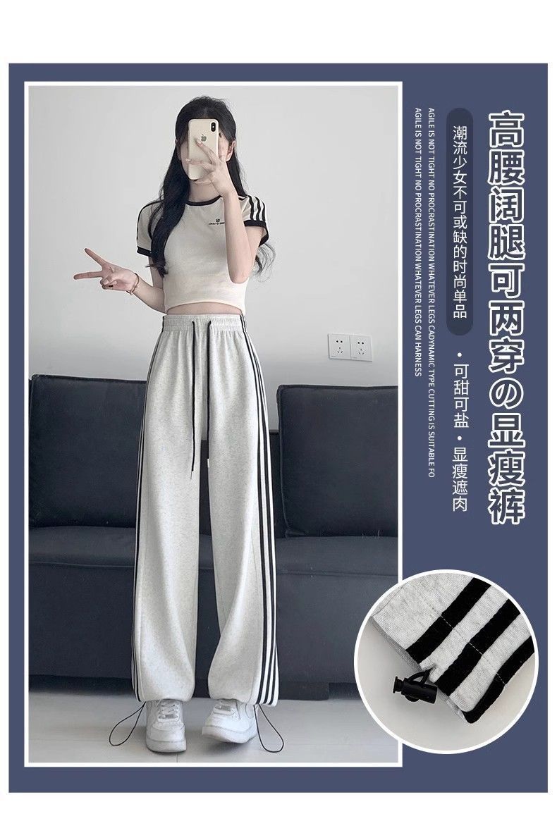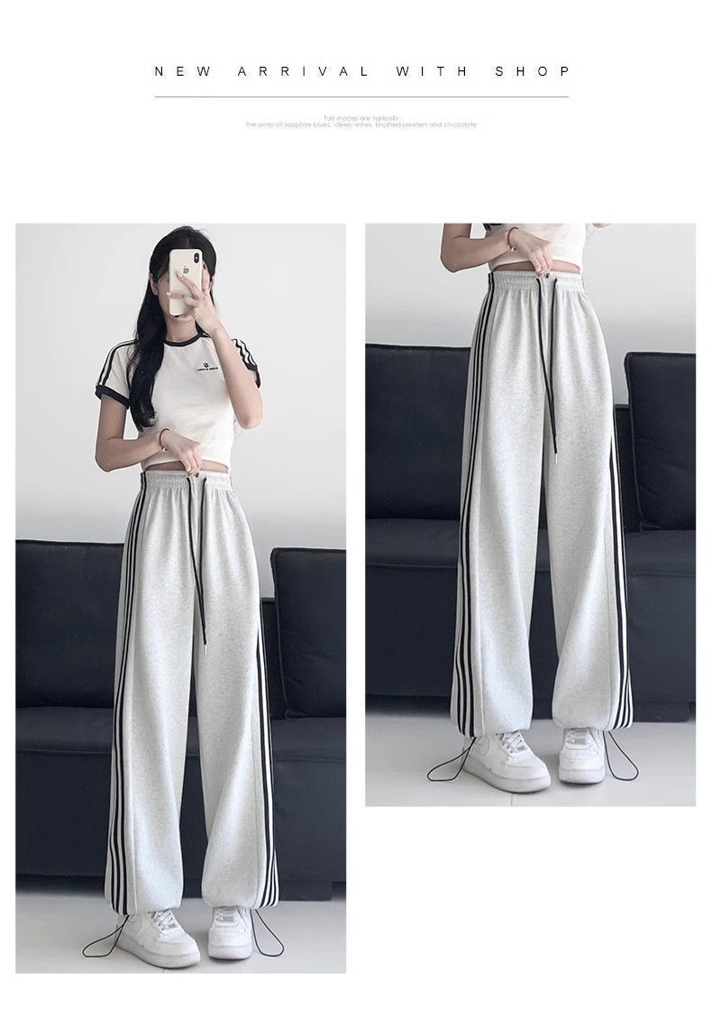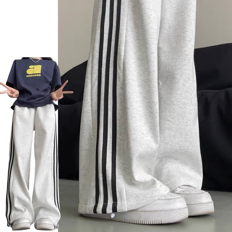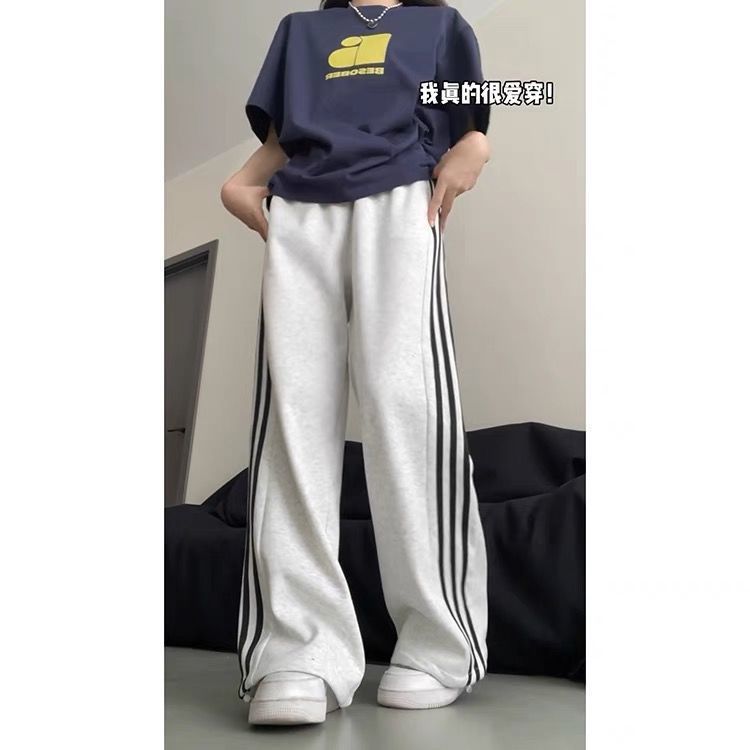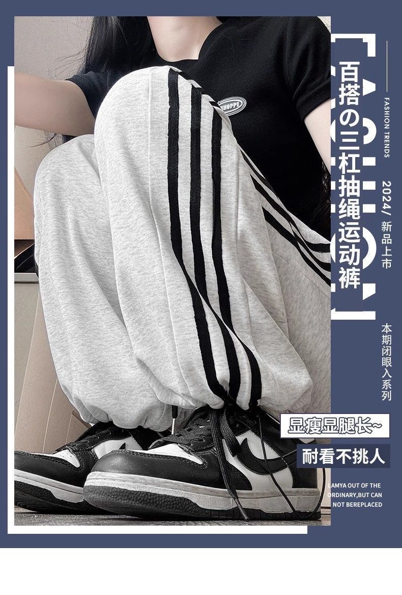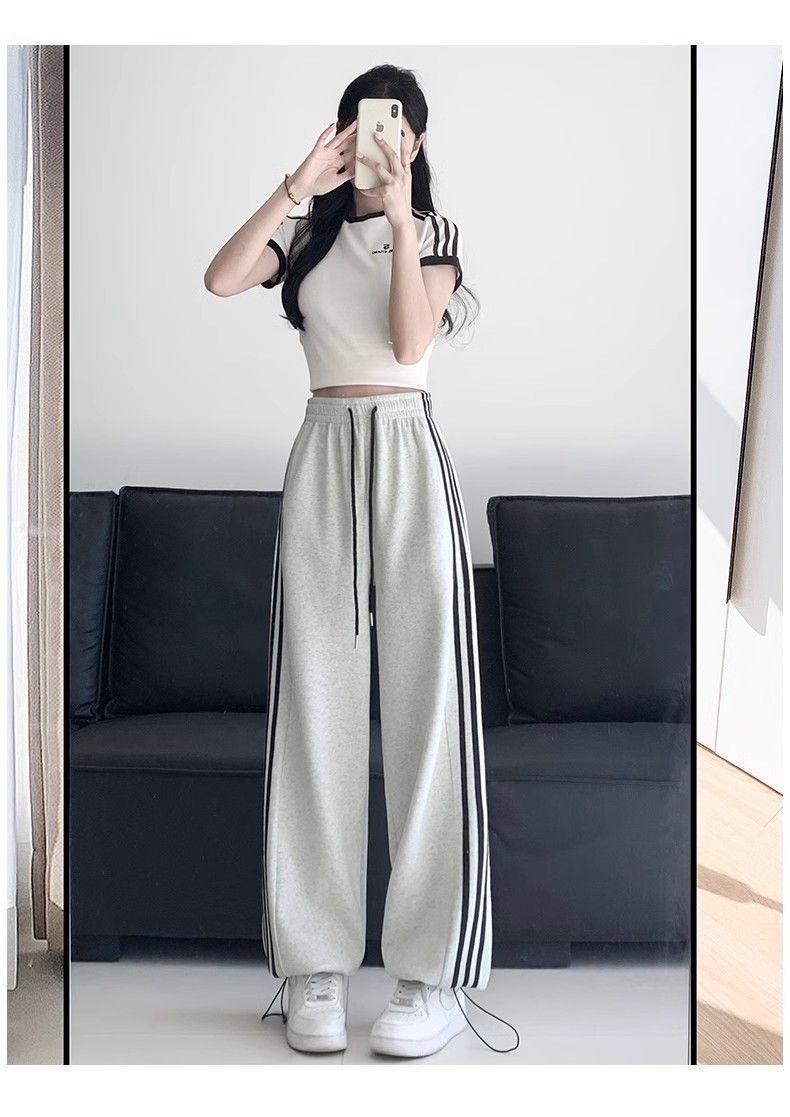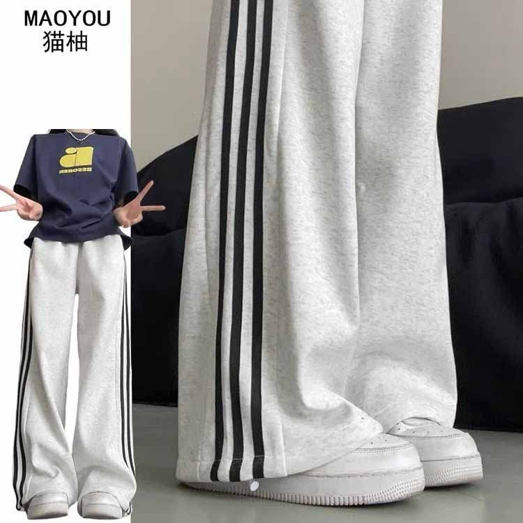 Белые и серые спортивные брюки с боковыми полосками для женщин, лето 2025, новый стиль колледжа, повседневные джоггеры, спортивные штаны.