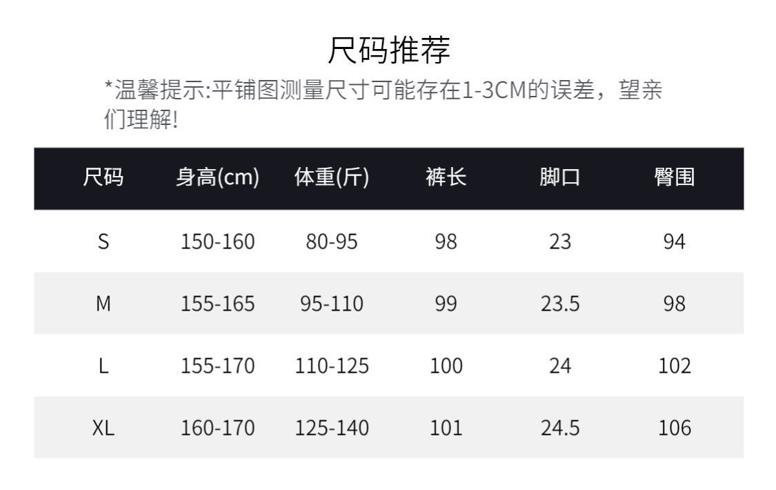 (Размер S [высокая талия и контроль живота] 40-47.5kg ); (размер М [противодействие изготовлению] 47.5-55kg); (размер L [широкие ноги] 55-62.5kg ); (размер XL [устойчивый к царапинам и износу] 62.5-70kg )