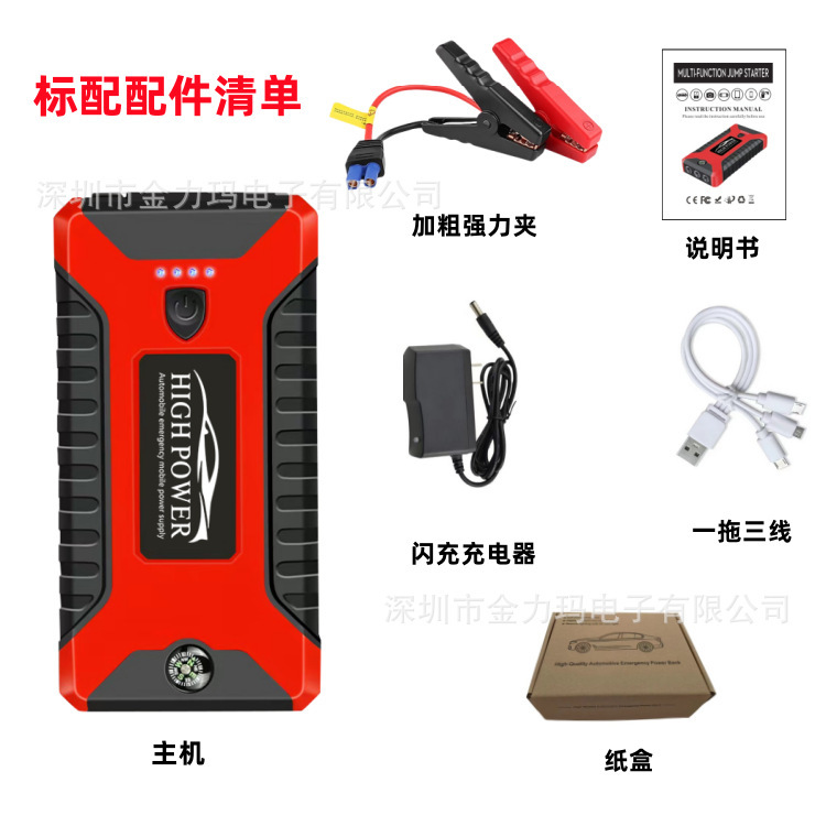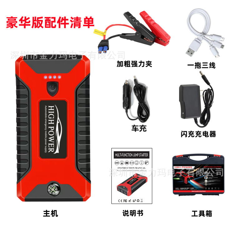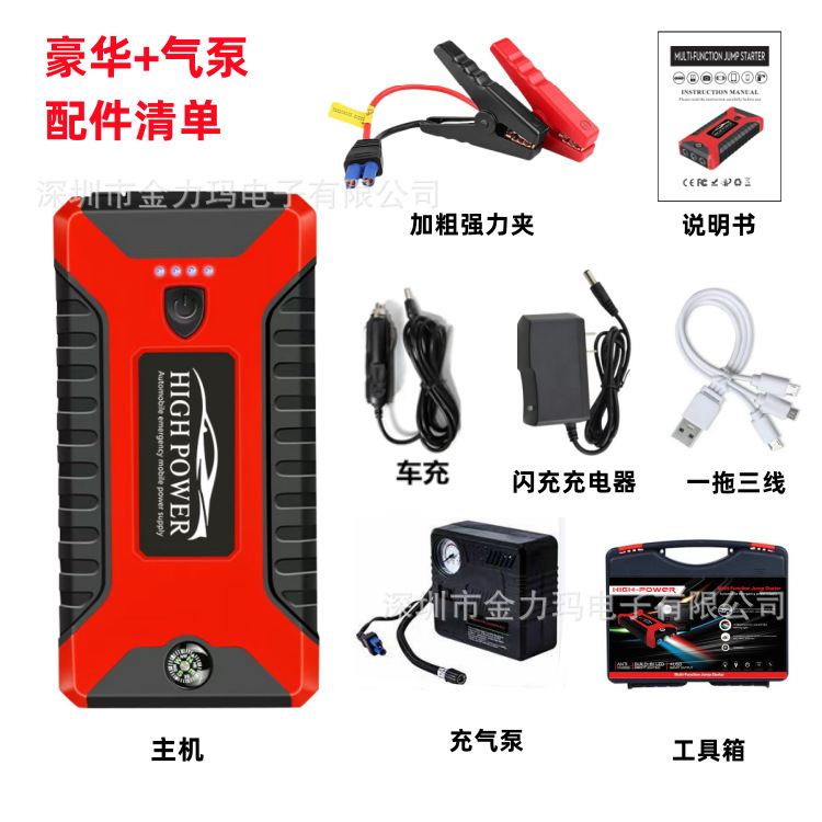Автомобильный аварийный пусковой блок питания, автомобильный аккумулятор большой емкости 12В, портативное зарядное устройство с мощным пусковым устройством.