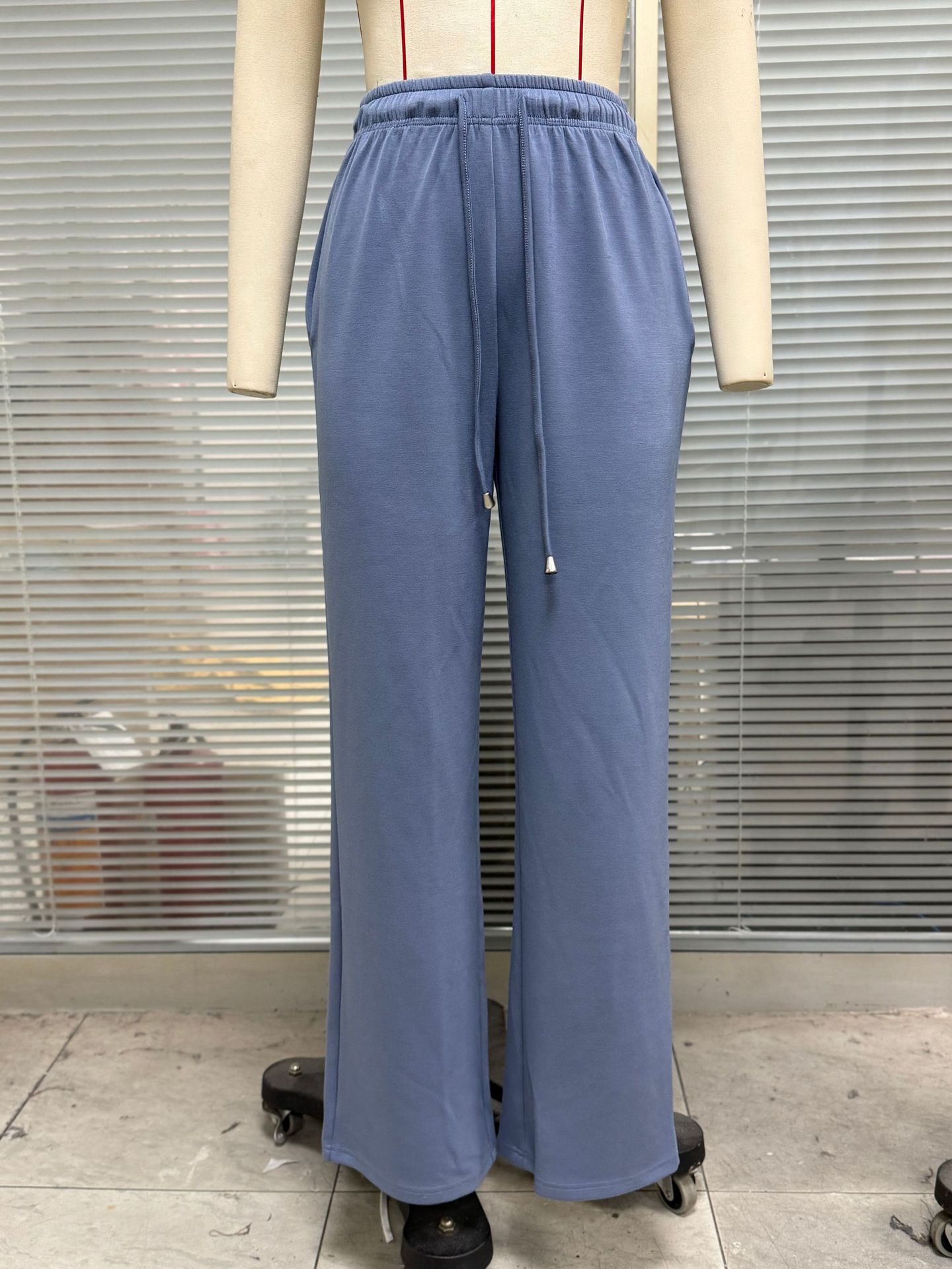 Amazon Европейская и американская трансграничная внешняя торговля 2025 осень и зима новые однотонные свободные прямые брюки с эластичной резинкой на талии и карманами для женщин