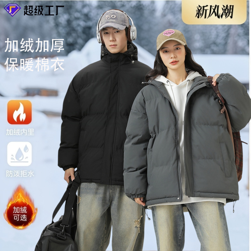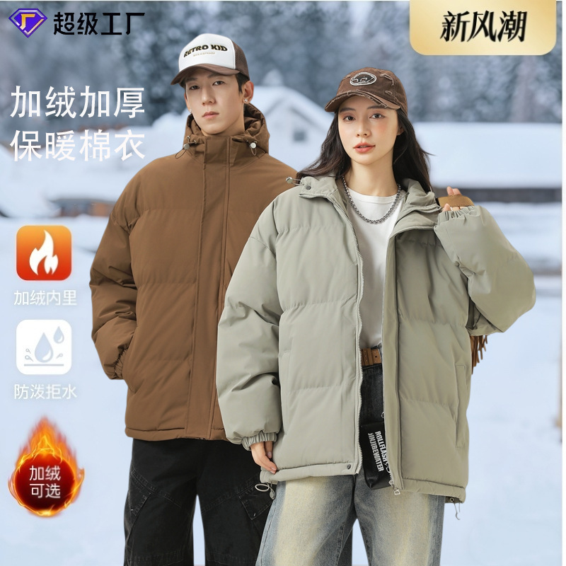 新款连帽简约保暖棉服棉衣男百搭加厚立领国潮批发秋冬宽松面包