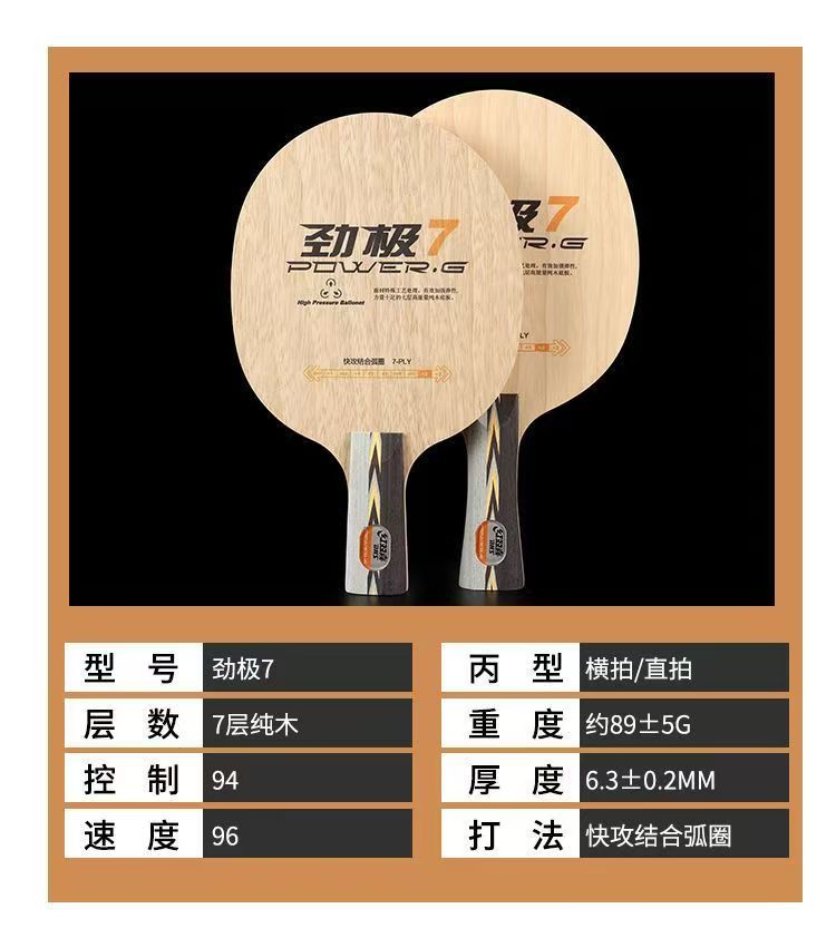 劲极7乒乓球拍7层纯木乒乓球底板控制型新手入门型底板