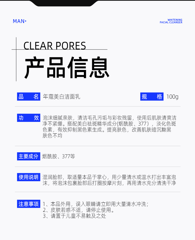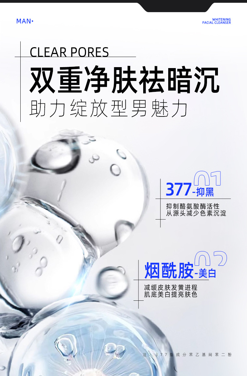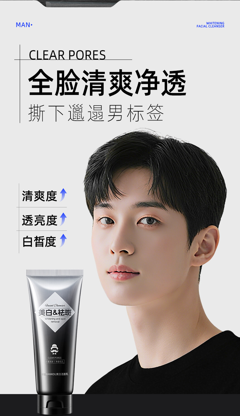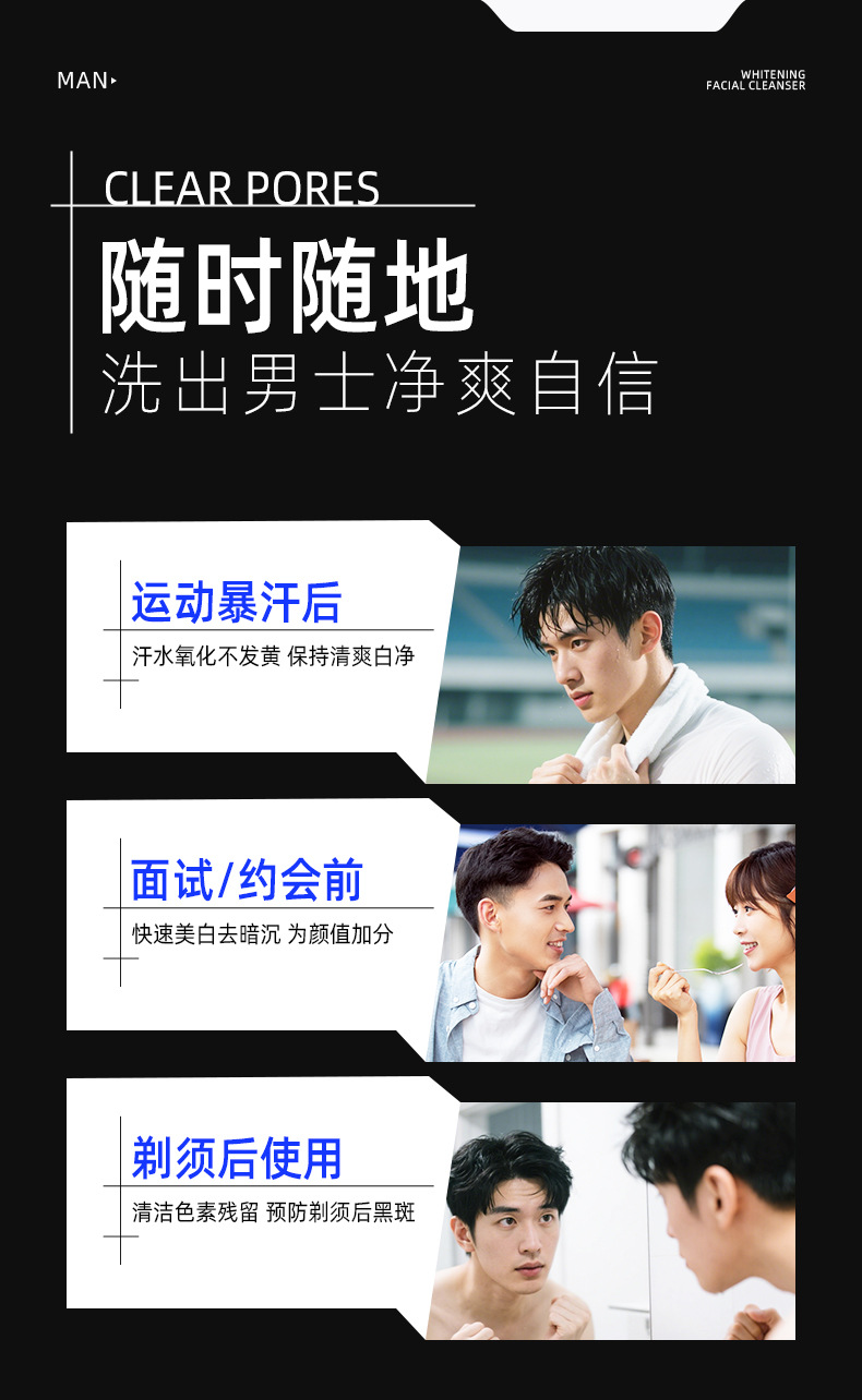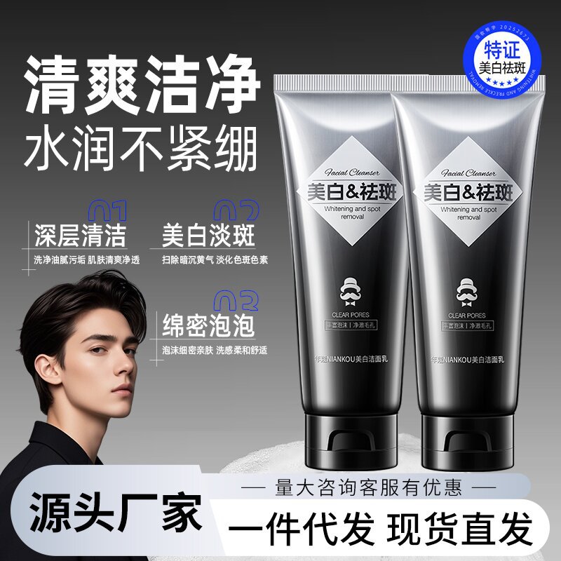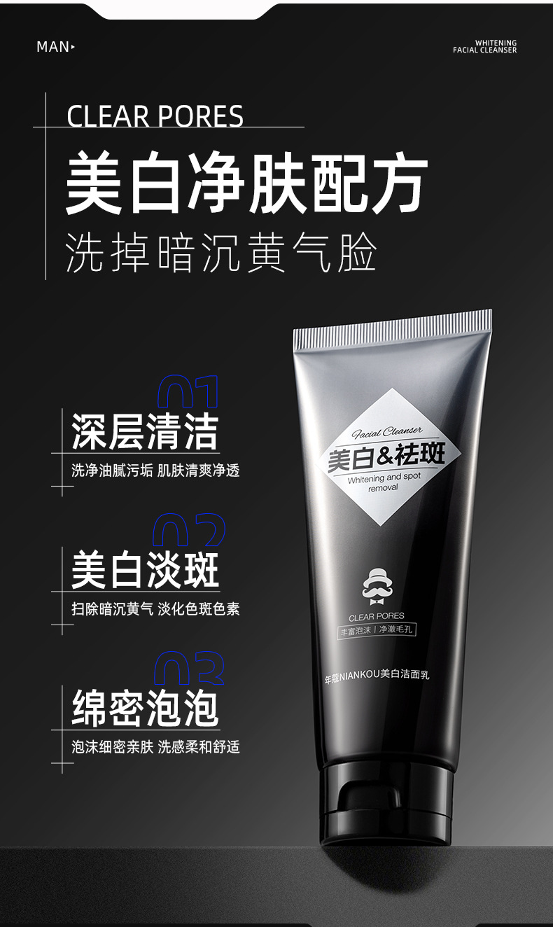 Мужской очищающий гель для лица Niankou с ниацинамидом: отбеливание, осветление кожи, удаление черных точек, контроль жирности