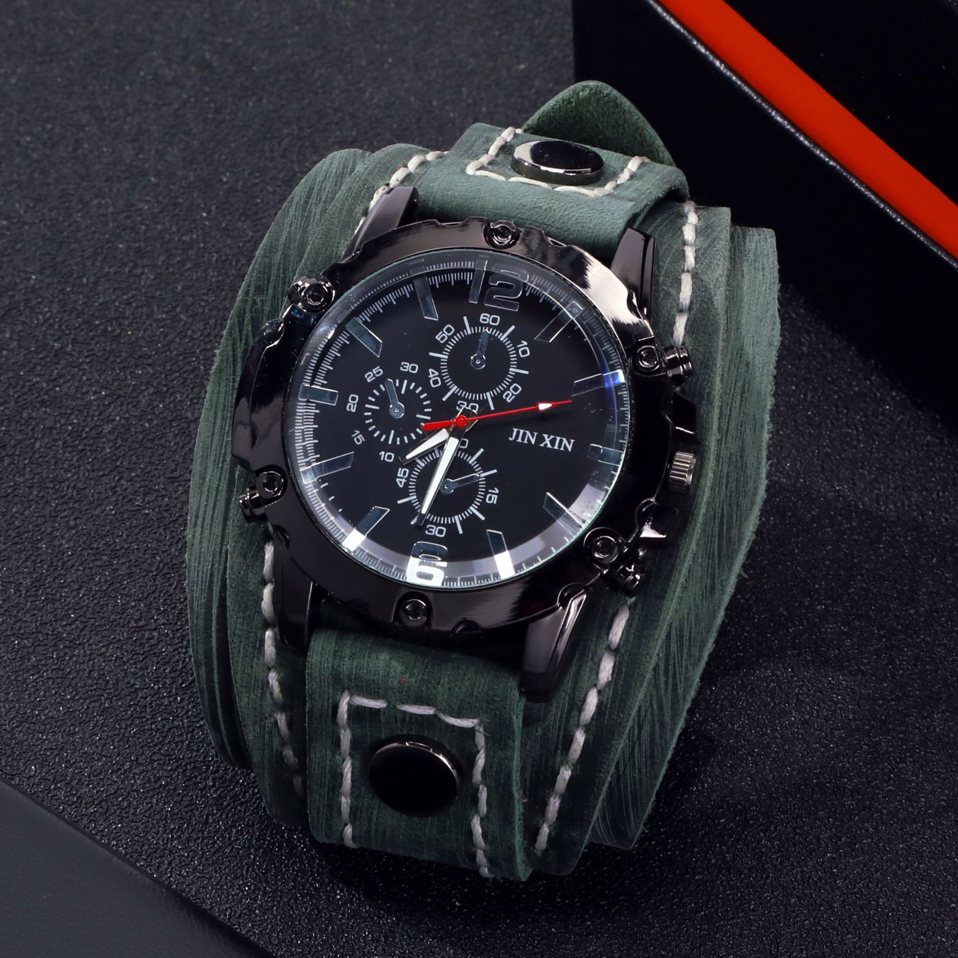 Мужские часы из натуральной кожи, хронограф с тремя стрелками, часы из сплава, мужские кварцевые часы, персонализированные часы в европейском и американском стиле.