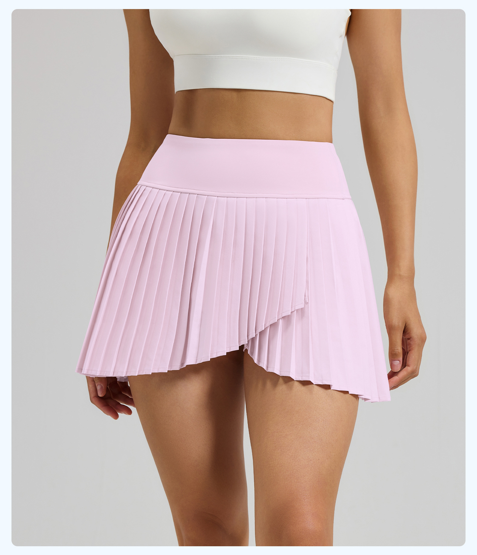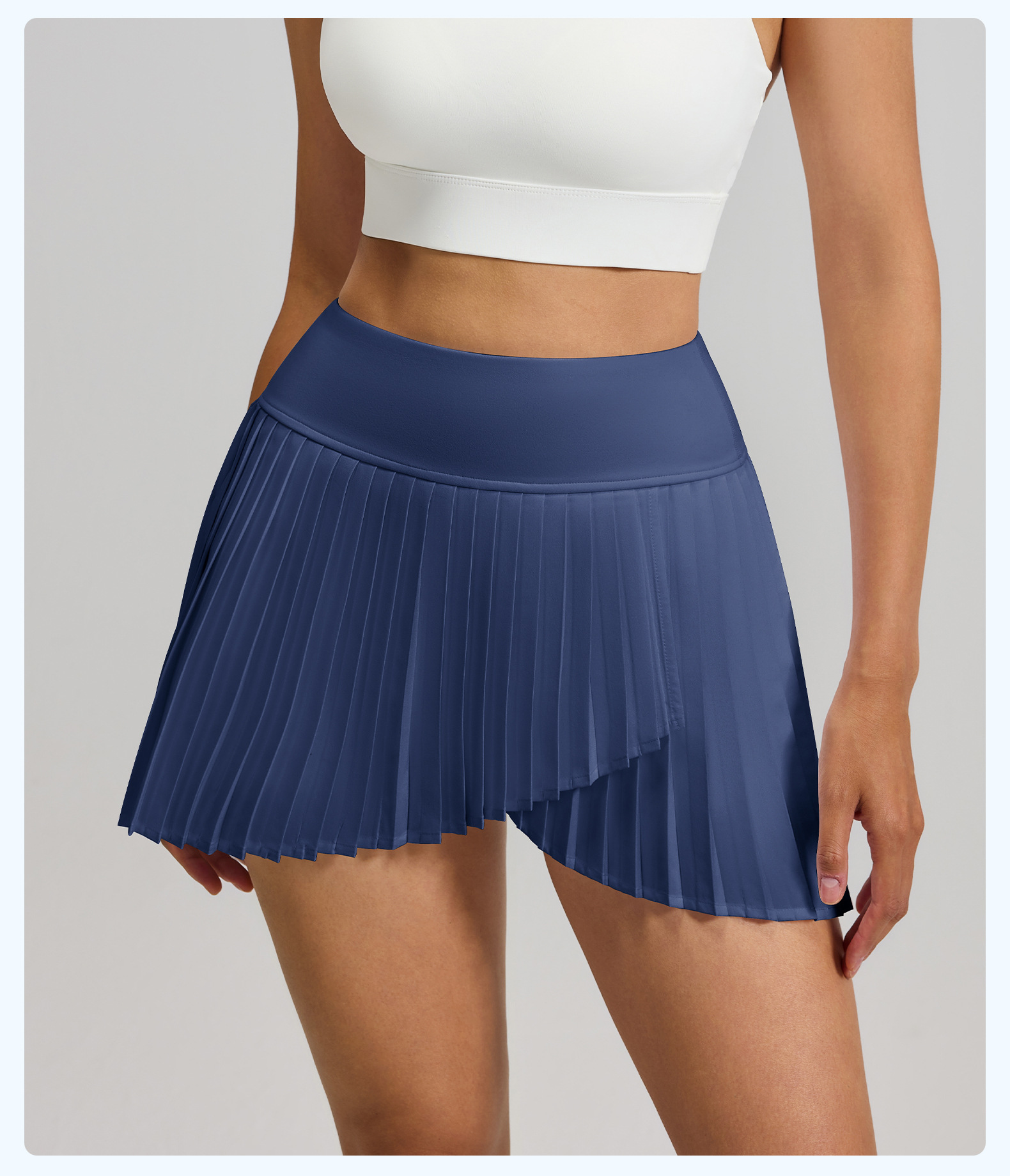Juyitang спортивная короткая юбка для летних каникул, двухсекционная плиссированная юбка с разрезом, женская теннисная юбка для фитнеса, йоги с карманами и защитой от воздействия