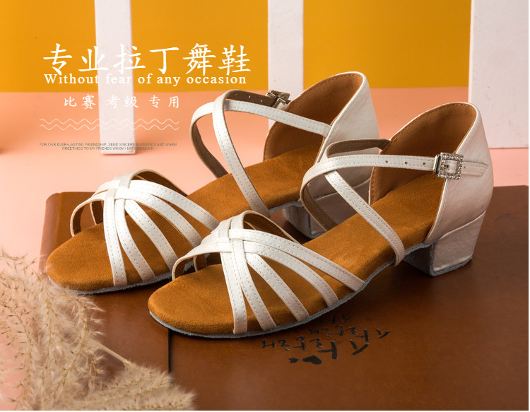 ✅ Детские туфли для латиноамериканских танцев для девочек, профессиональные белые латинские туфли для детей, новая модель с мягкой подошвой для танцев летом.