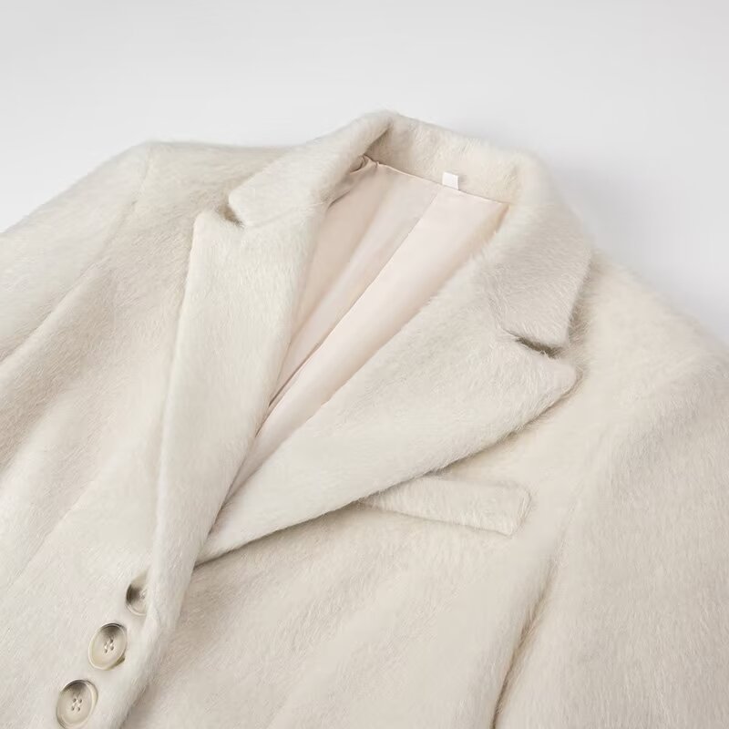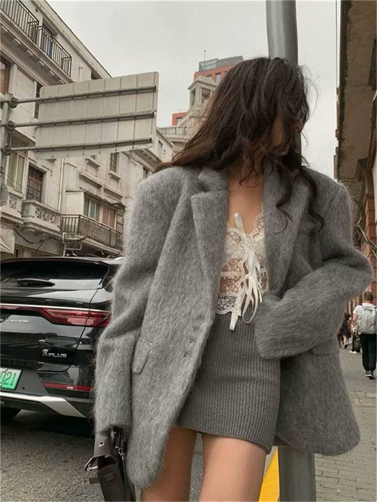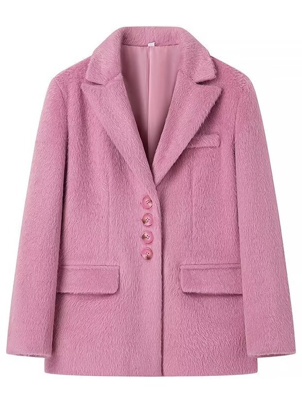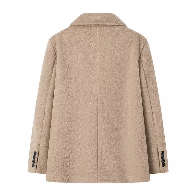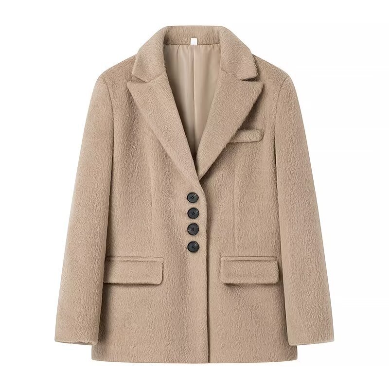 Женский элегантный пальто-костюм из шерсти с отложным воротником, свободного кроя, на весну-осень 2025 года, с длинными рукавами, однобортное, для трансграничной торговли.