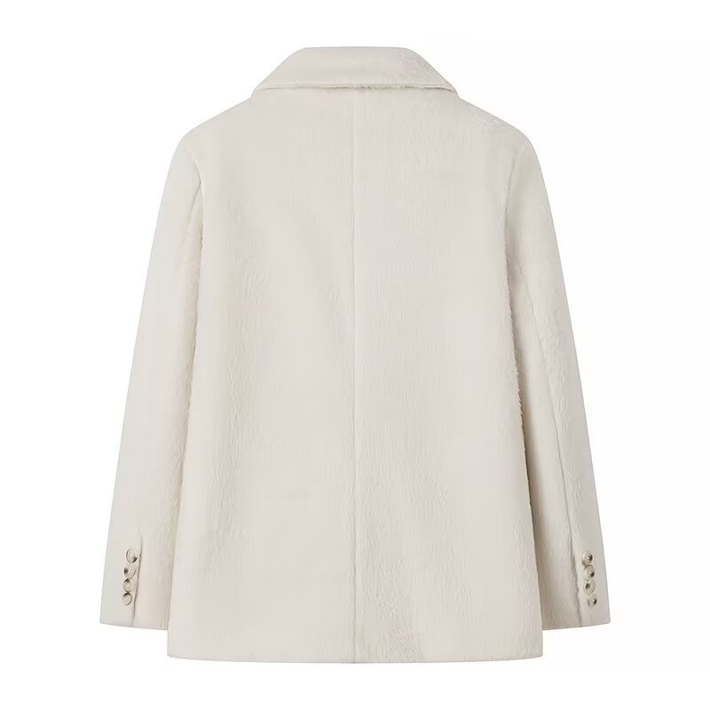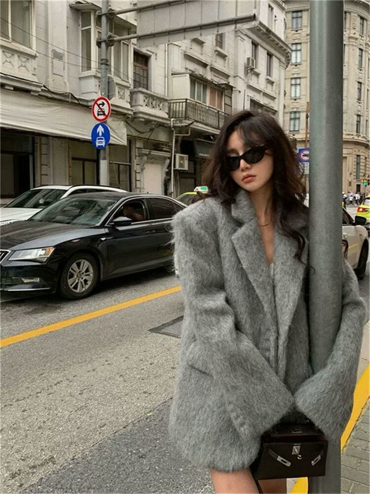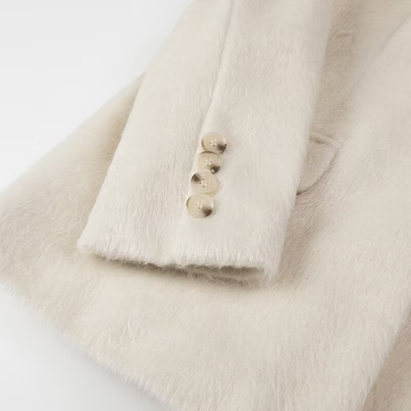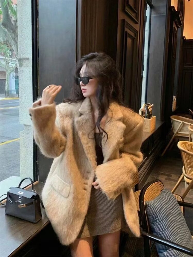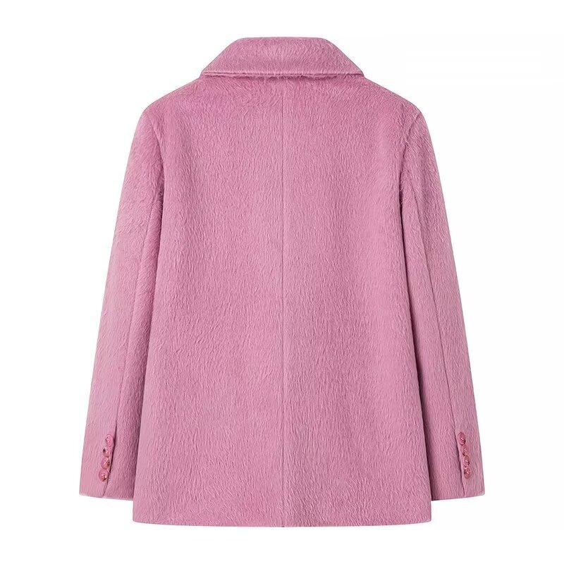 Женский элегантный пальто-костюм из шерсти с отложным воротником, свободного кроя, на весну-осень 2025 года, с длинными рукавами, однобортное, для трансграничной торговли.