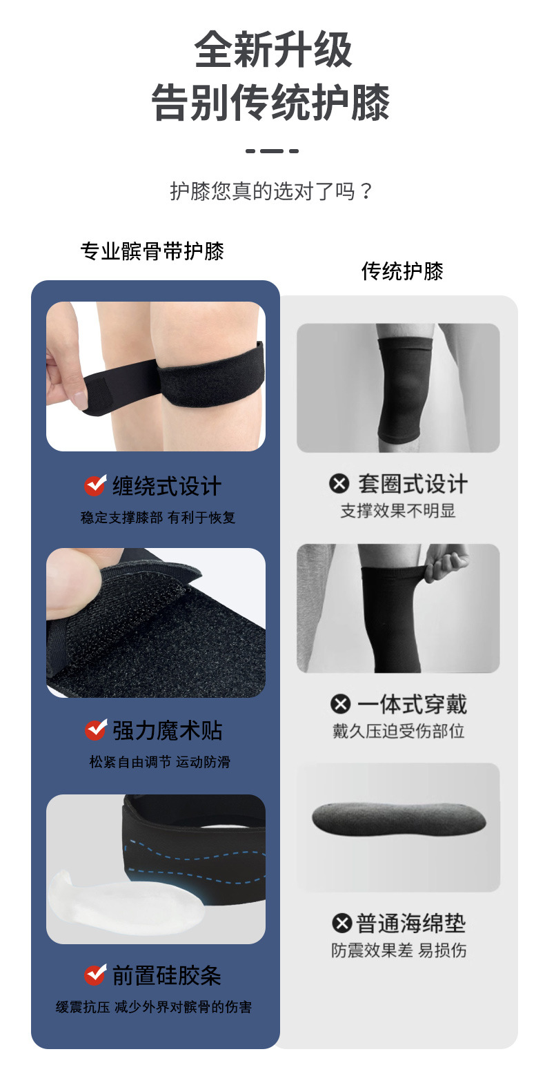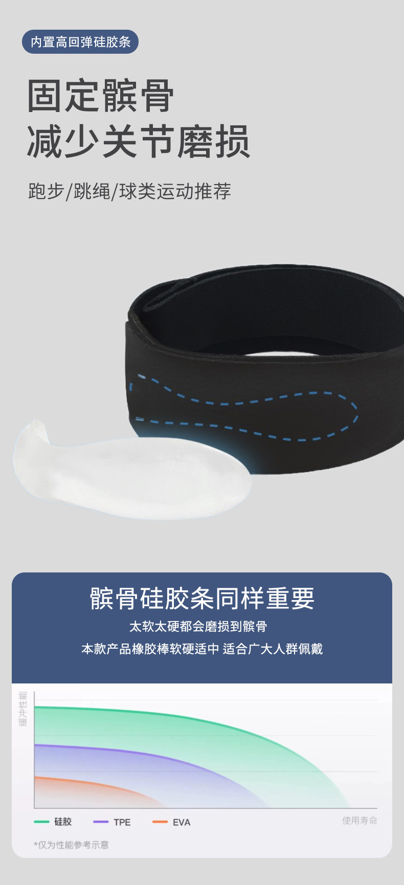 Наколенник для активного отдыха, альпинизма и тенниса с встроенной силиконовой амортизацией и регулируемой компрессией для защиты надколенника.