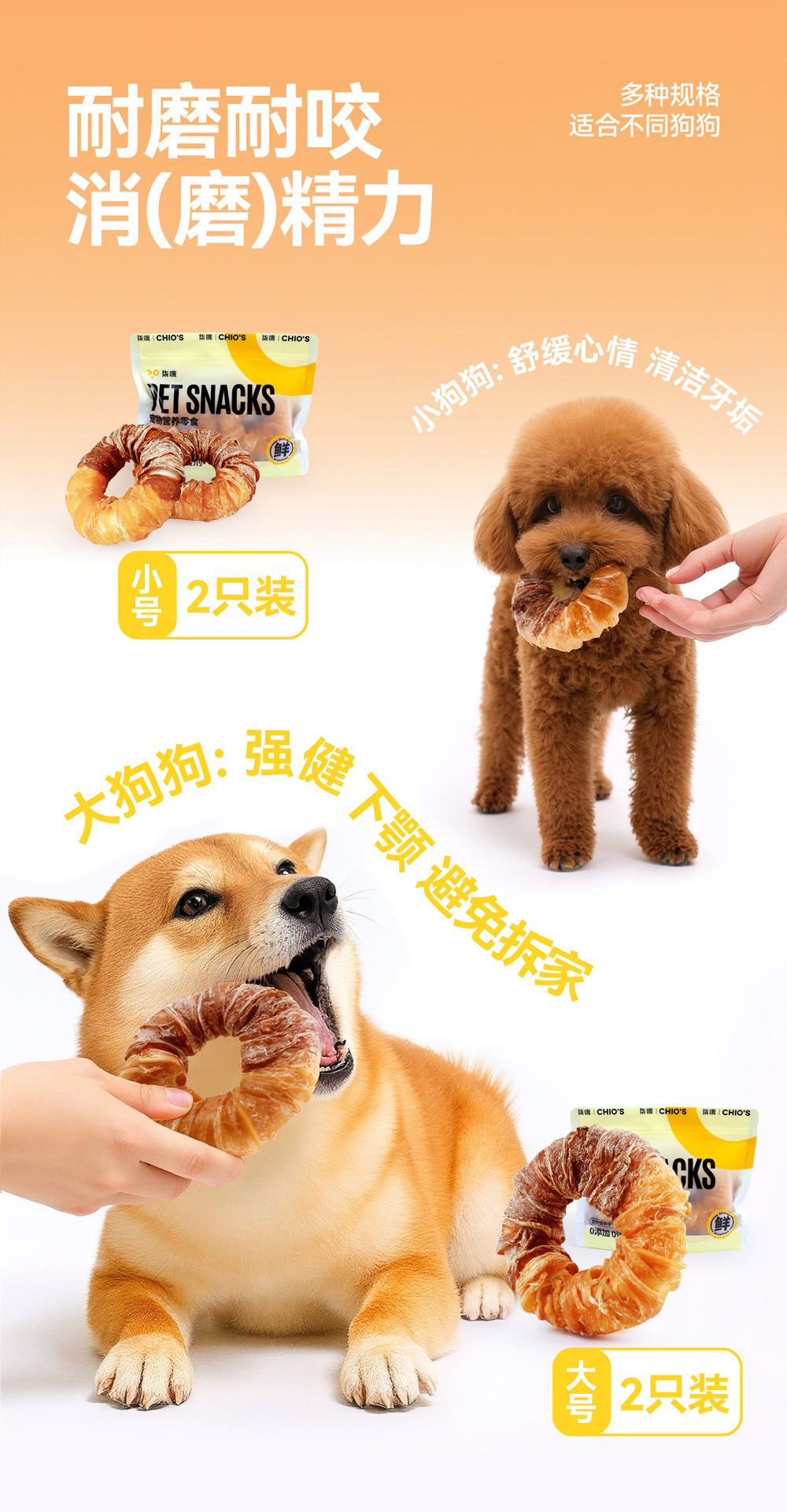 Кольцо из кожи куриных моляров [7-8см, 2 шт.]; Кольцо из кожи коренных куриных зубов [9-10см 2шт]; Кольцо из молярной кожи из утиного мяса [7-8см 2шт]; Кольцо из кожи коренных зубов из утиного мяса [9-10см 2шт]; Кожаное кольцо с двойными зубцами из курицы и утки [9-10см 2шт]