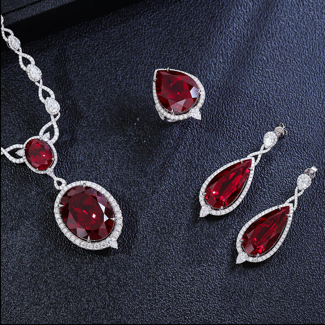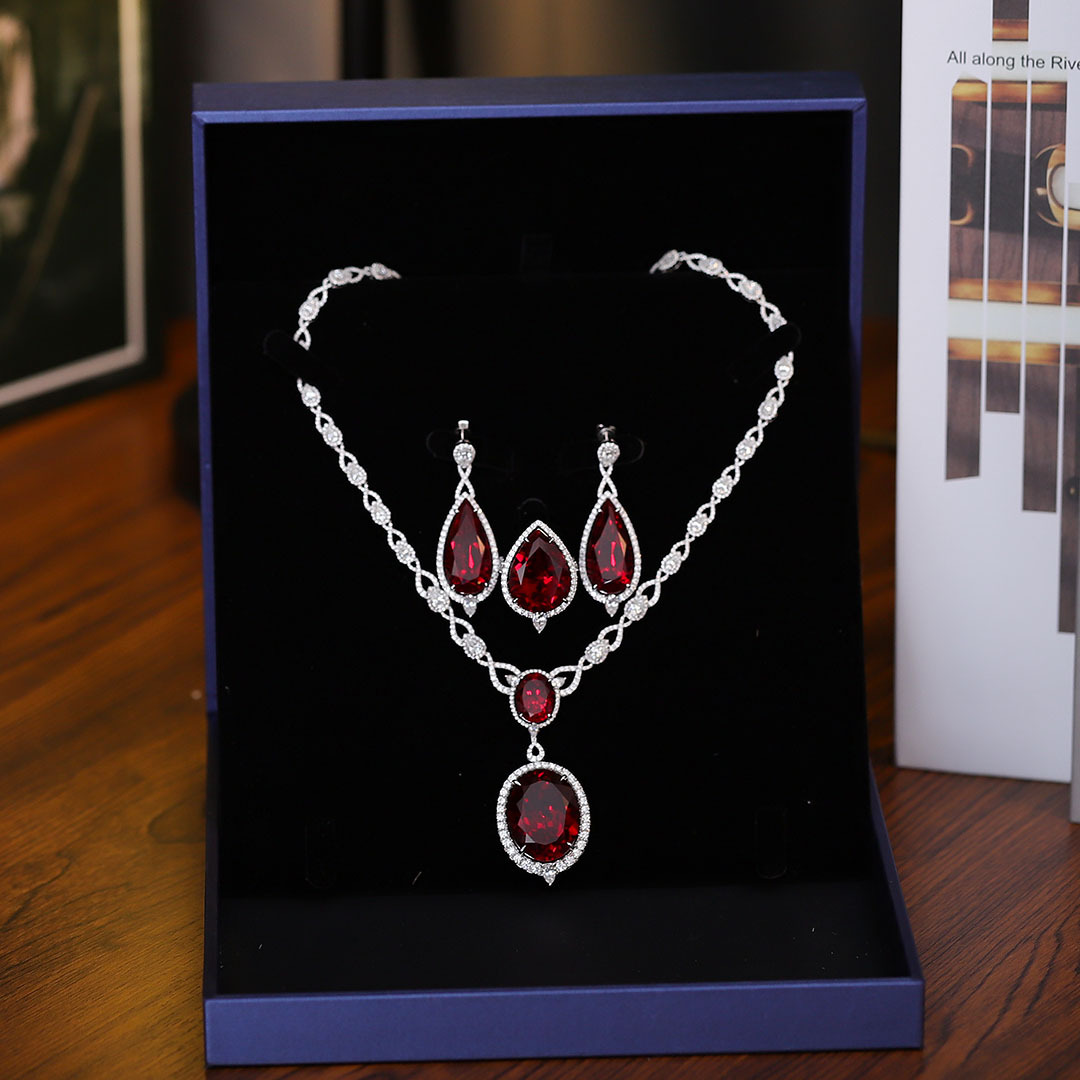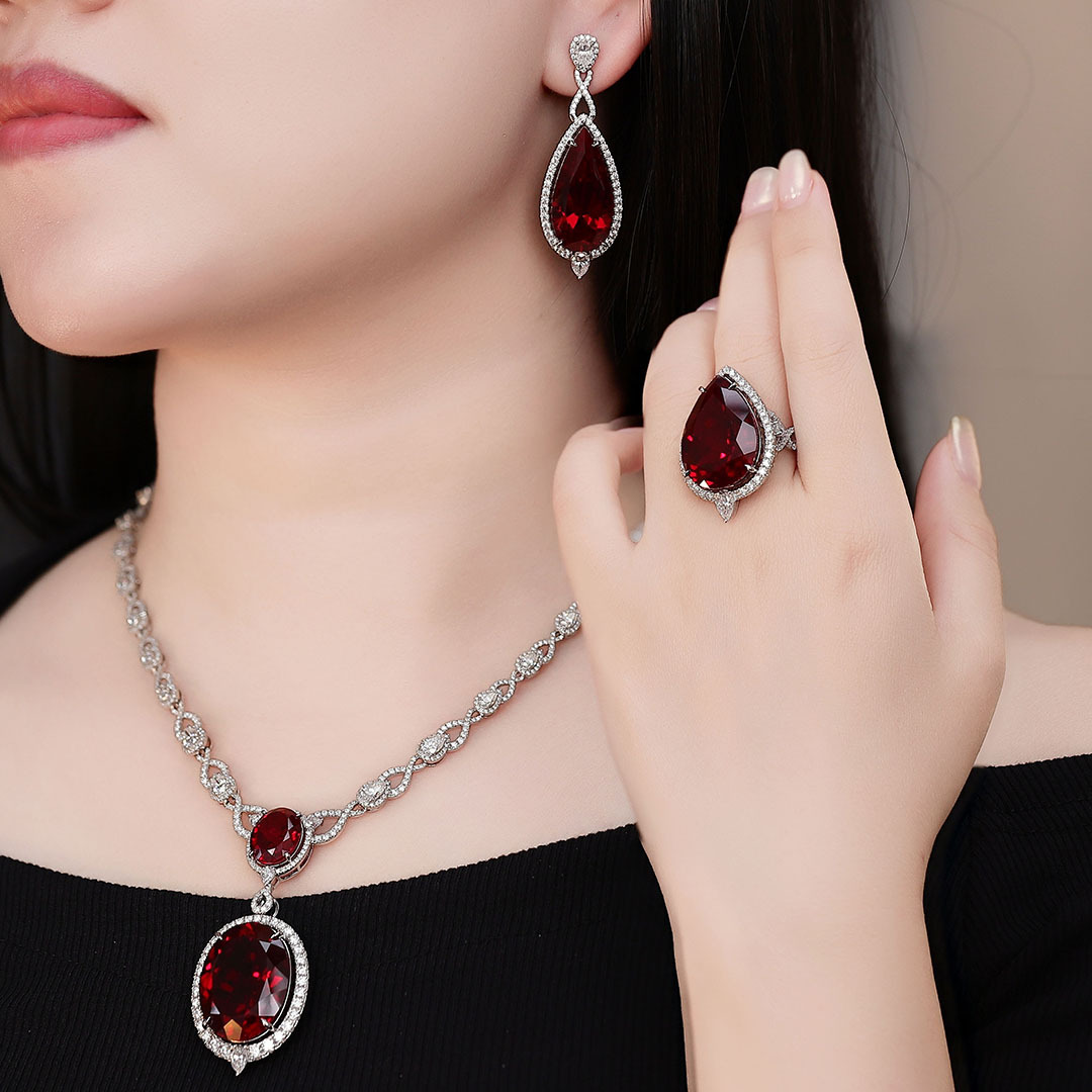 Новый комплект украшений для свадебного банкета: колье с драгоценным камнем цвета «голубиная кровь», легкая роскошь, серебро S925, сверкающие французские ювелирные изделия