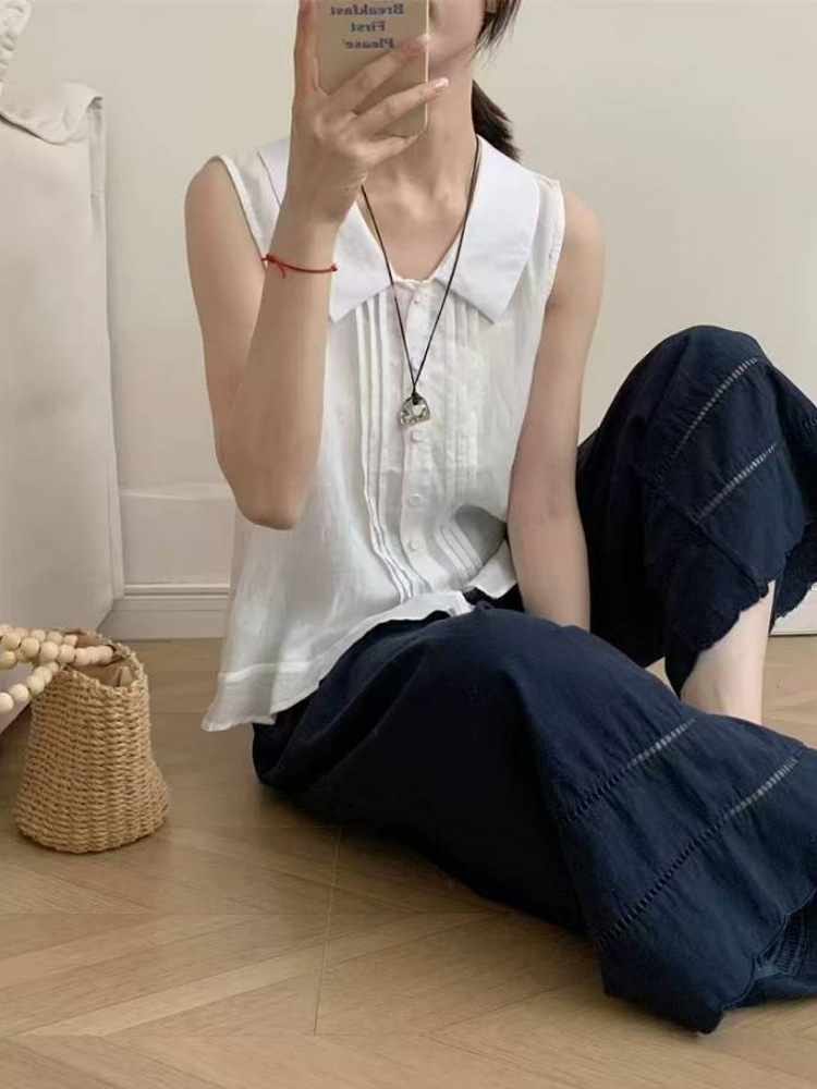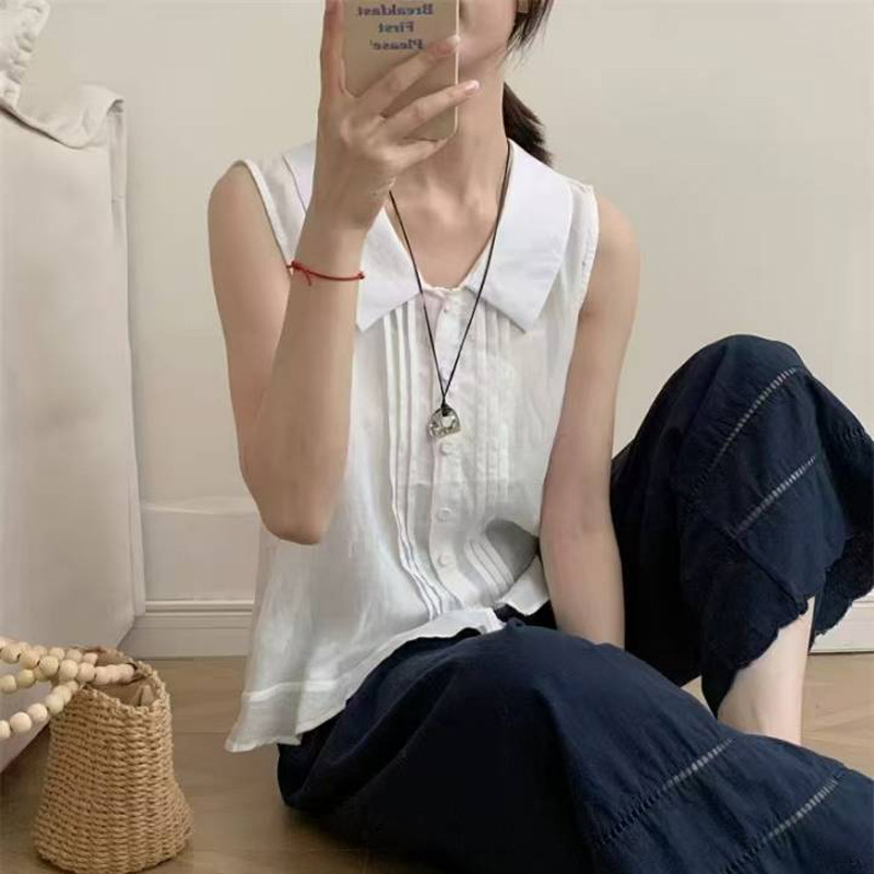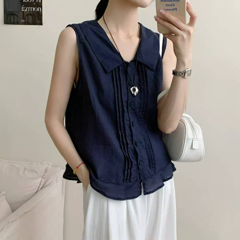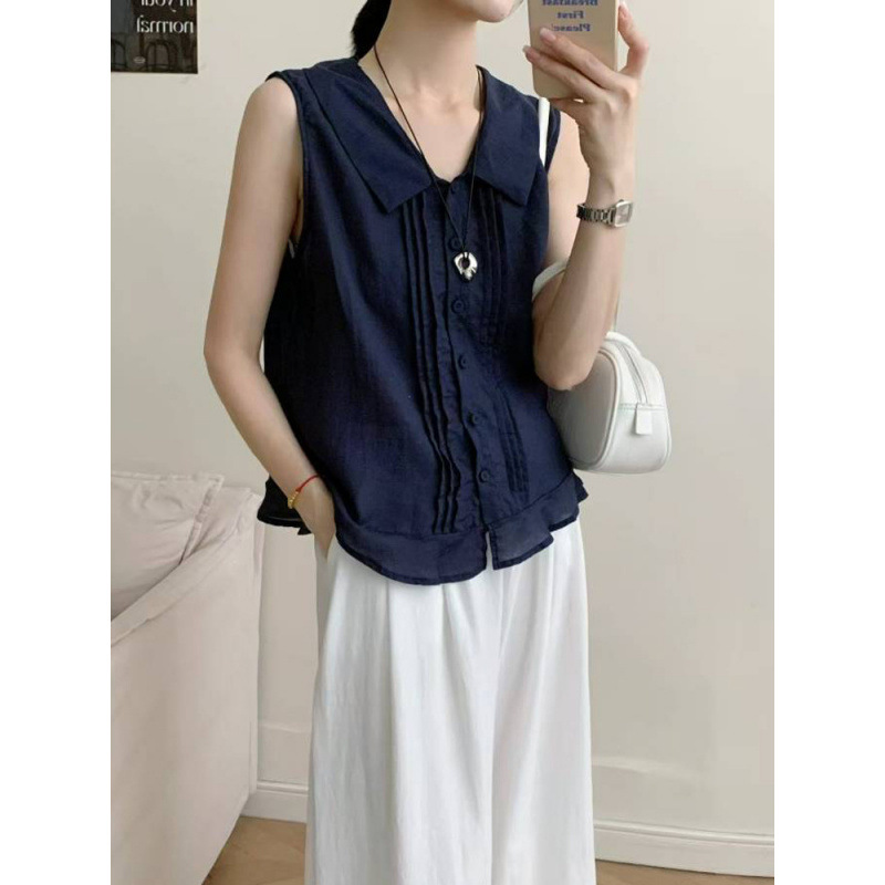 Льняная безрукавка в французском стиле для женщин, лето 2025, новая корейская универсальная, омолаживающая, модная повседневная майка.