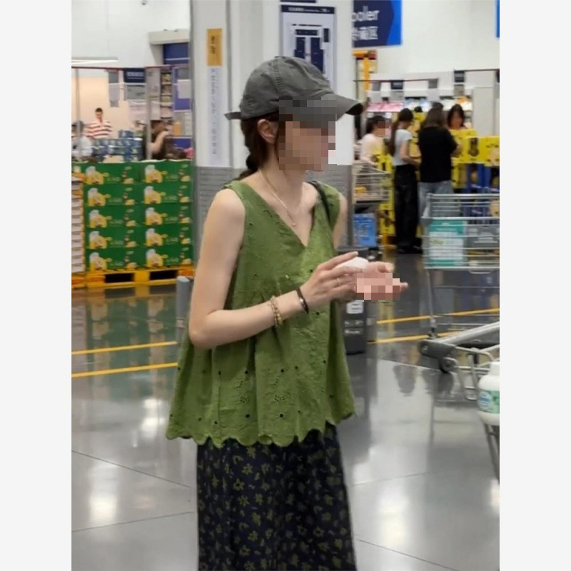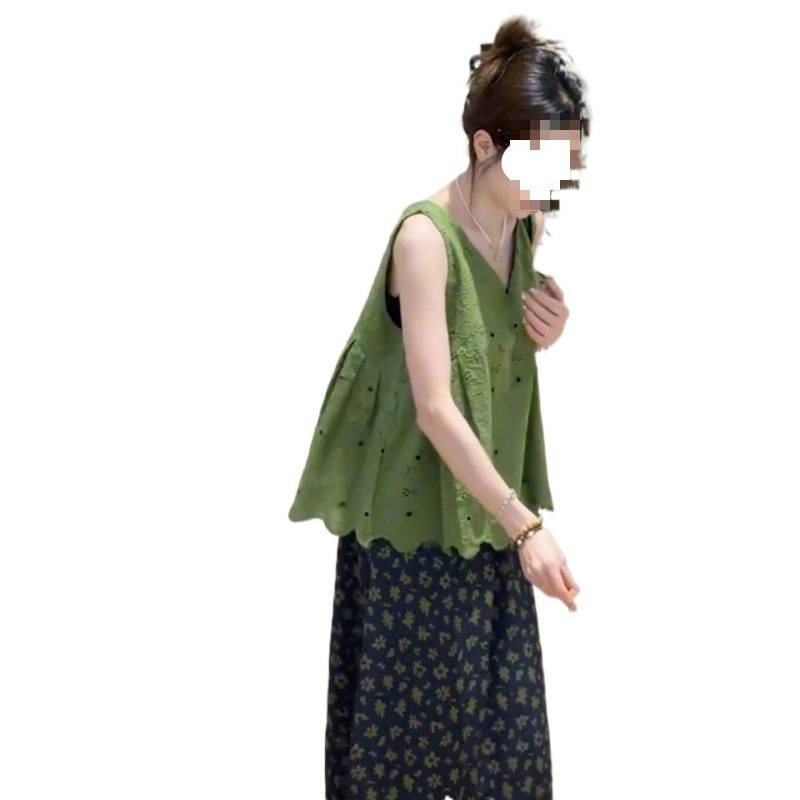 Дизайнерская вязаная крючком кружевная безрукавка для женщин, лето 2025, новая свободная и универсальная майка с V-образным вырезом