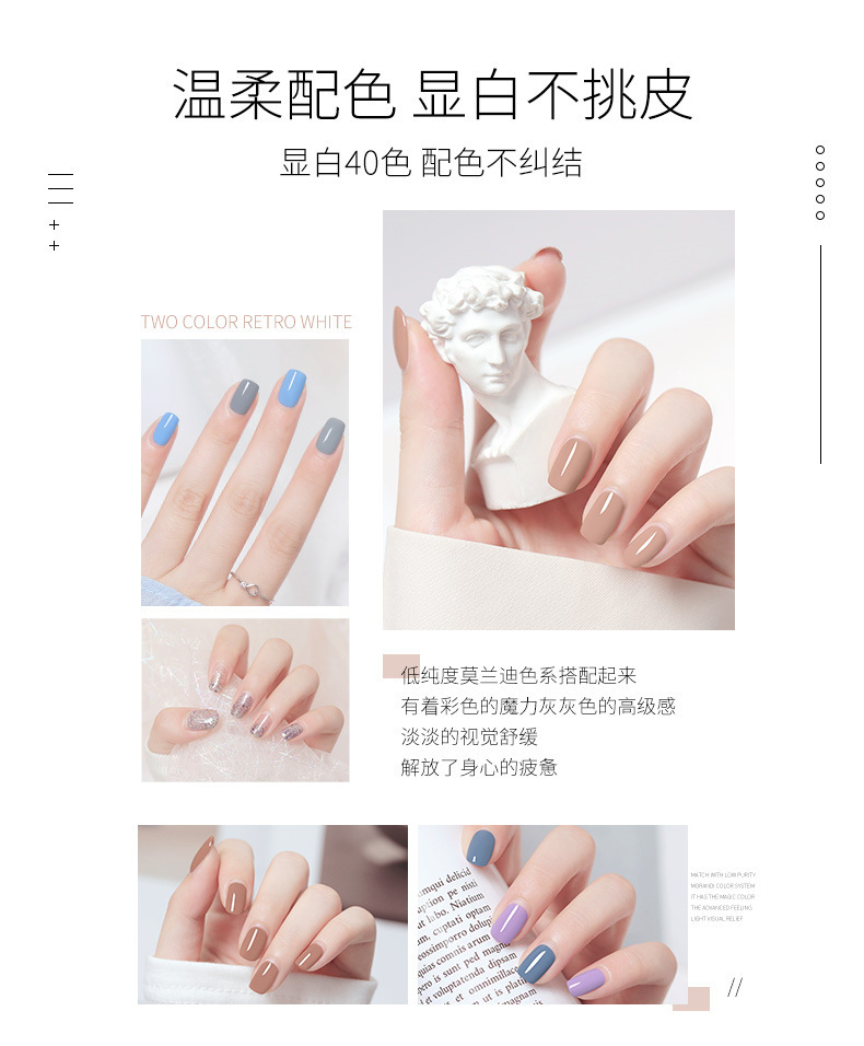 01#Прозрачный лак; 02#пианино черное; 03#Классический чистый белый; 04#Светло-молочно-коричневый; 05#винно-красный; 06#Мерцающий светло-розовый; 07#глазированное серебро; 08#Тихий лотос фиолетовый; 09#девчачий фиолетовый; 10#Достойная фасолевая паста; 11#глубоководный синий; 12#Перламутровое винно-красное; 13#Цвет чая с молоком; 14#Кофейный цвет бобовой пасты; 15#Перламутровая бобовая паста; 16#кристалл вспышка серебро; 17#Модный серый; 18#глубокий винно-красный; 19#Блестящая персиковая звезда; 20#Моранди фиолетовый; 21#фасолевая паста розовая; 22#Матча зеленый; 23#Чай с молоком телесного цвета; 24#алмазные конфеты; 25#песочно-красный; 26#Активный синий и фиолетовый; 27 # Темперамент серо-синий; 28#Вишневый цвет; 29#Светло-коричневый; 30#серебряное звездное небо; 31#дымчато-серый синий; 32#светлое винно-красное; 33#Милый светло-розовый; 34#небесно-голубой; 35#Девять красных; 36#ярко-красный; 37#закат красный; 38#карамельно-красный; 39#конфетный цвет; 40#розовый