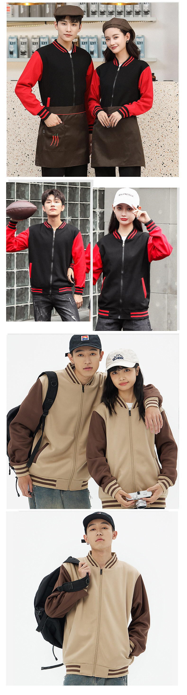 Трава зеленая; кофе; Красный с черными рукавами; Черный с красными рукавами; Кофейные рукава цвета хаки; Оранжевый с черными рукавами