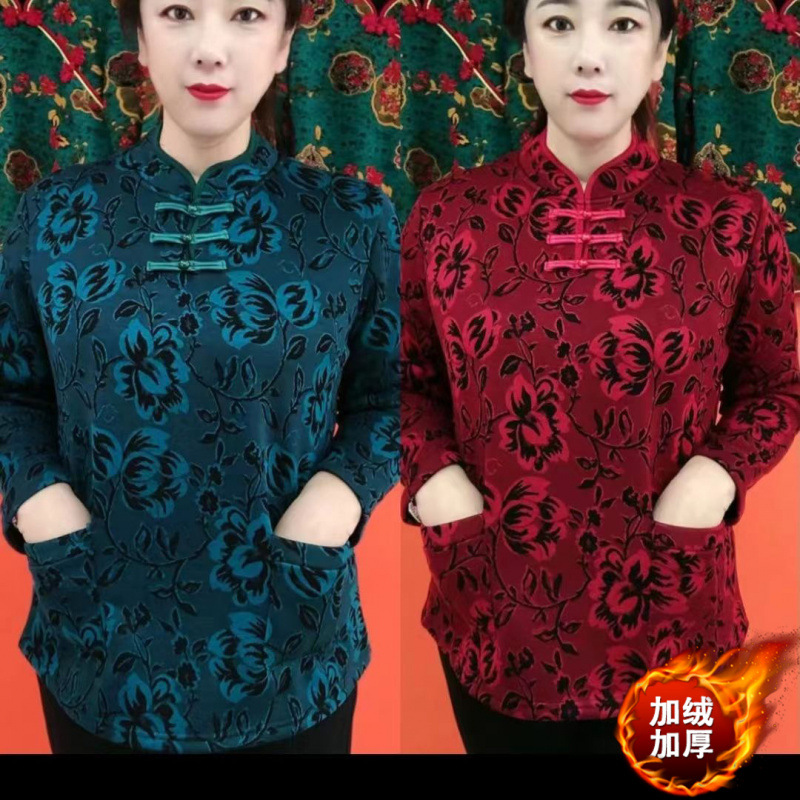 2024 новый зимний стиль, бархатный кардиган для мамы, утепленный топ в стиле ретро, теплый этнический стиль