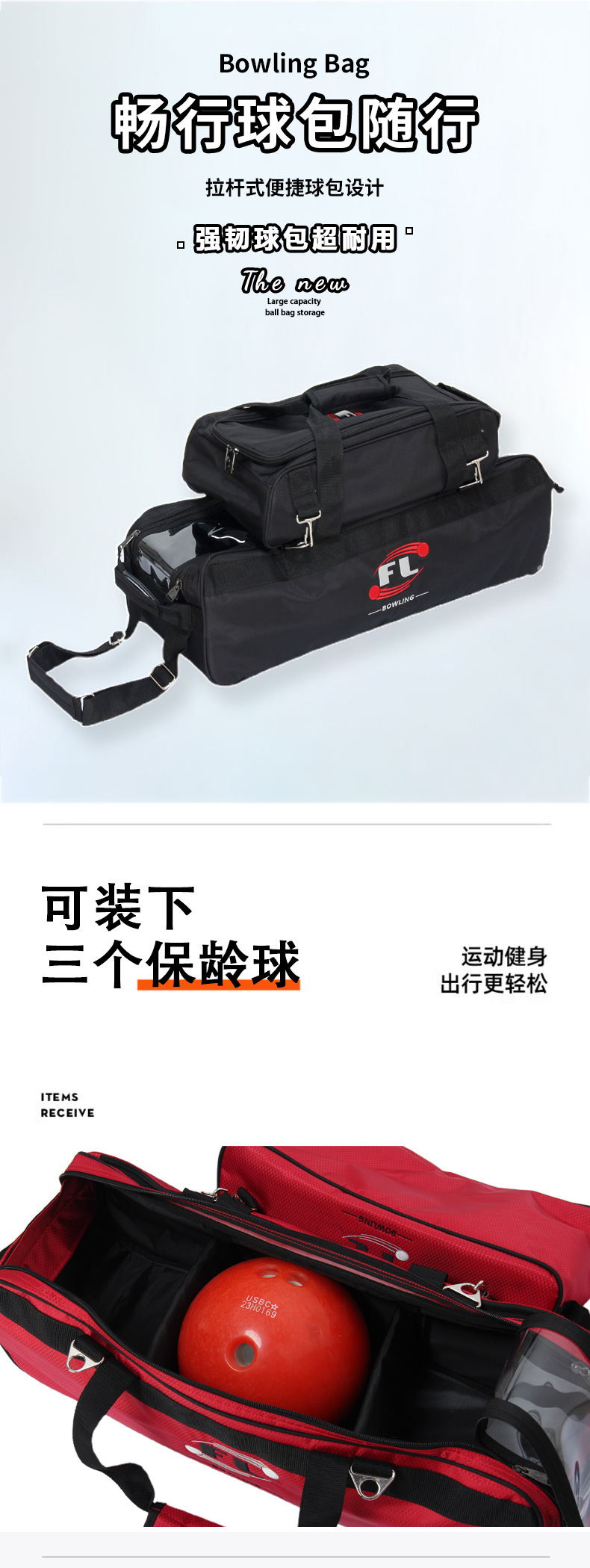 Спортивная фабрика Ruijue, прямые продажи, сумка для боулинга, сумка для трех шаров с ручным управлением, доступна в трех цветах