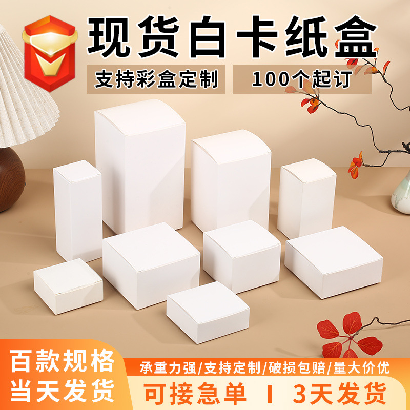 现货加厚白卡纸盒定制化妆品盲盒包装盒折叠正方形小白盒彩盒定做
