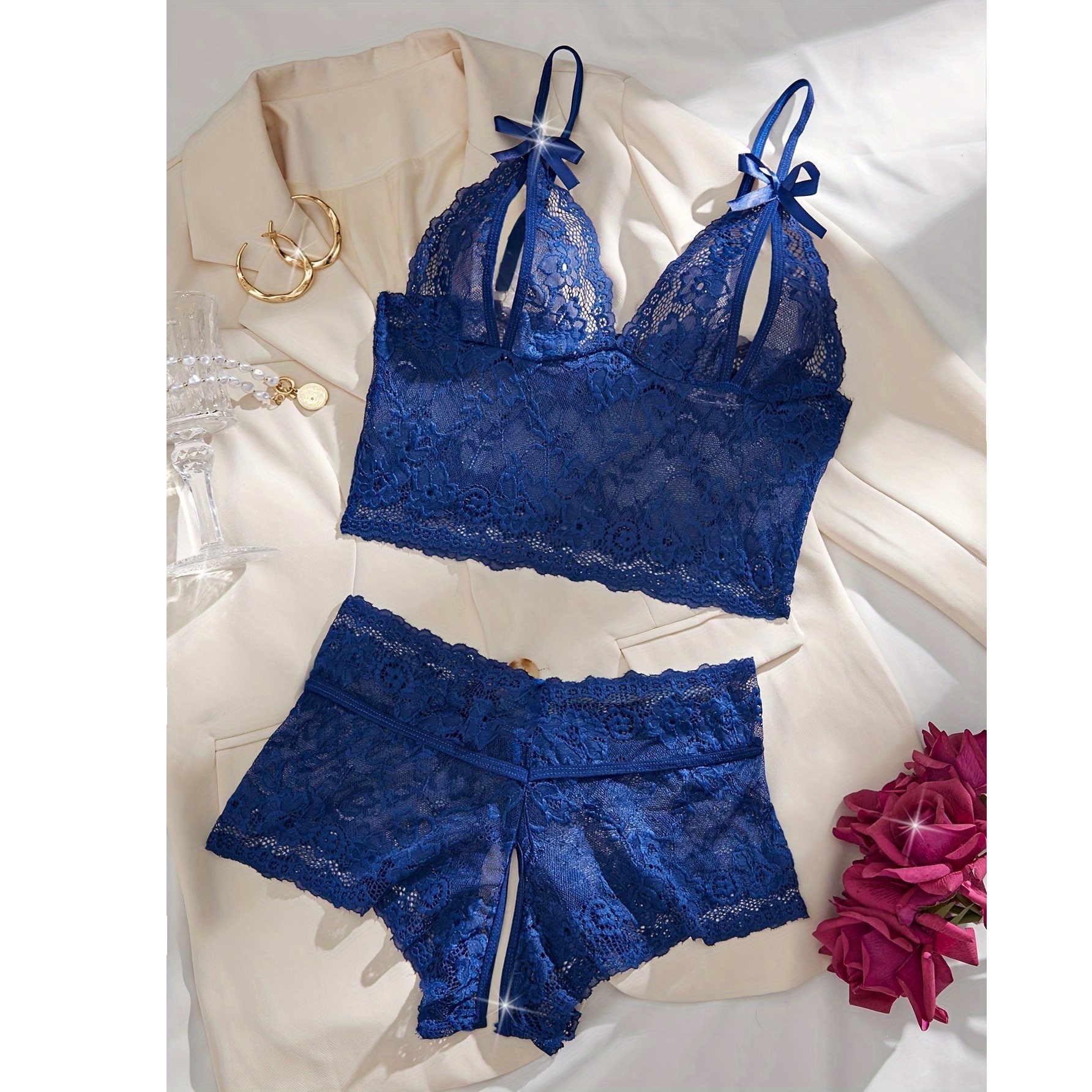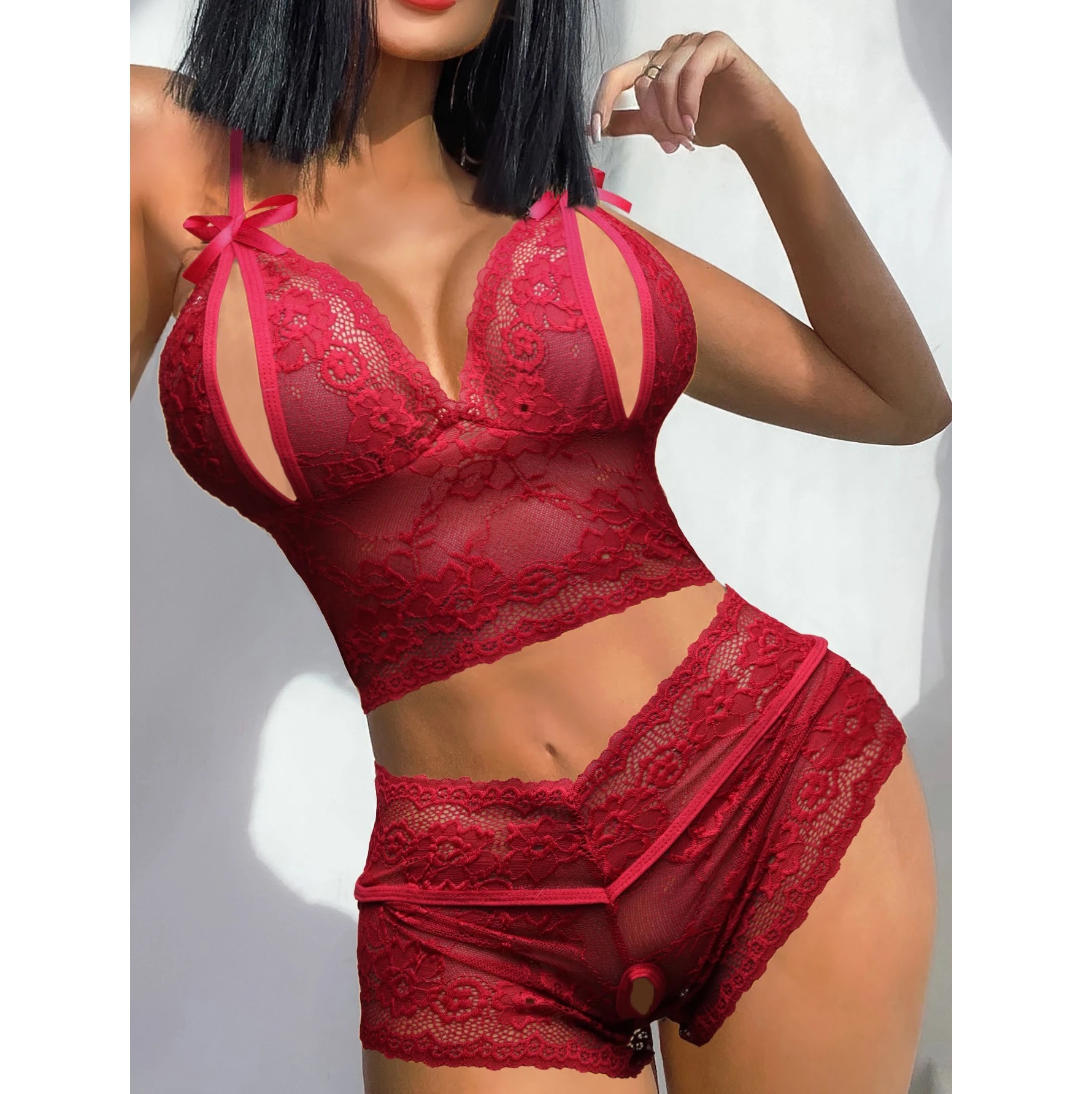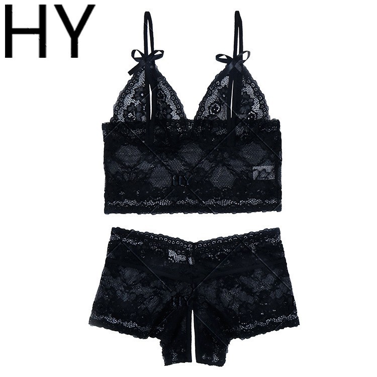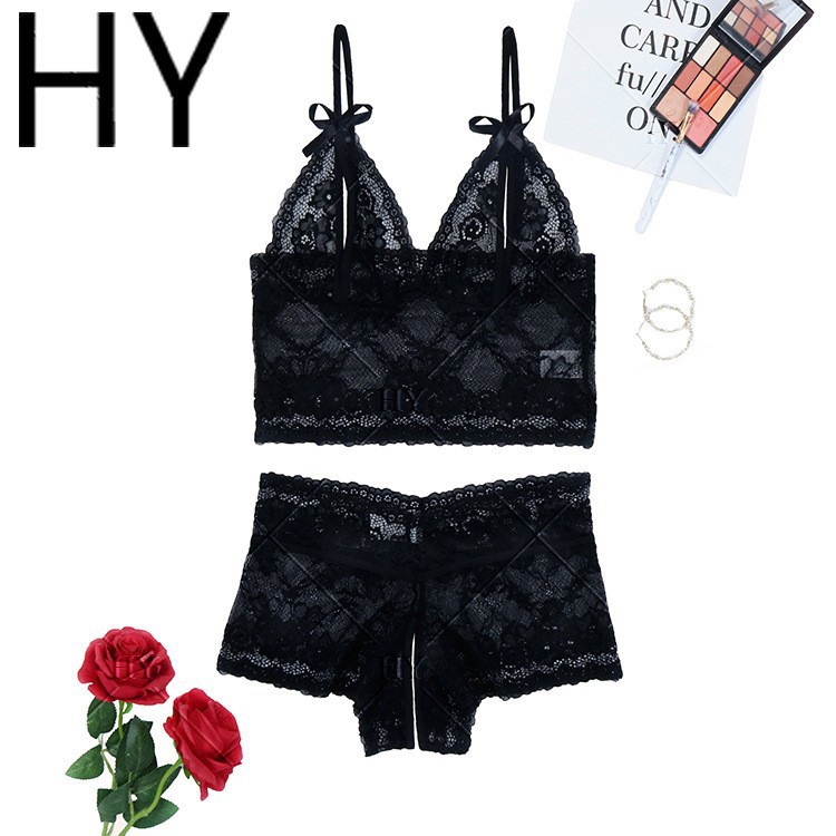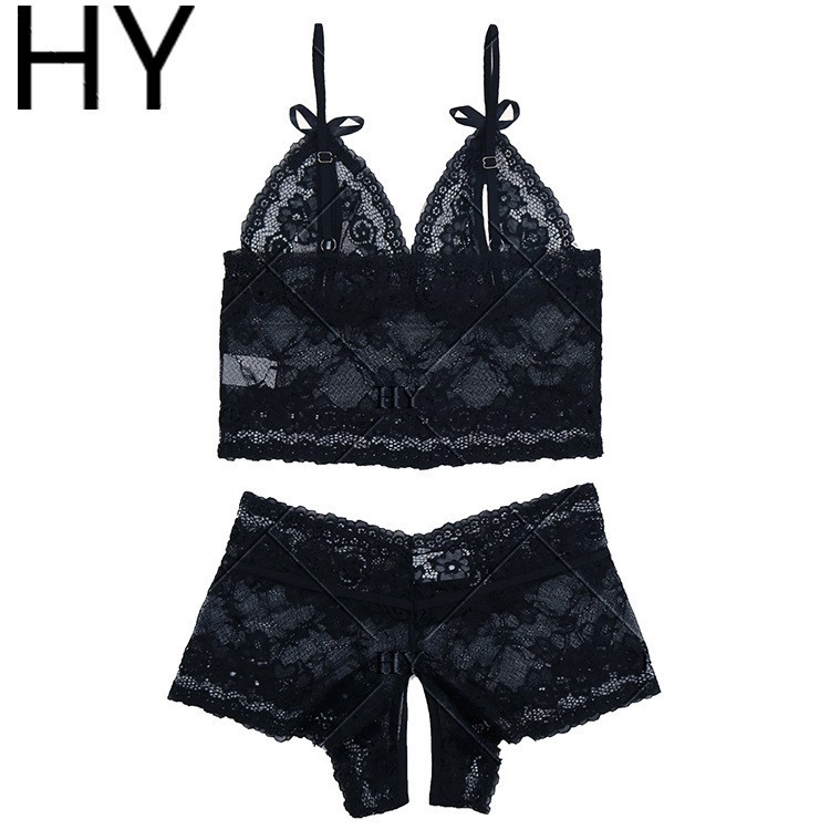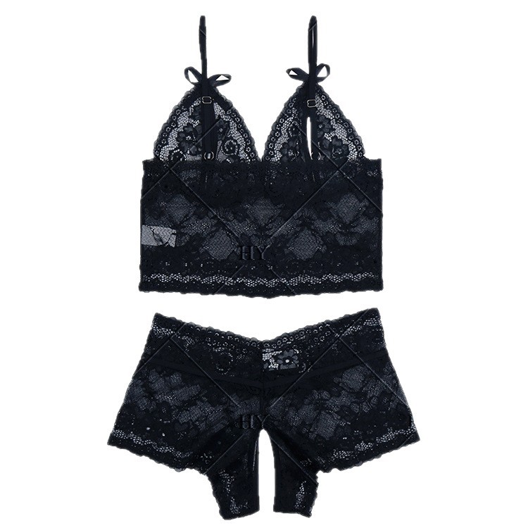 2025欧美跨境电商情趣诱惑镂空透视露乳内衣套装蕾丝性感两件套女