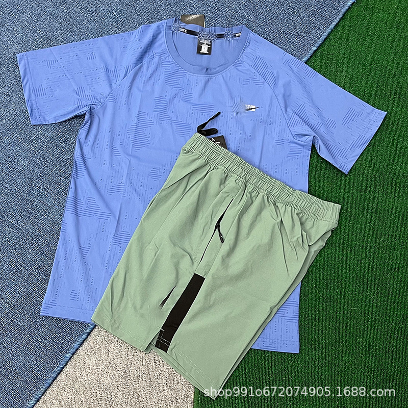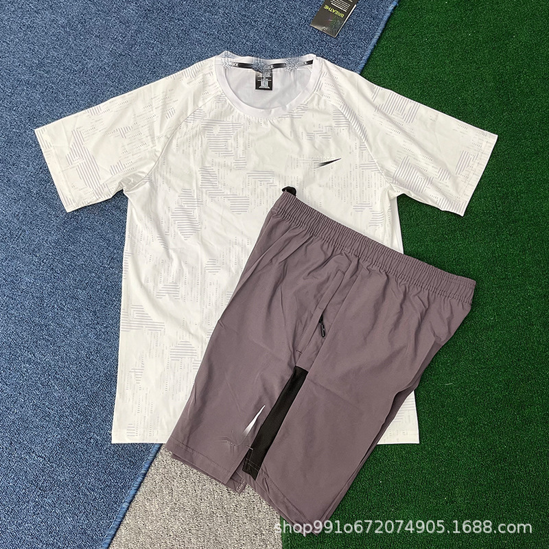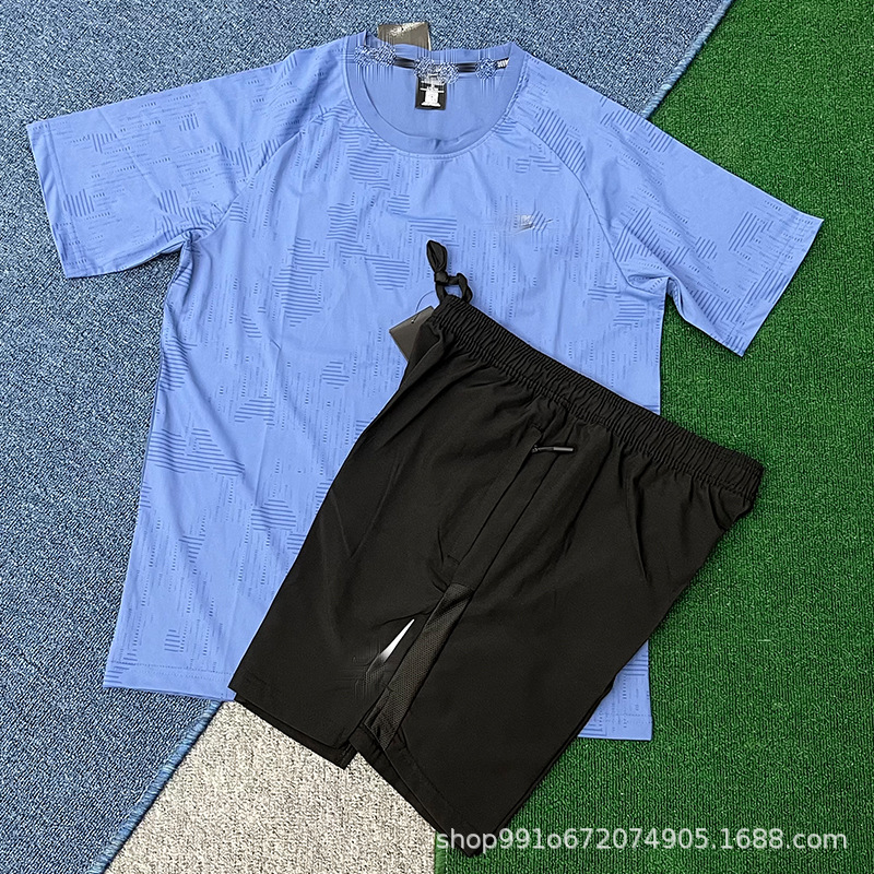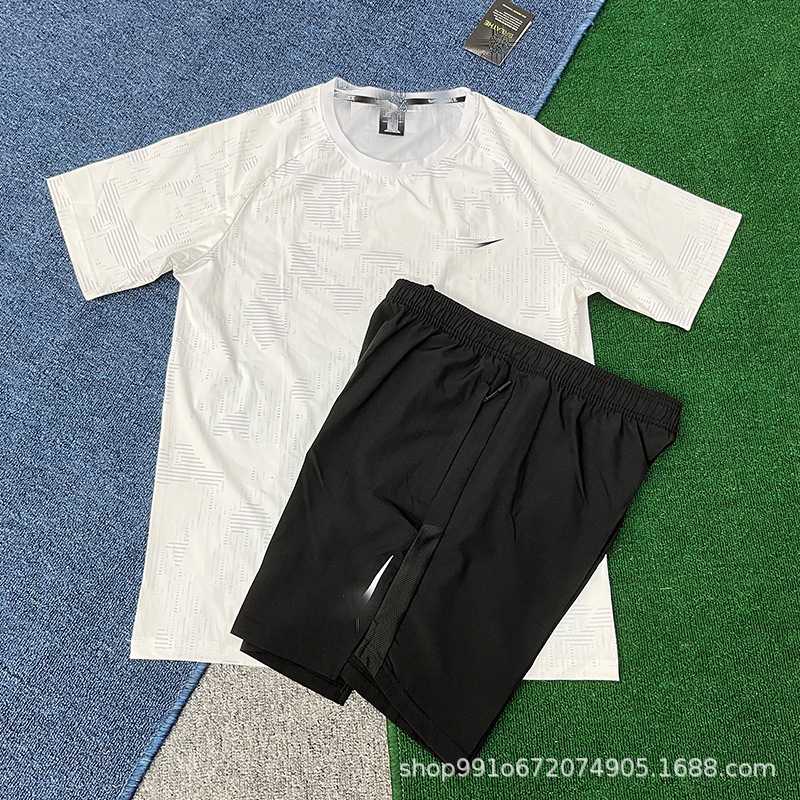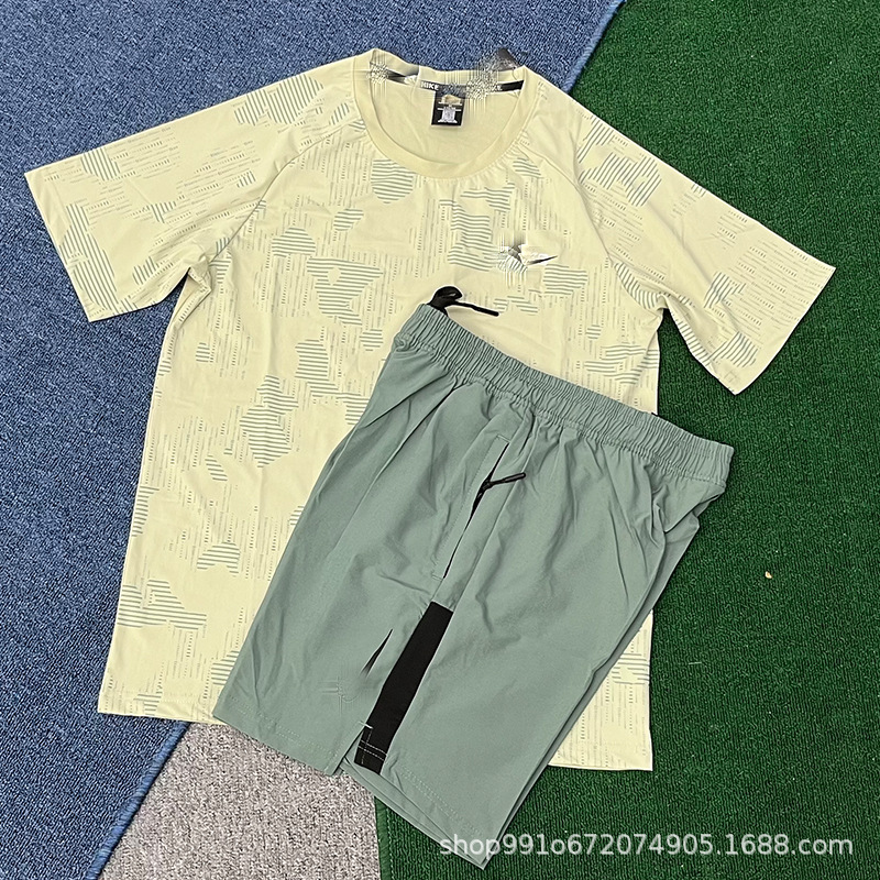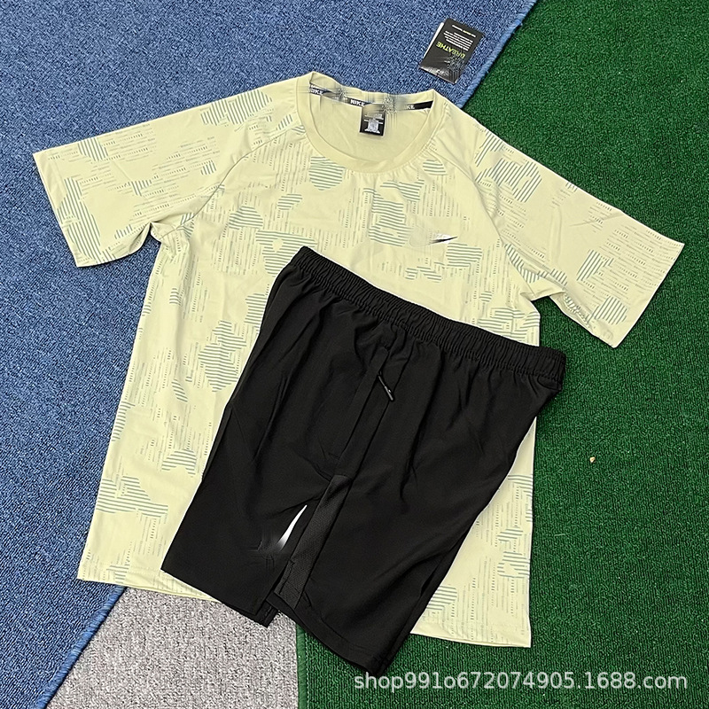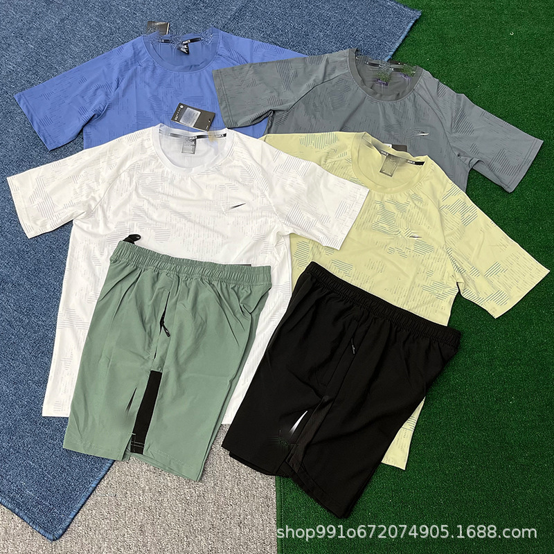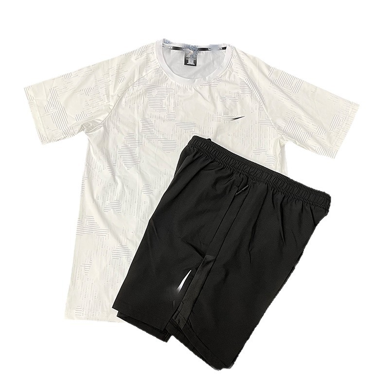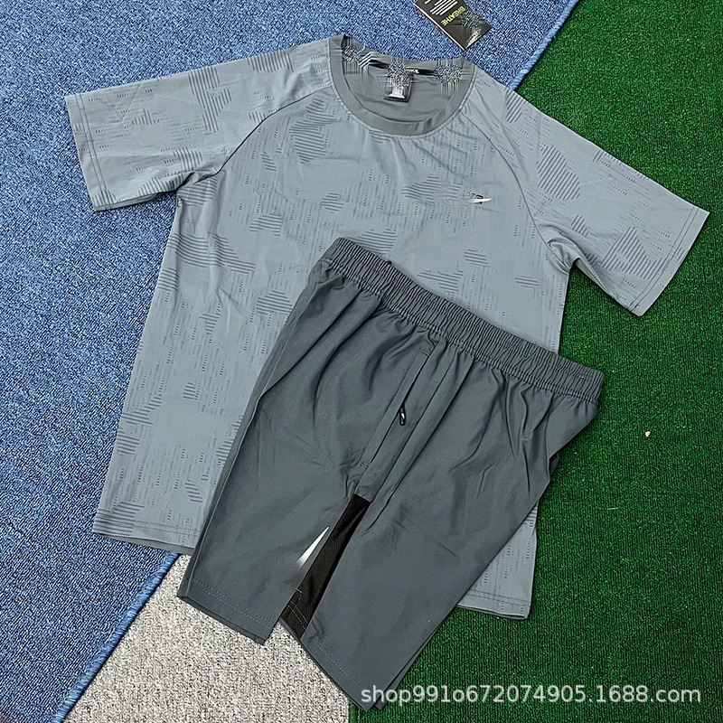 Летний тонкий ледяной шелк быстросохнущий мужской свободный спортивный костюм с короткими рукавами для бега, производитель цельных спортивных шорт, оптовая продажа, тренд