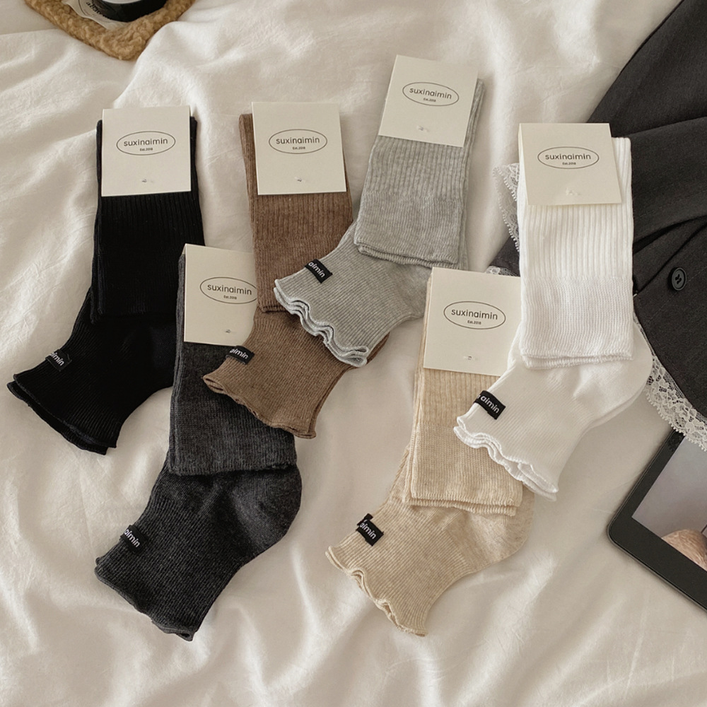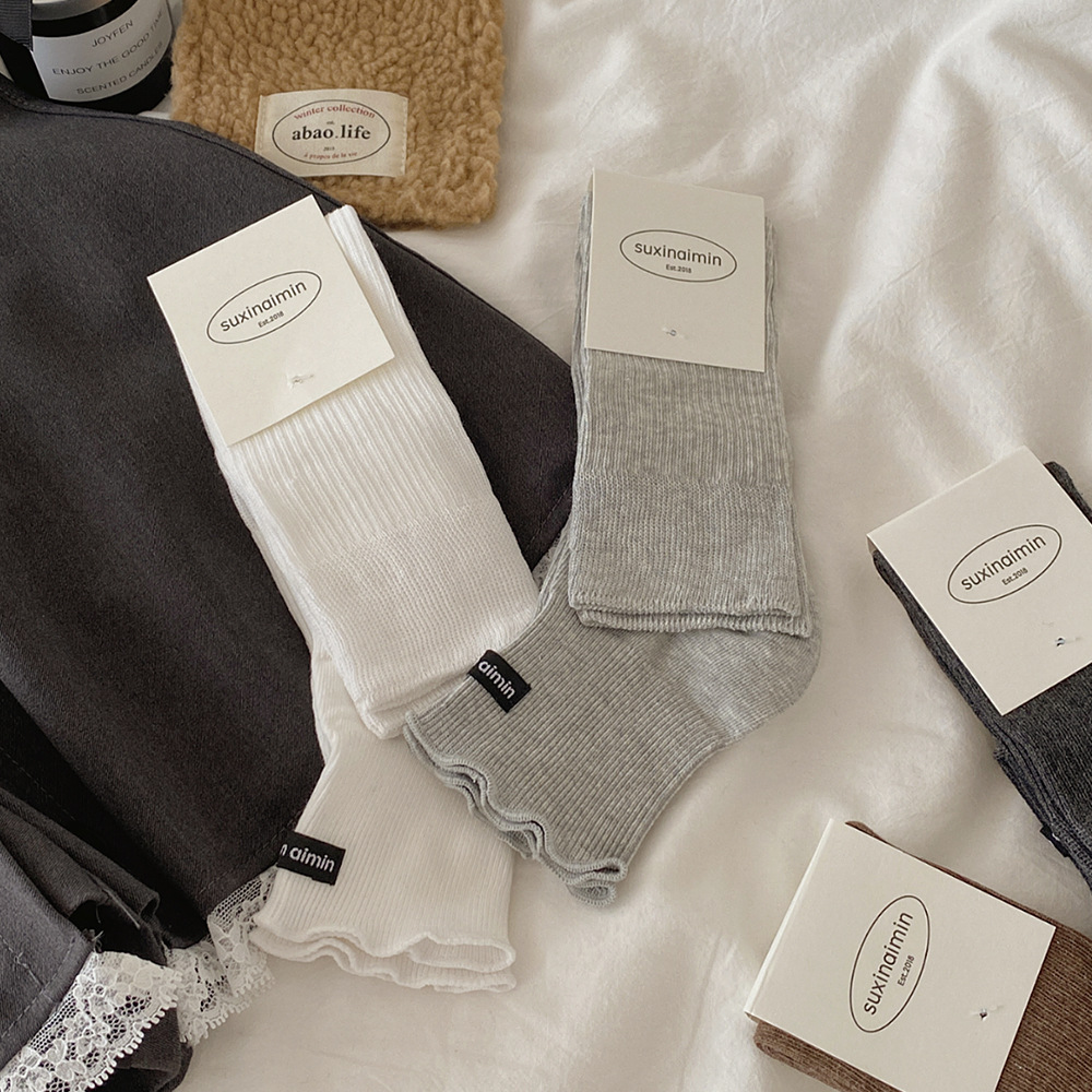 suxinaimin весенне-летние тонкие носки до середины ладони с тканевой этикеткой, персонализированные универсальные носки на одну ногу, простые носки в тонкую полоску